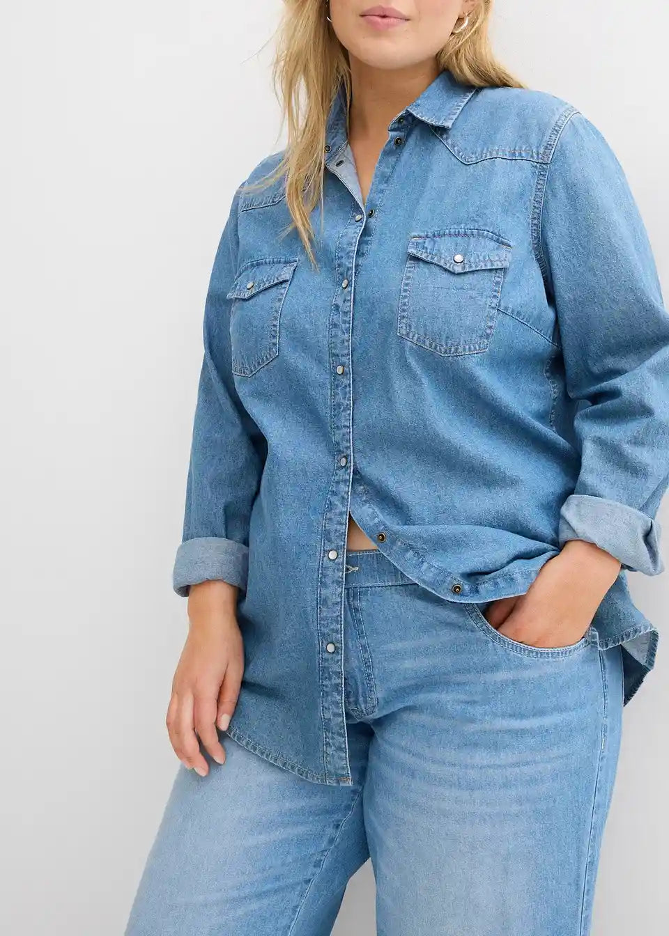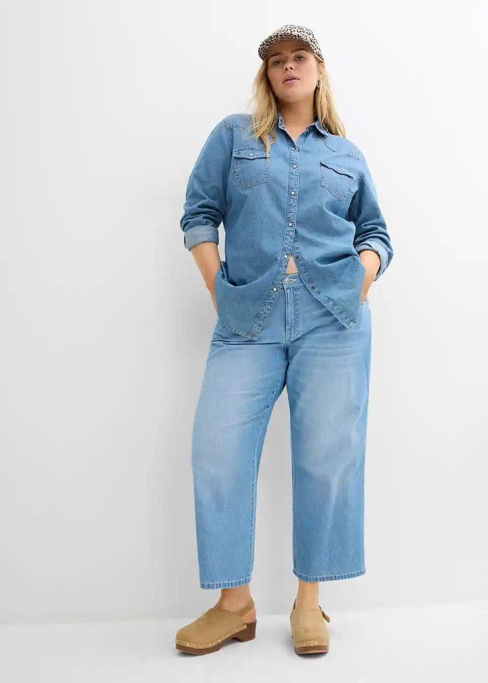 Ravne kavbojke s srednje visokim udobnim pasom iz stretch materiala z nizkim deležem elastana v krajšem kroju