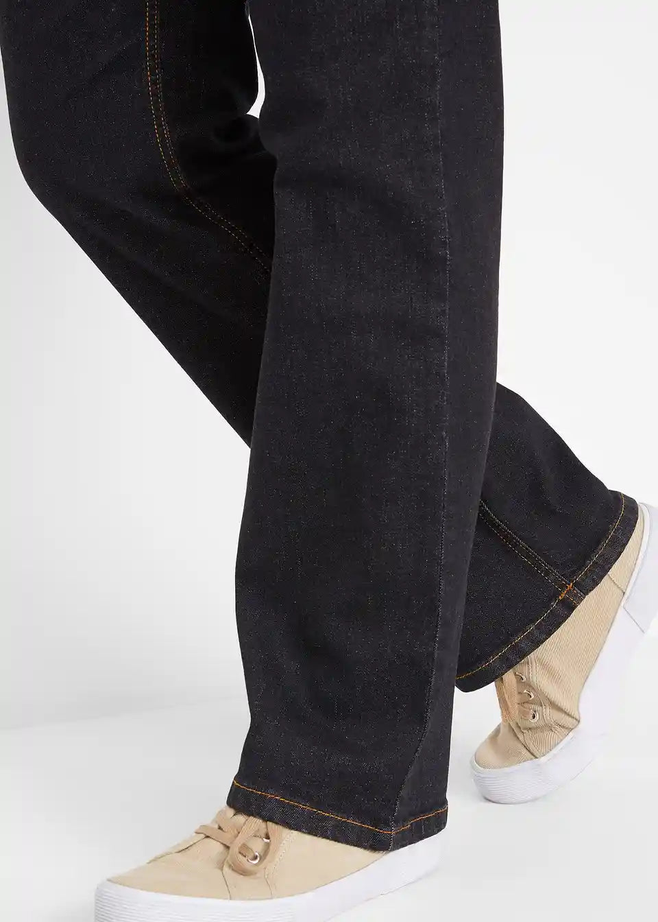 Ležerne osnovne raztegljive kavbojke z ravnimi hlačnicami in udobno višino pasu