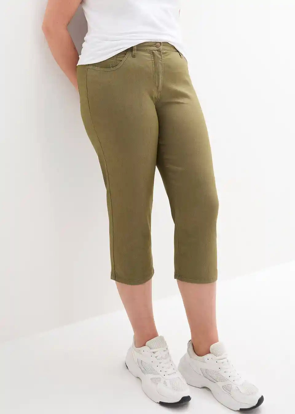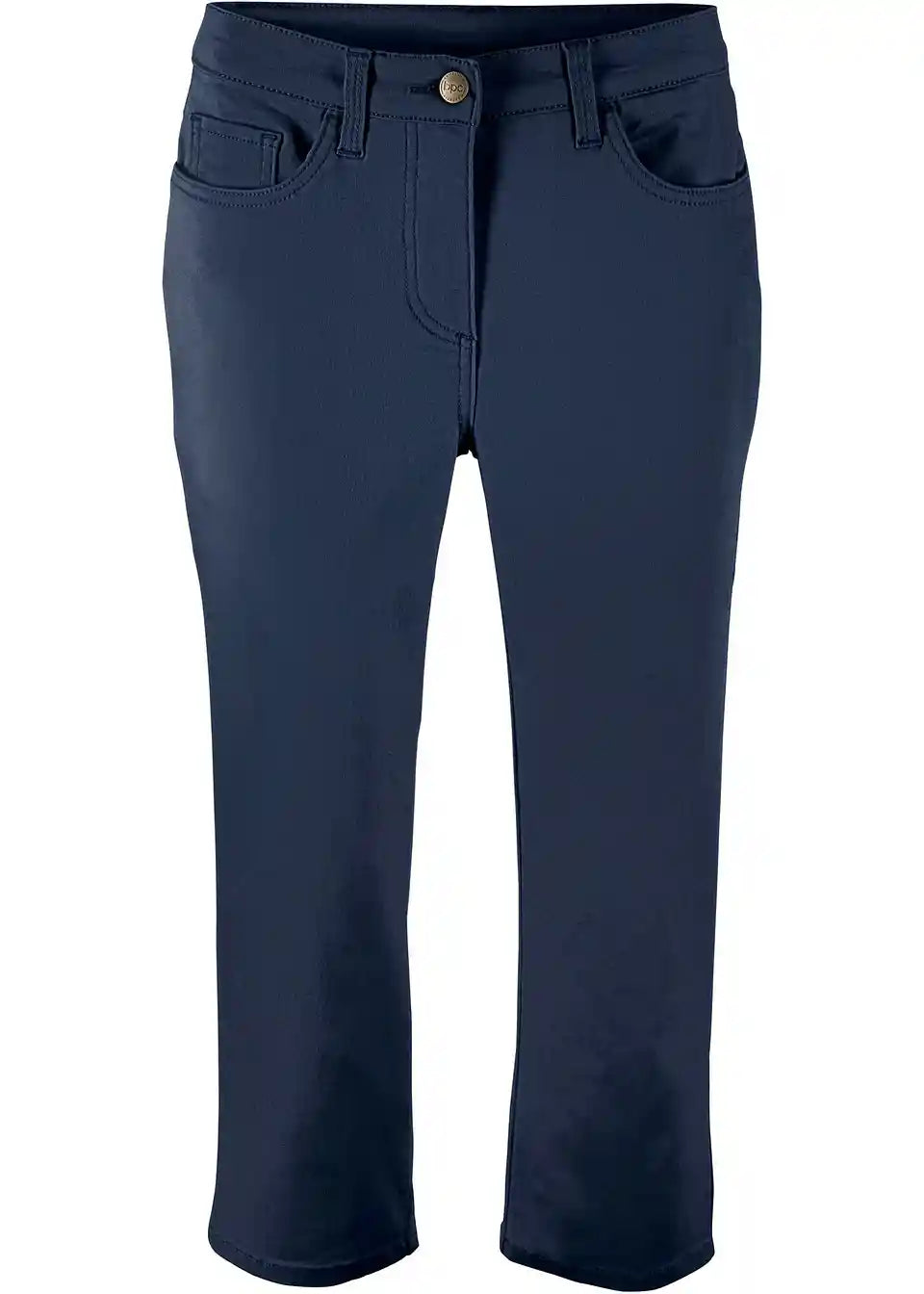 Enostavno oblecite in se dobro počutite – te raztegljive hlače v moderni 3/4 dolžini so vsestranski kos vaše garderobe. Zaradi posebnega deleža raztegljivega materiala se hlače prilagodijo obliki telesa in omogočajo prijetno svobodo gibanja. Višji pas in udoben pas dodatno podpirata ta občutek. 3/4 Super Stretch hlače blagovne znamke bpc se zapirajo z gumbom in zadrgo. Odlično jih lahko kombinirate z nizkimi čevlji, kot so superge ali balerinke.