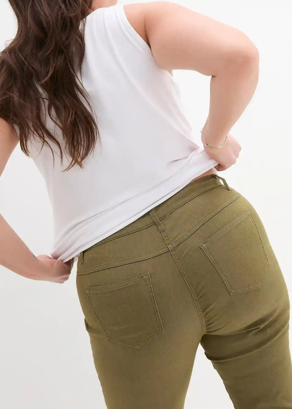 Dobro prilegajoče se raztegljive hlače z udobno višjim pasom
