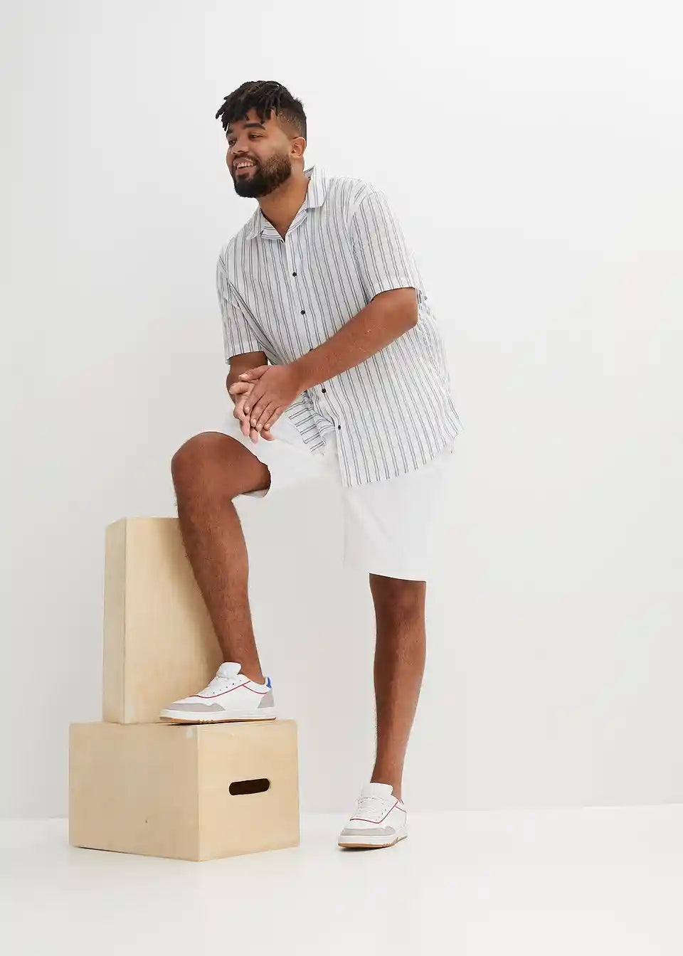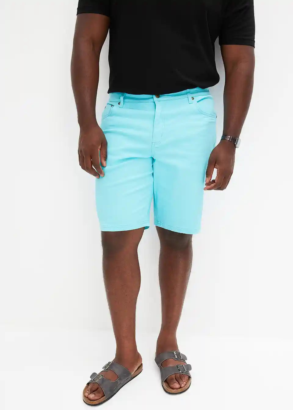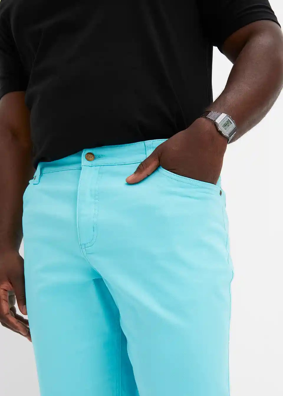 Te moške Stretch Bermuda Classic Fit prepričajo s čisto linijo. Elastičen delež v materialu zagotavlja veliko udobja in svobode gibanja. Pet žepov in povišan pas z zadrgo dopolnjujejo ta privlačen model znamke bpc. T-shirt in superge dajo Stretch Bermuda hlačam sproščen videz. Srajca s kratkimi rokavi in laneni suknjič jim dajeta sodoben videz.