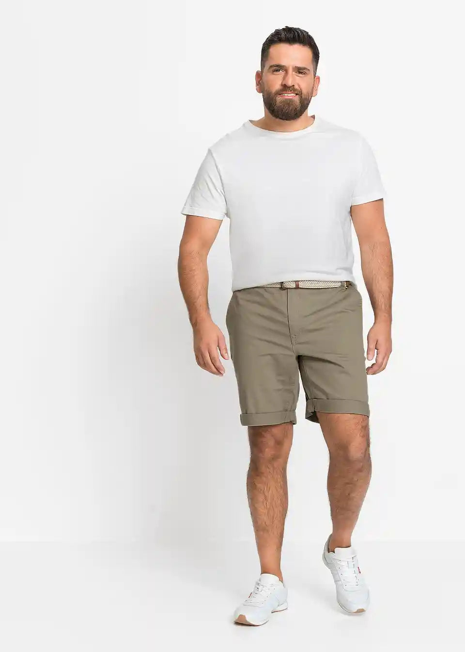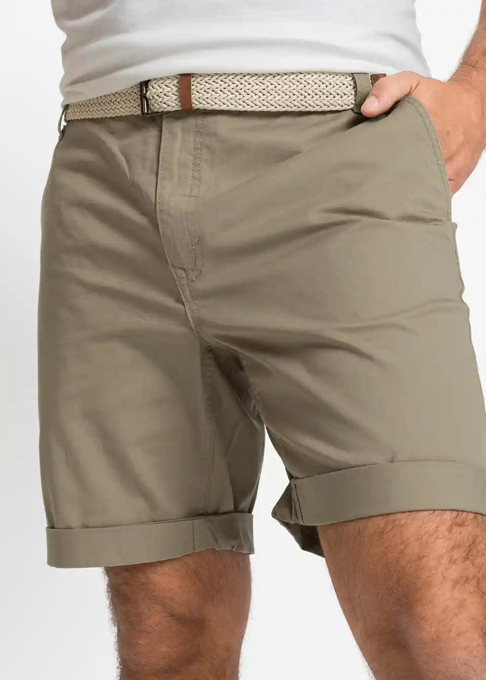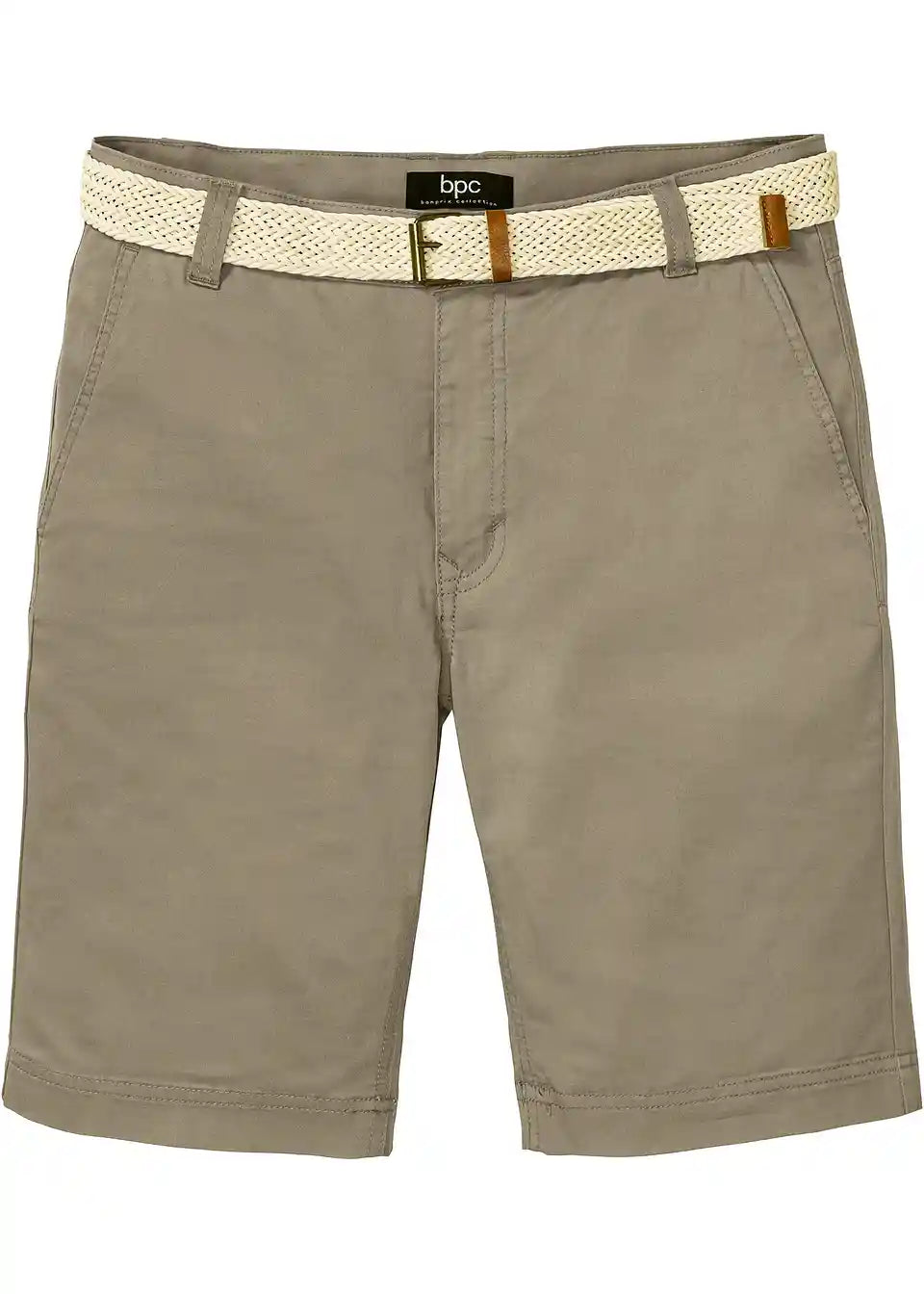Stretch chino bermuda hlače s pasom v klasičnem kroju