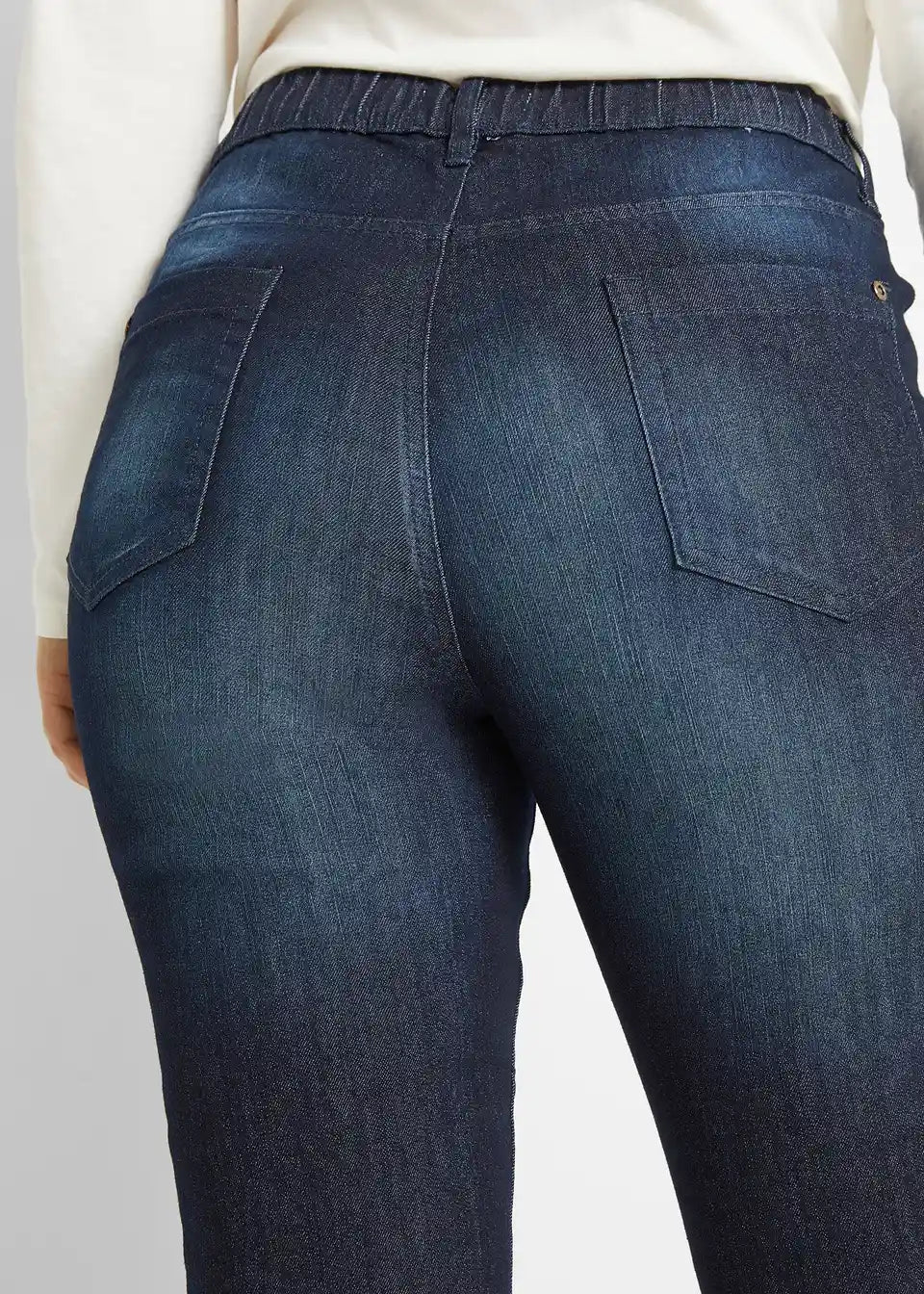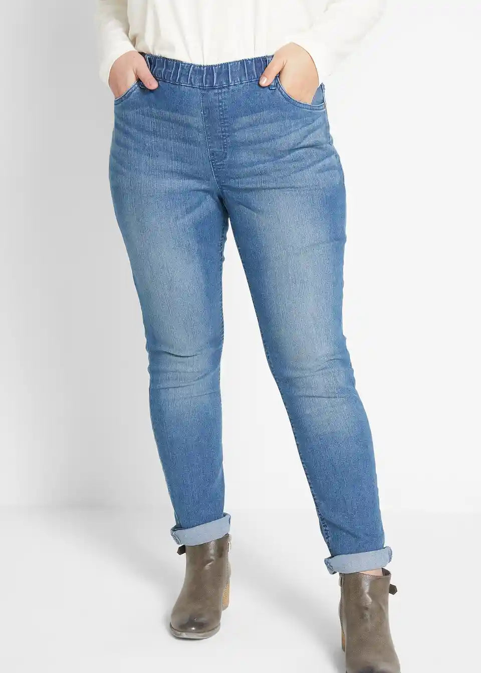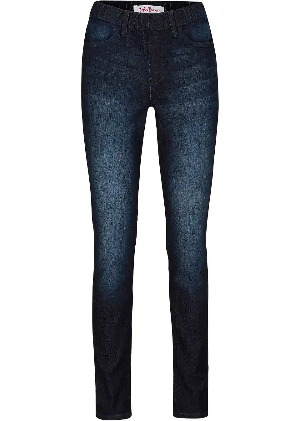 Ta kombinacija pajkic in kavbojk prepriča z zelo oprijeto silhueto in visokim pasom. Dodatno udobje ponujajo Stretch Jeggings v 4-žepnem videzu z elastičnim gumijastim pasom. Diskretno pranje poskrbi za moderen videz. Navidezna gumbnica zaokroža privlačen izgled Stretch Jeggings. Naj bo sproščeno s supergami in športno majico ali nekoliko zračneje z balerinkami ali sandali ter lahkotno tuniko: model znamke John Baner navdušuje s svojim odličnim prileganjem.