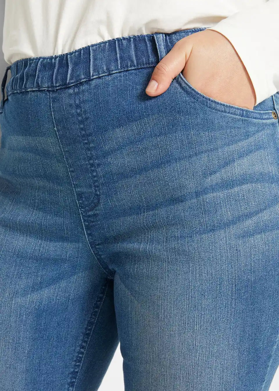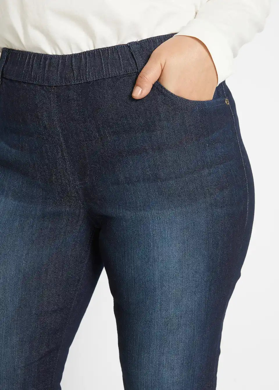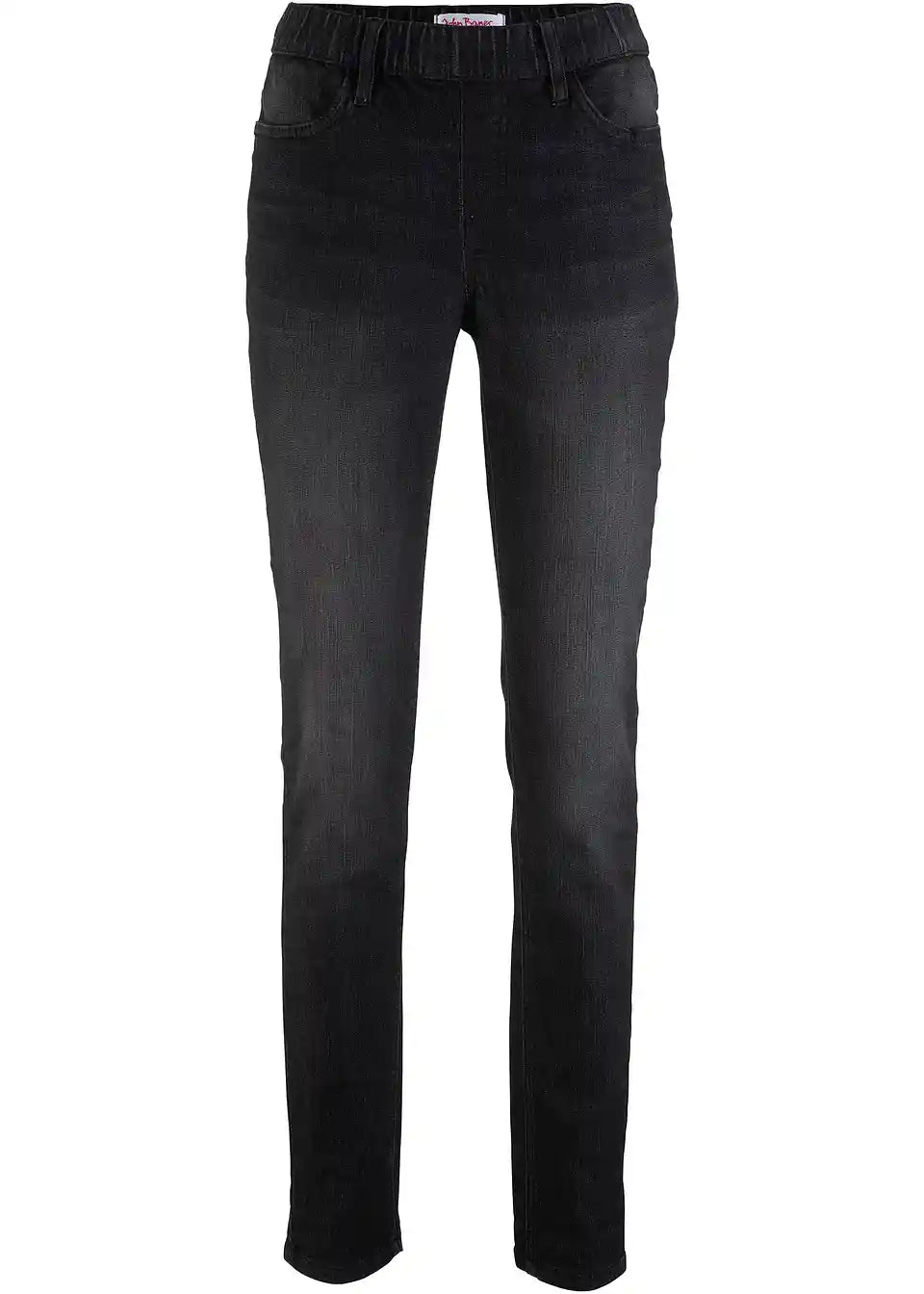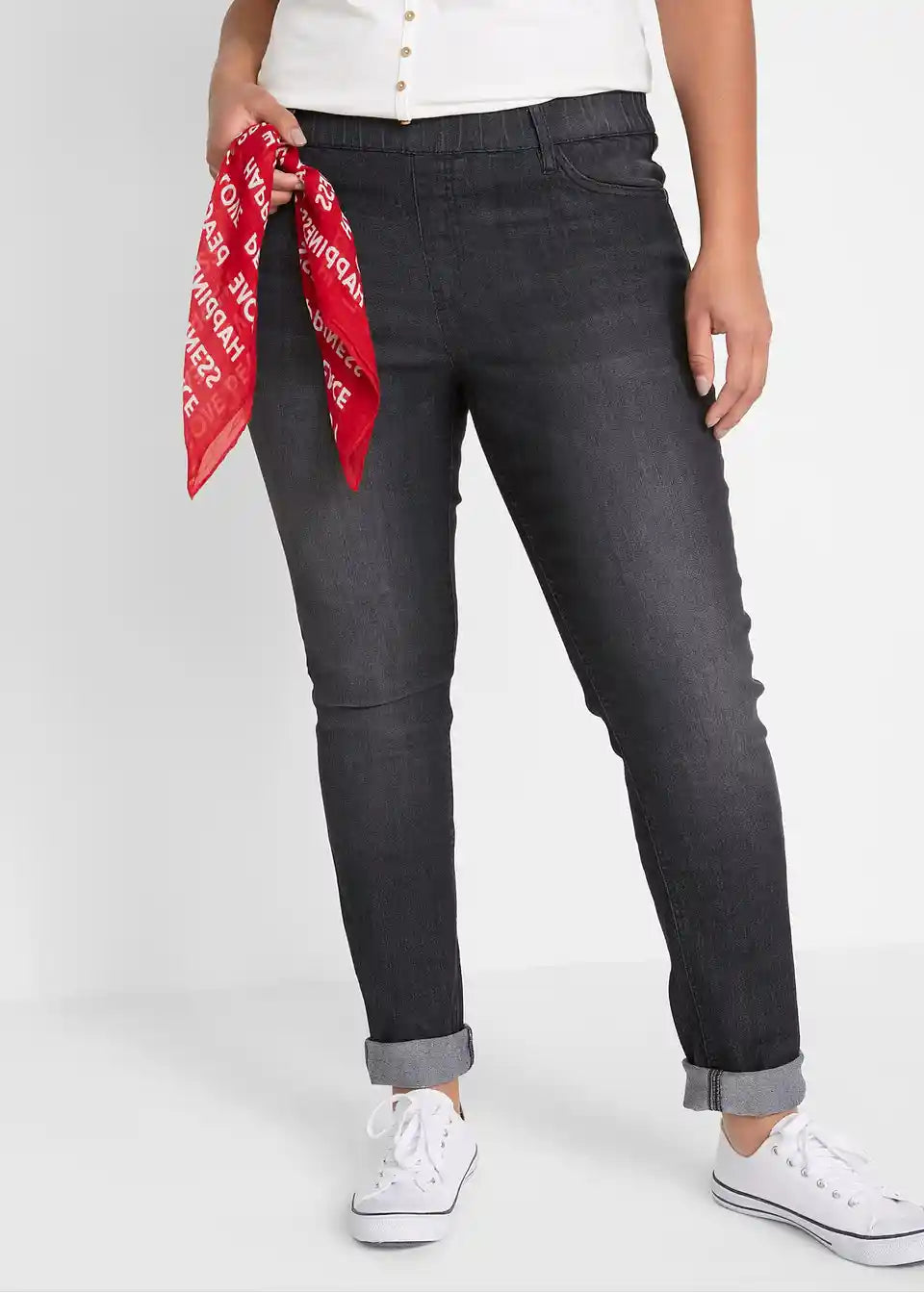 Ta kombinacija pajkic in kavbojk prepriča z zelo oprijeto silhueto in visokim pasom. Dodatno udobje ponujajo Stretch Jeggings v 4-žepnem videzu z elastičnim gumijastim pasom. Diskretno pranje poskrbi za moderen videz. Navidezna gumbnica zaokroža privlačen izgled Stretch Jeggings. Naj bo sproščeno s supergami in športno majico ali nekoliko zračneje z balerinkami ali sandali ter lahkotno tuniko: model znamke John Baner navdušuje s svojim odličnim prileganjem.