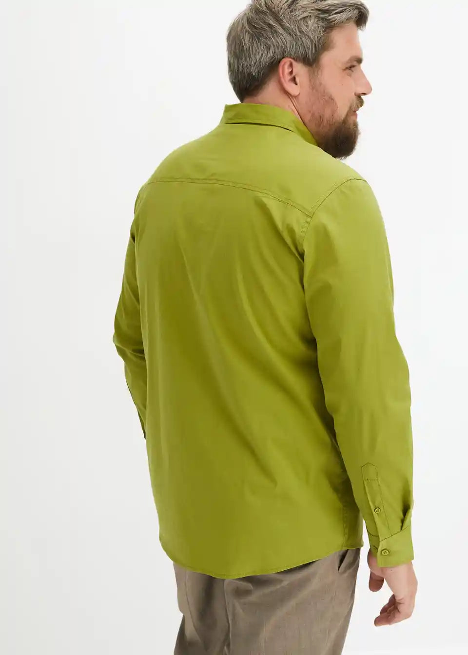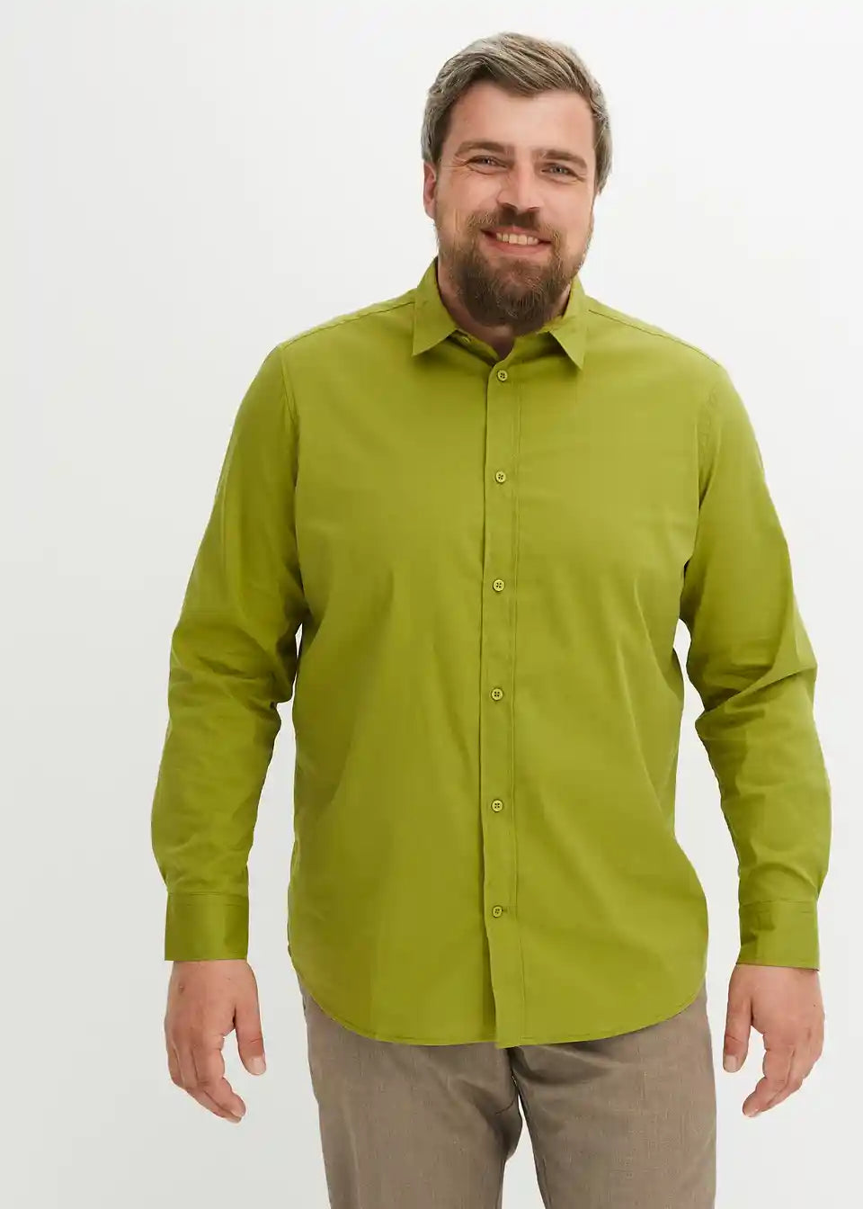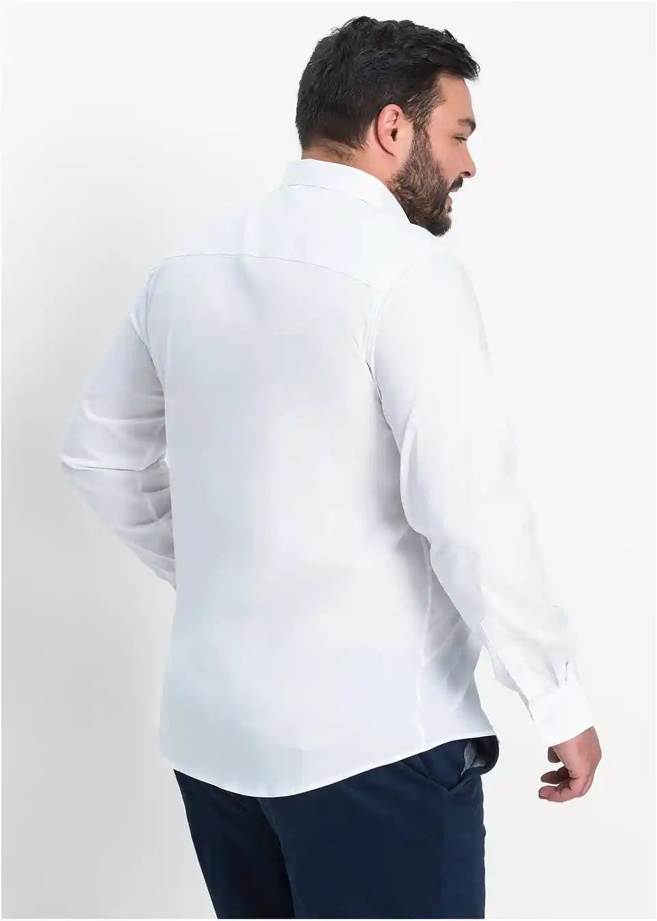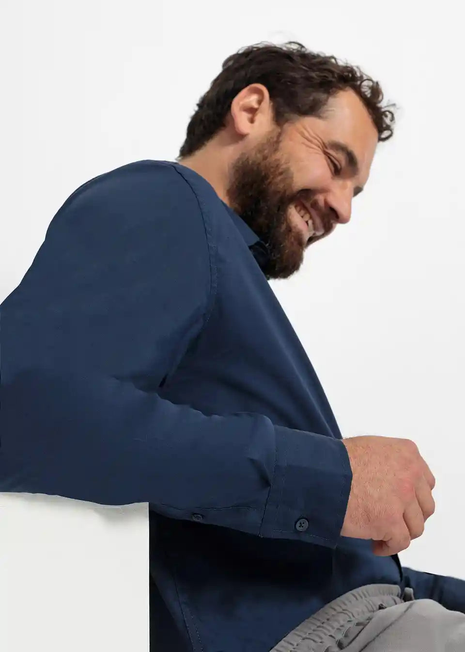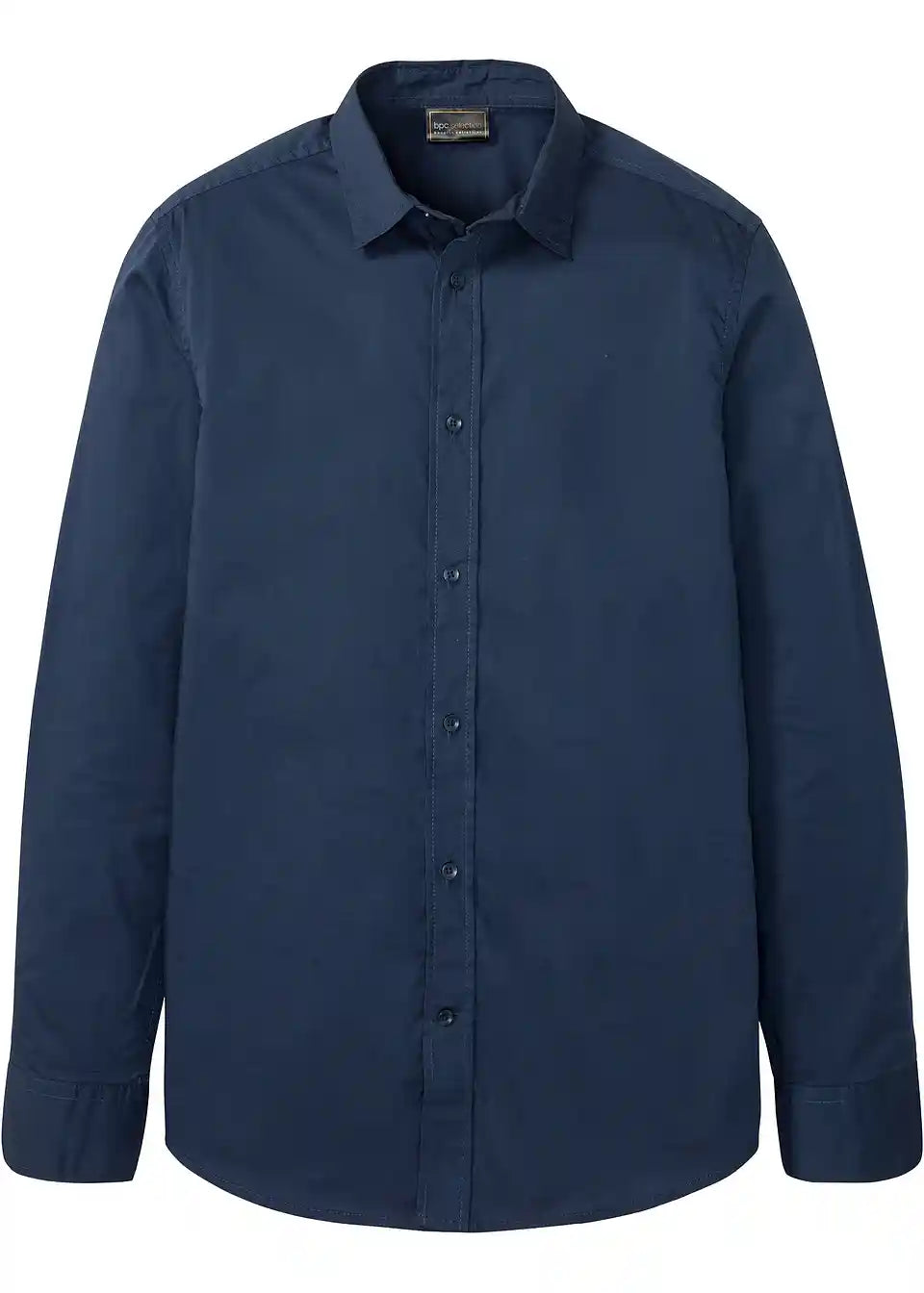 Moška srajca z dolgimi rokavi, raztegljiva in z rahlo zaobljenim robom
