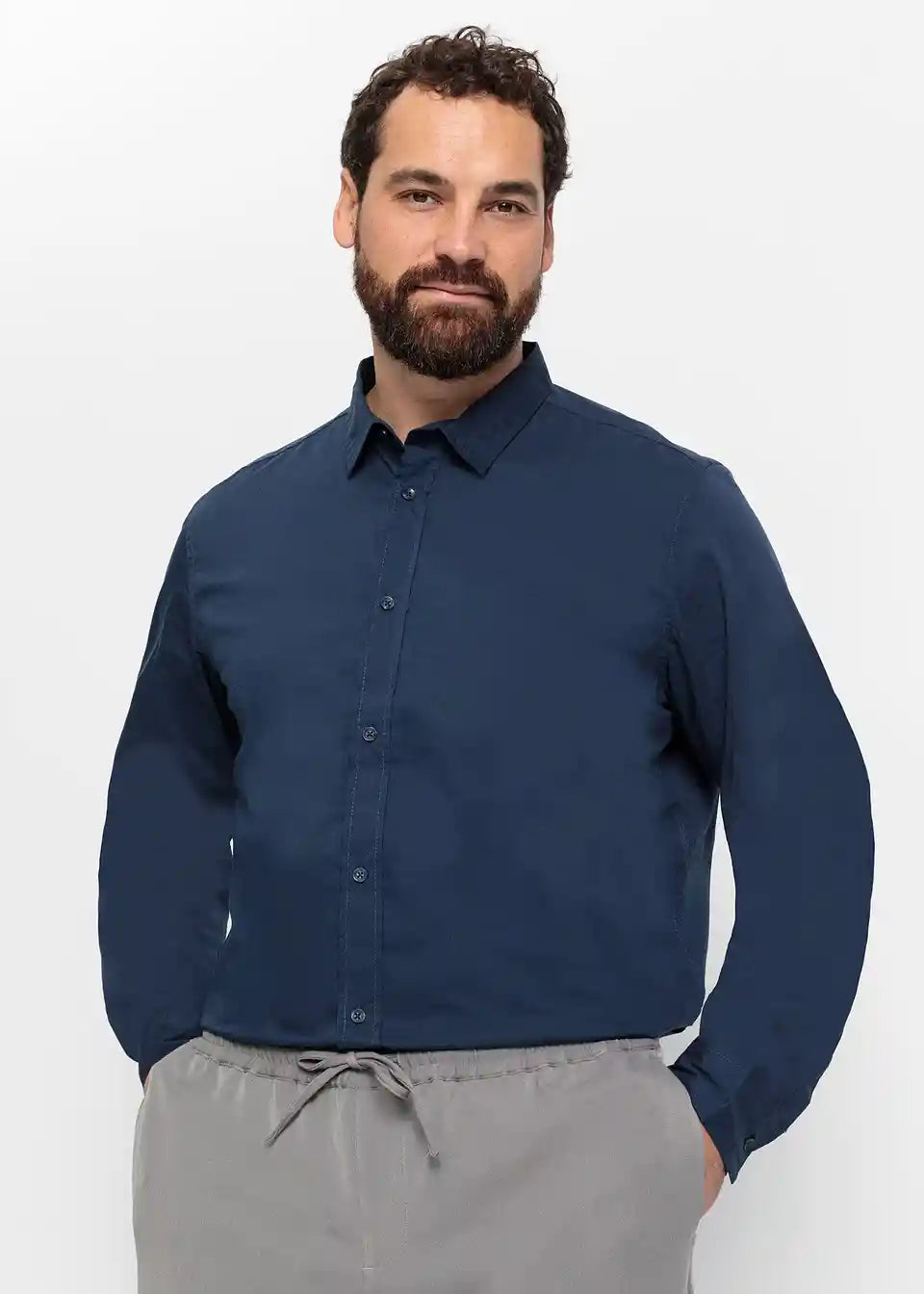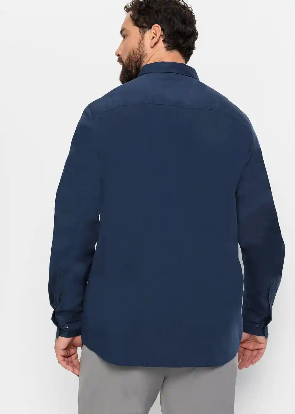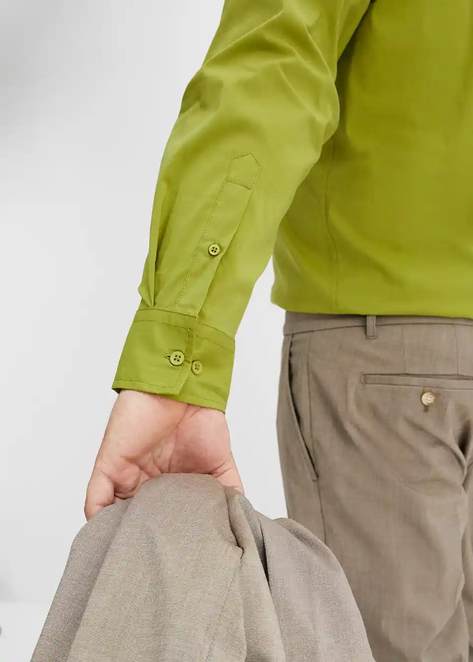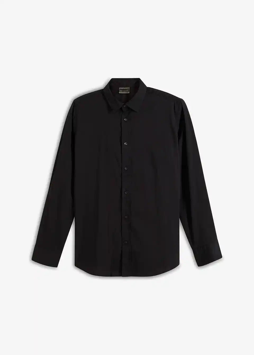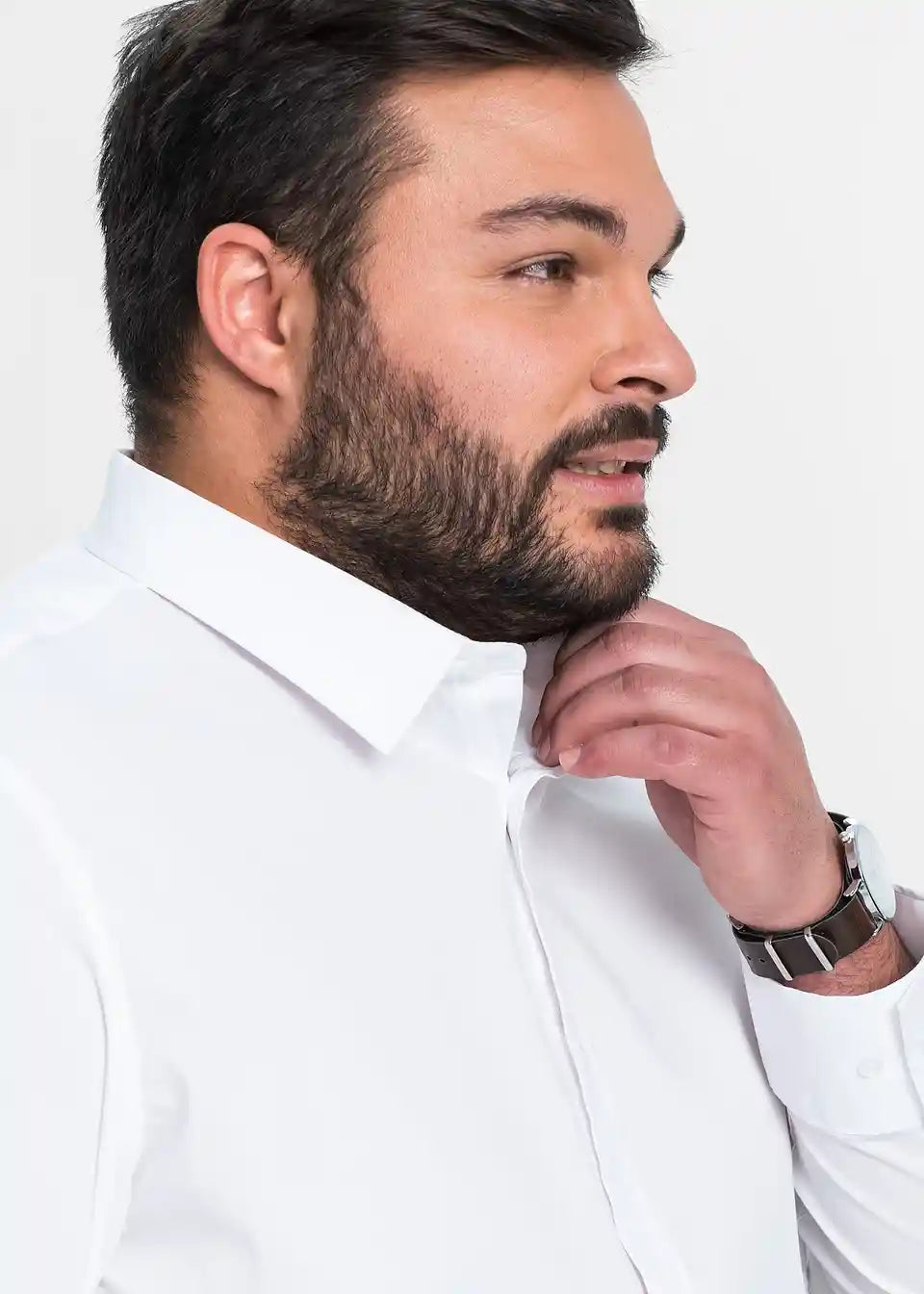 Moška srajca z dolgimi rokavi, raztegljiva in z rahlo zaobljenim robom