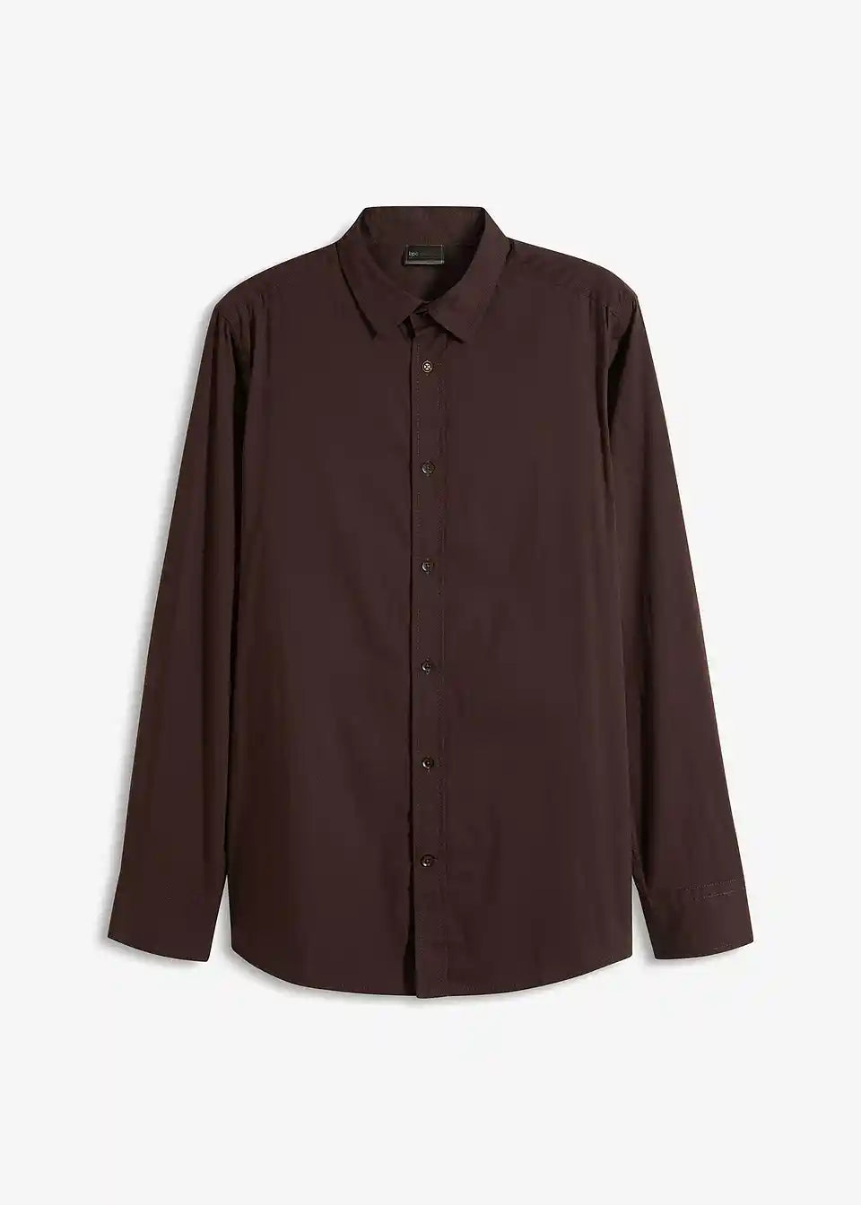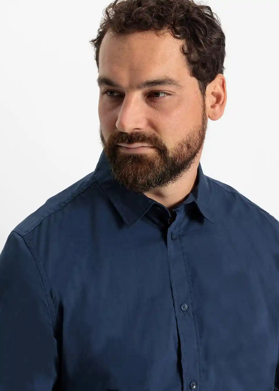 Elegantna, ozko krojena stretch srajca znamke bpc selection zagotavlja z dodatkom elastana odlično prileganje in prijetno udobje nošenja. Zaradi rahlo zaobljenega roba lahko modno stretch srajco nosite ne le zataknjeno v hlače, temveč tudi sproščeno čez pas. Ne glede na to, ali jo kombinirate z urejenimi kavbojkami za ležeren videz ali s klasičnimi hlačami za bolj formalno podobo: Ta srajca z dolgimi rokavi vam zagotavlja vedno prefinjen videz.