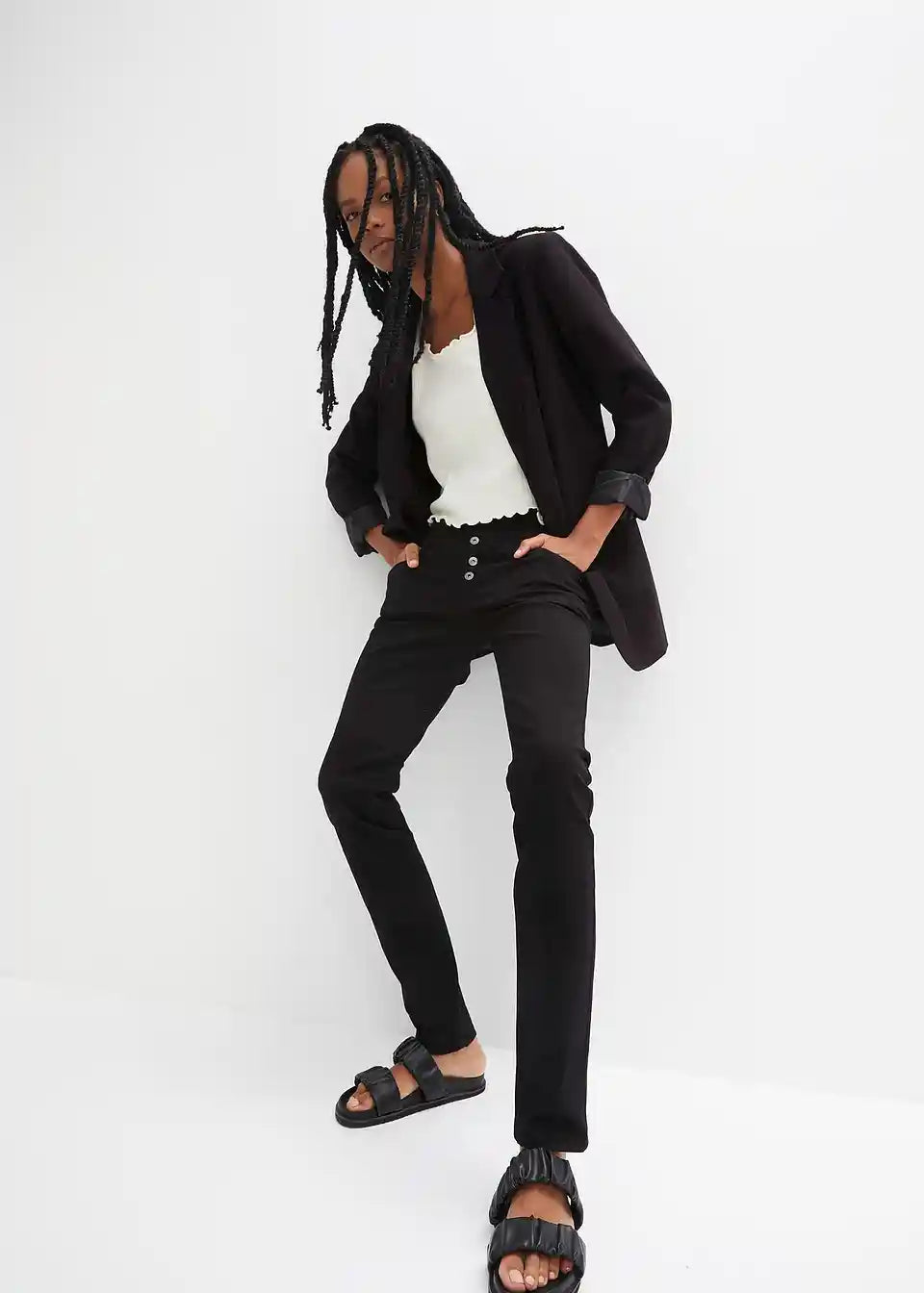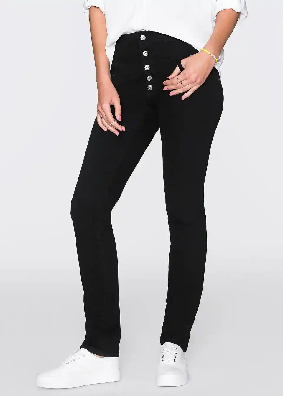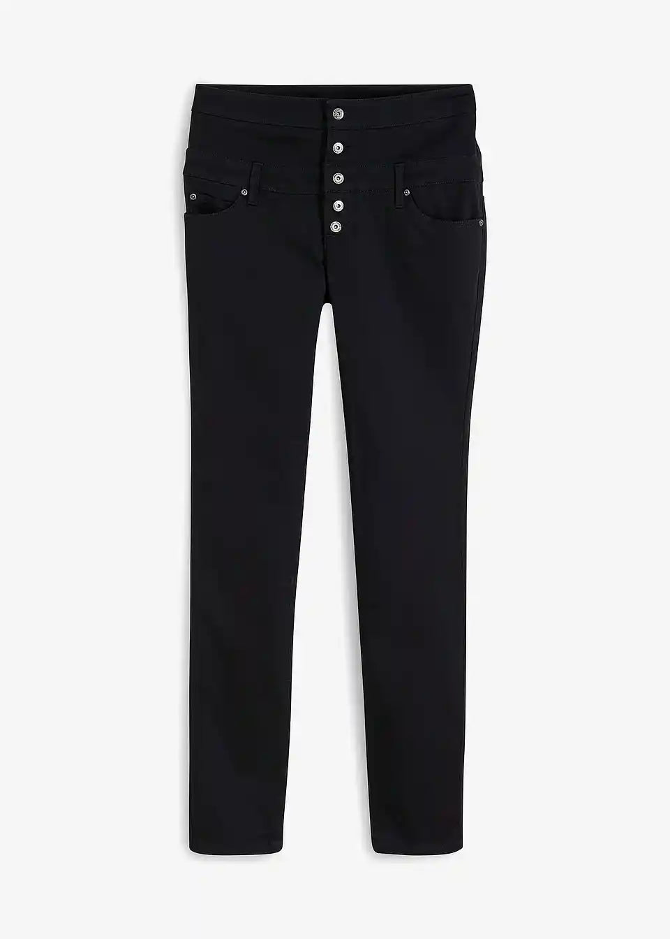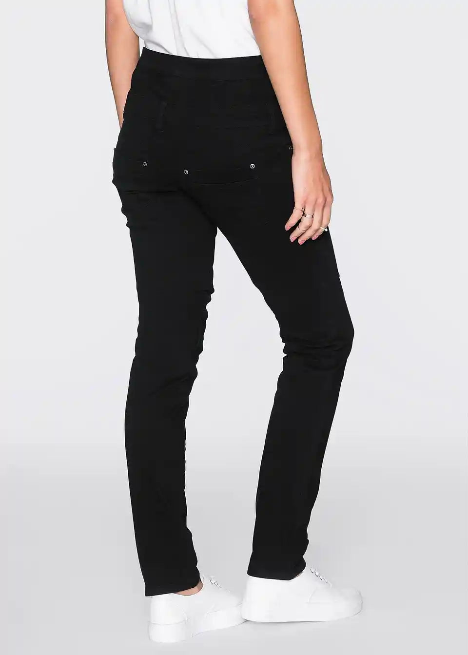 Trendy raztegljive hlače iz kolekcije RAINBOW, s prednostmi: visok pas vizualno podaljša in zoži noge, dekorativni, bleščeči čepi, dolžina notranjega hlačnice v št. 42 približno 81 cm
