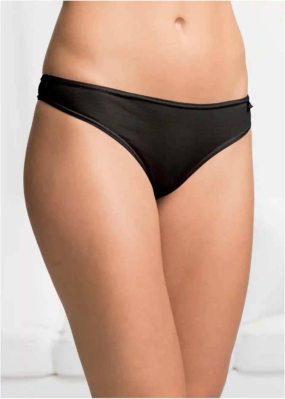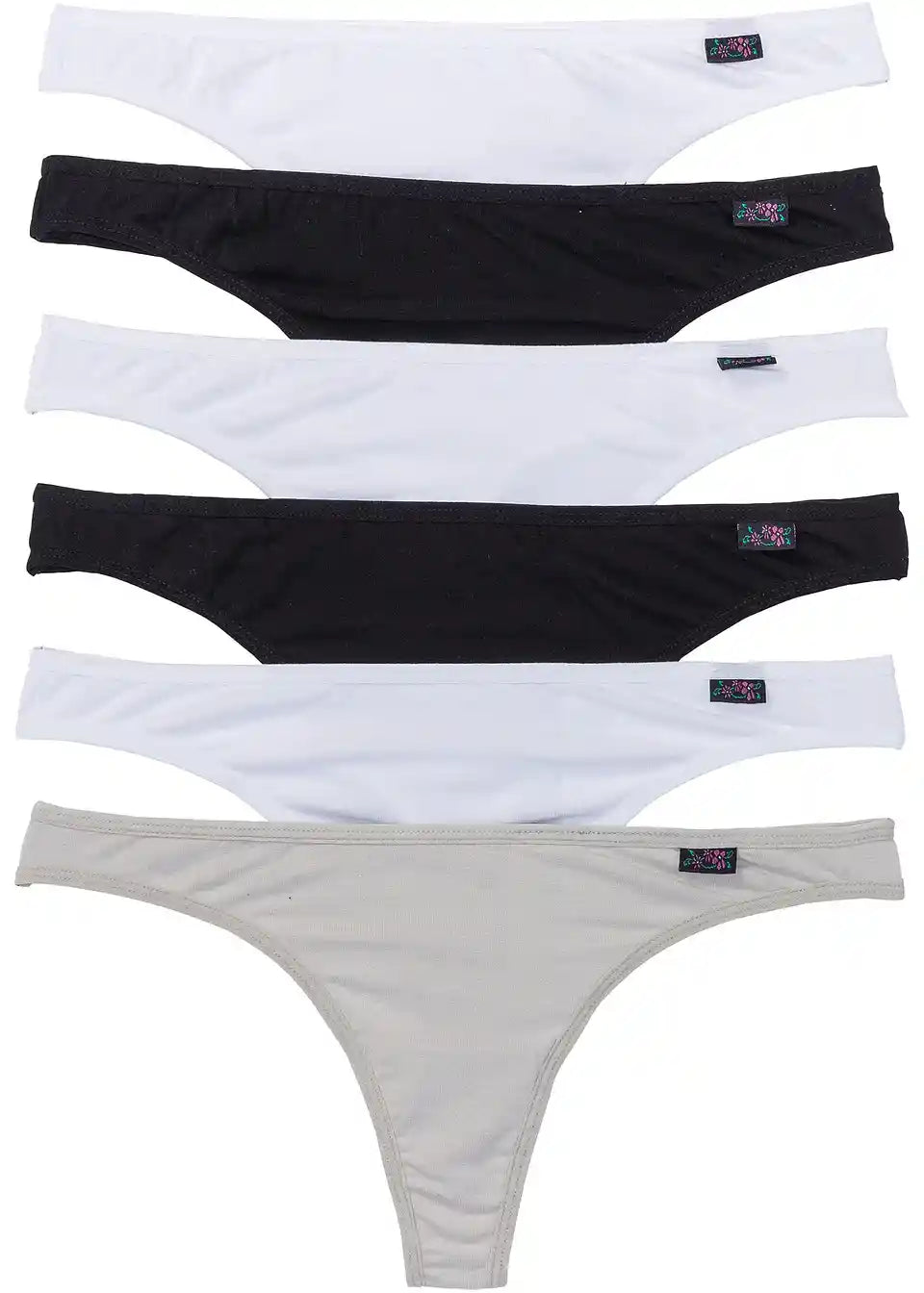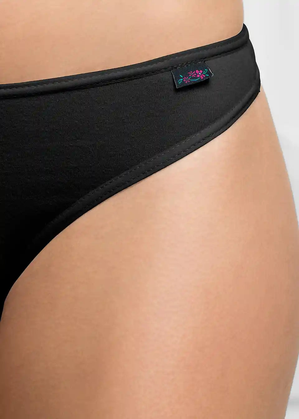 Sveže barve in sproščen kroj - ta string v pakiranju po 6 prinaša modno zabavo v vsakdan. Na voljo je v različnih barvnih kombinacijah. Spodnjice so pod oprijetimi oblačili praktično nevidne, mehki šivi pa prijetno ležijo na koži. Podloga v mednožju je iz bombaža.
