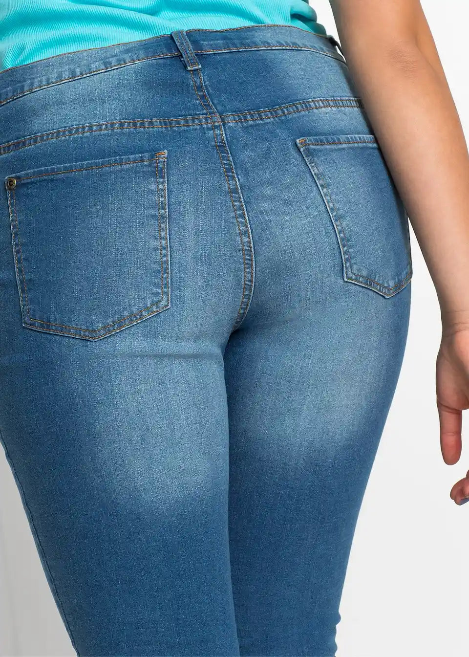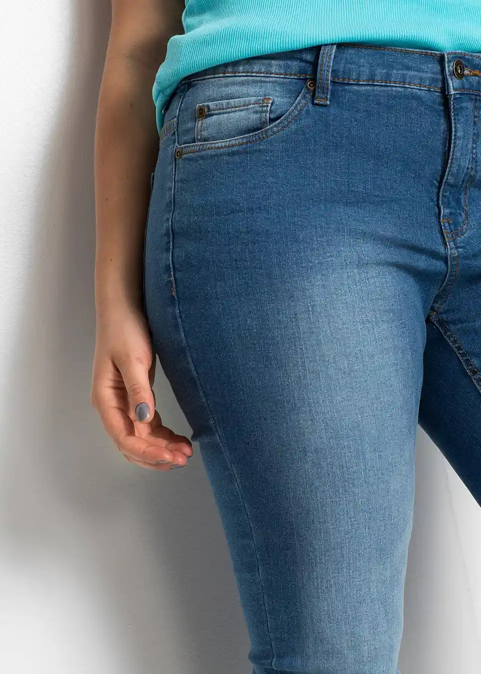 Te modne Skinny Jeans so izbira za številne trendovske outfite. Jeans hlače v stilu petih žepov imajo kul pranje in trajne gube. Druga posebnost je modno skrajšana dolžina 7/8. Skrajšan Super Skinny Jeans se prilagaja tvojemu individualnemu slogu - lahko jih nosiš s sproščeno majico, Oversize puloverjem ali T-Shirtom.