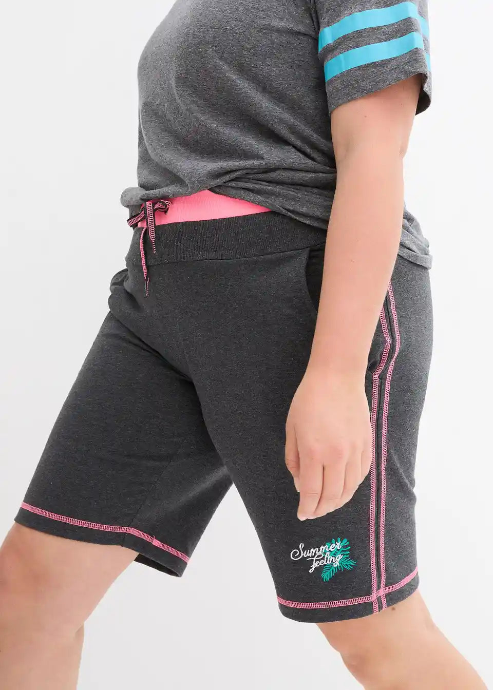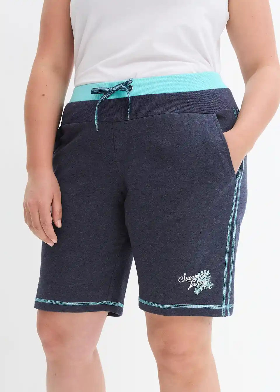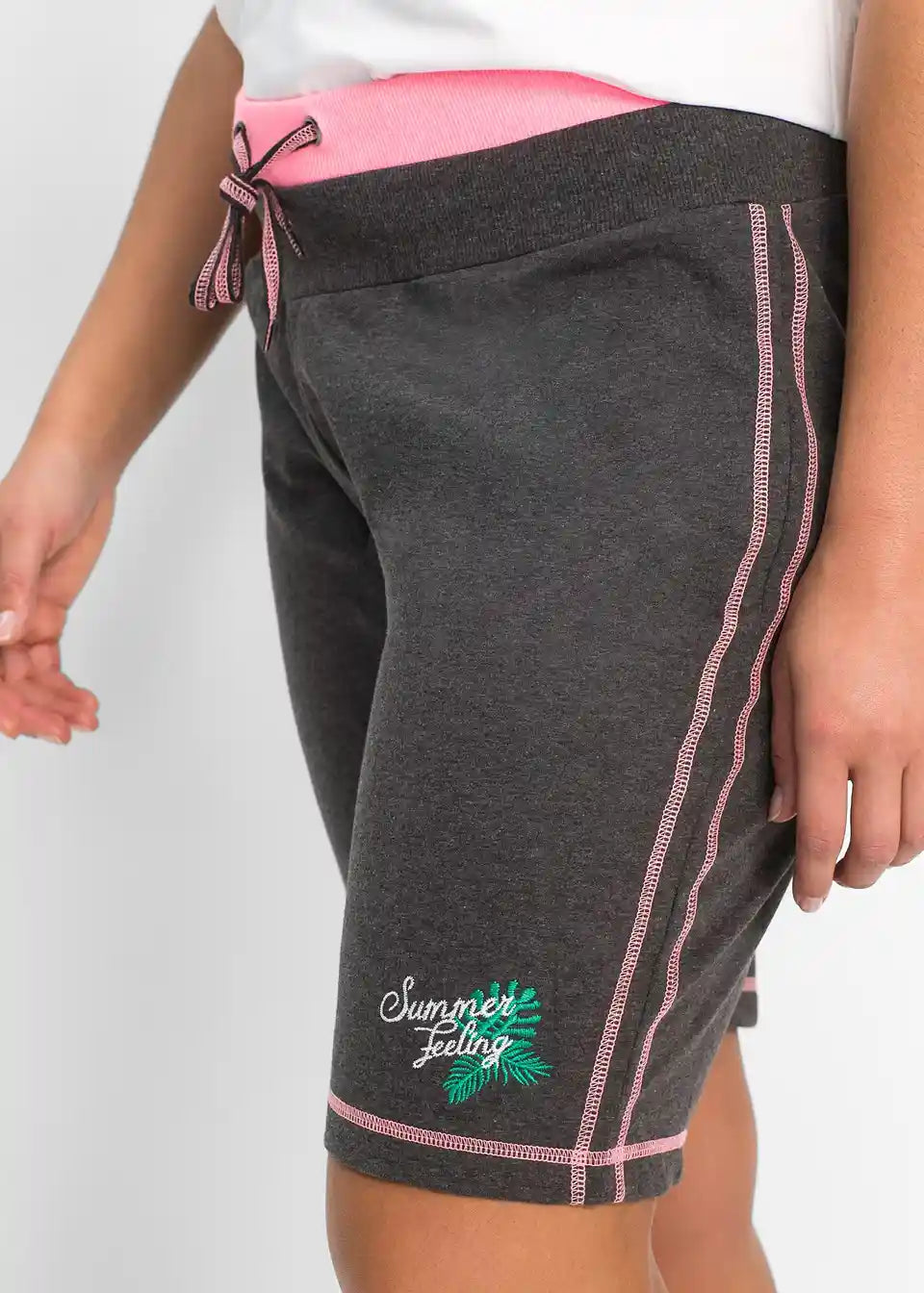 Udobne sweat kratke hlače z vezenjem in kontrastnimi šivi