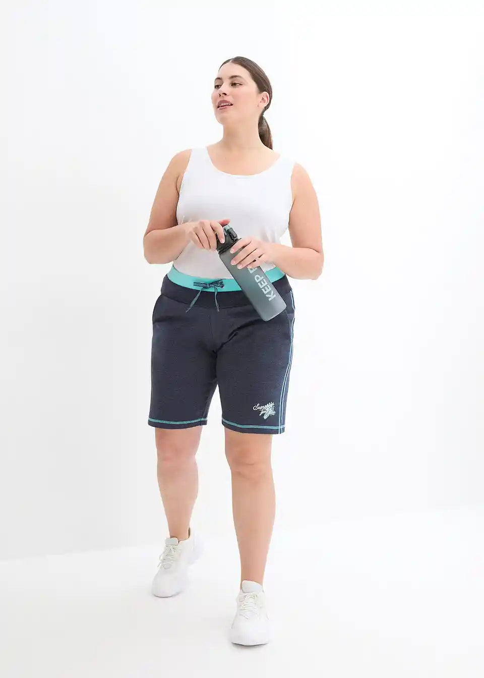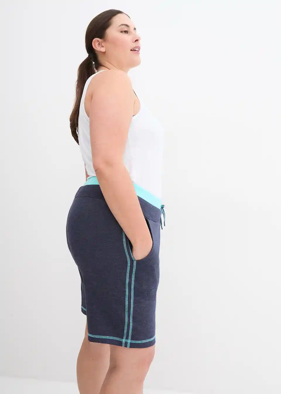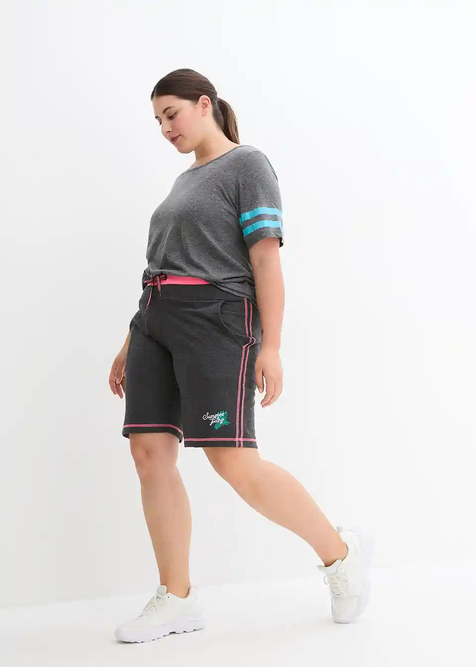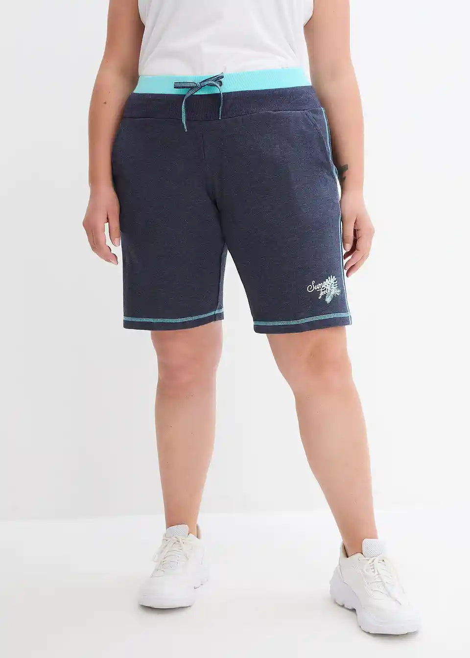 Udobne sweat kratke hlače z vezenjem in kontrastnimi šivi