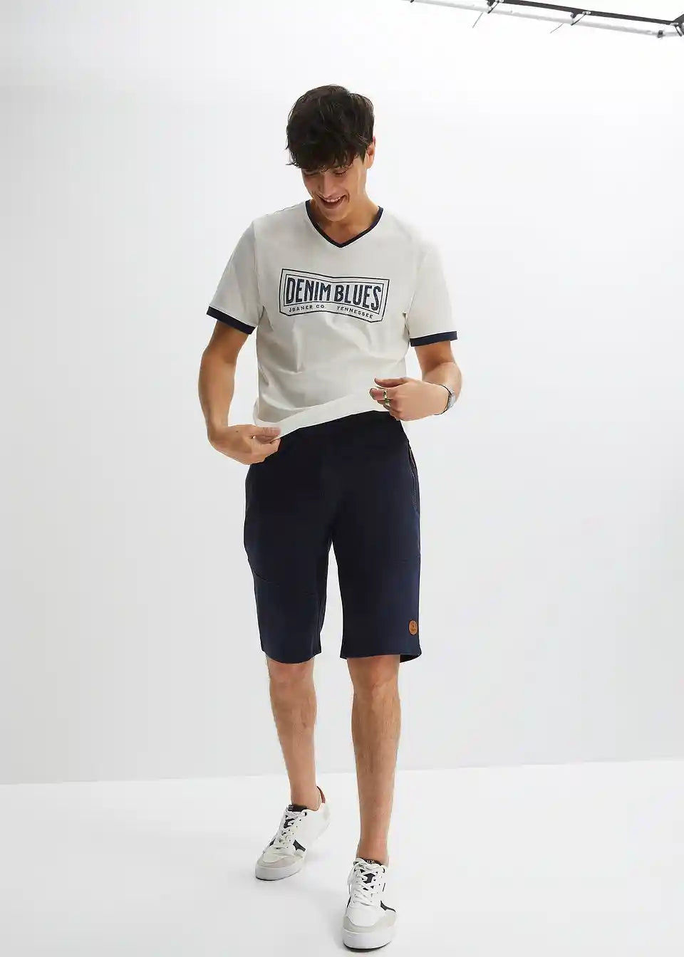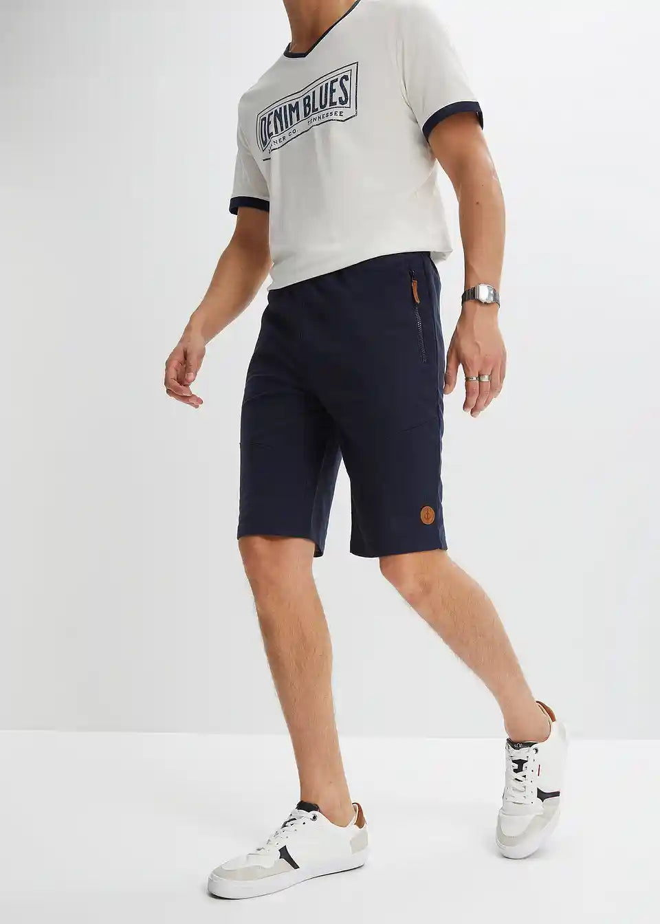 Lepa Sweat-Bermuda z zadrgo na žepih in detajli iz imitacije usnja, primerna za pranje v stroju