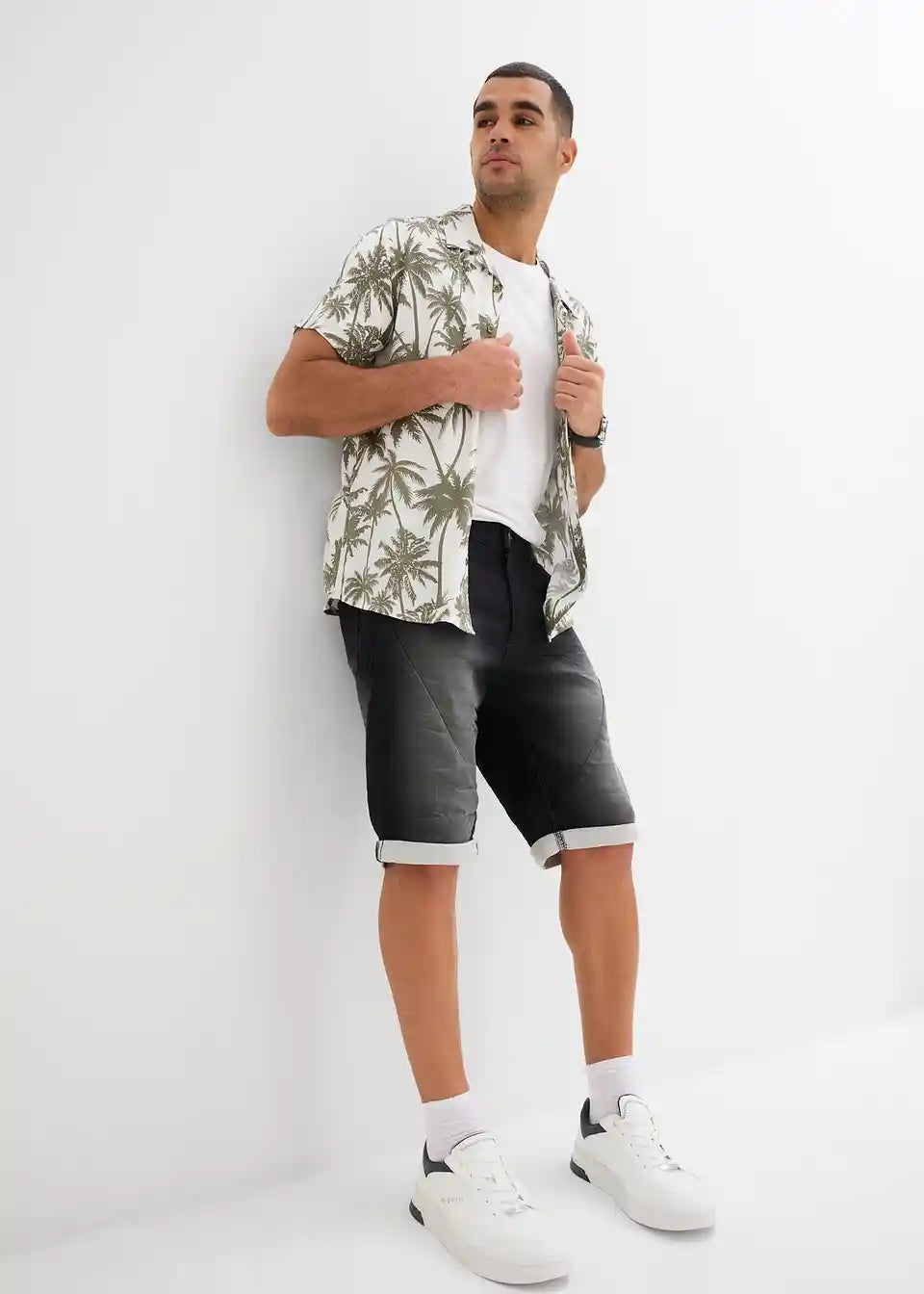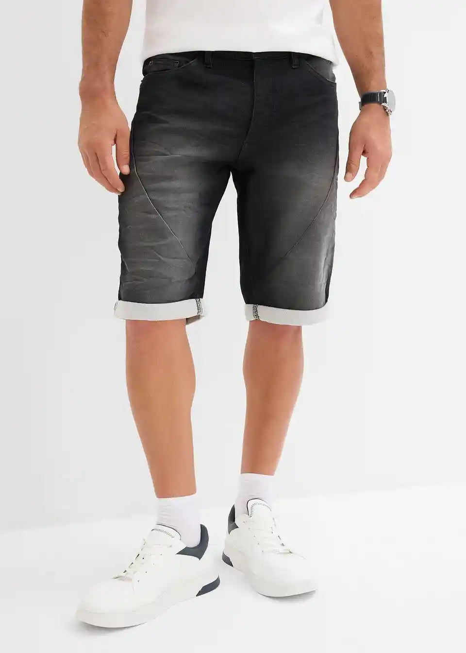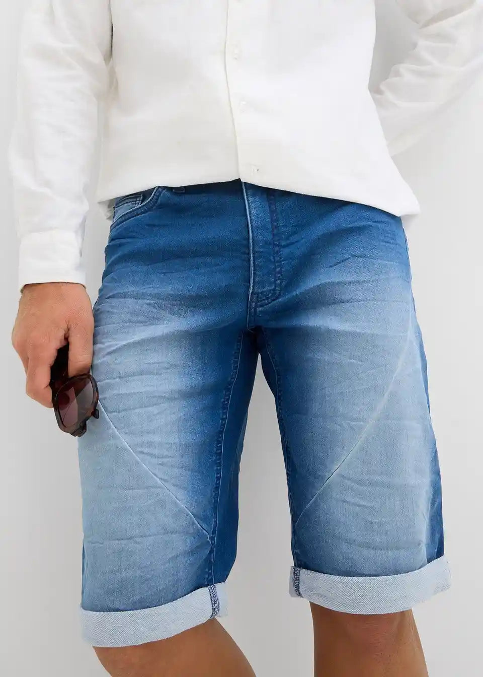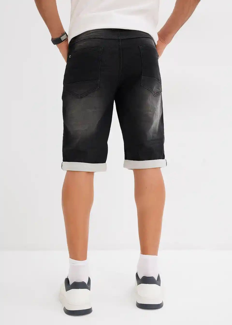 Ležerno široko krojena Sweatjeans-Bermuda v trendovski used videzu