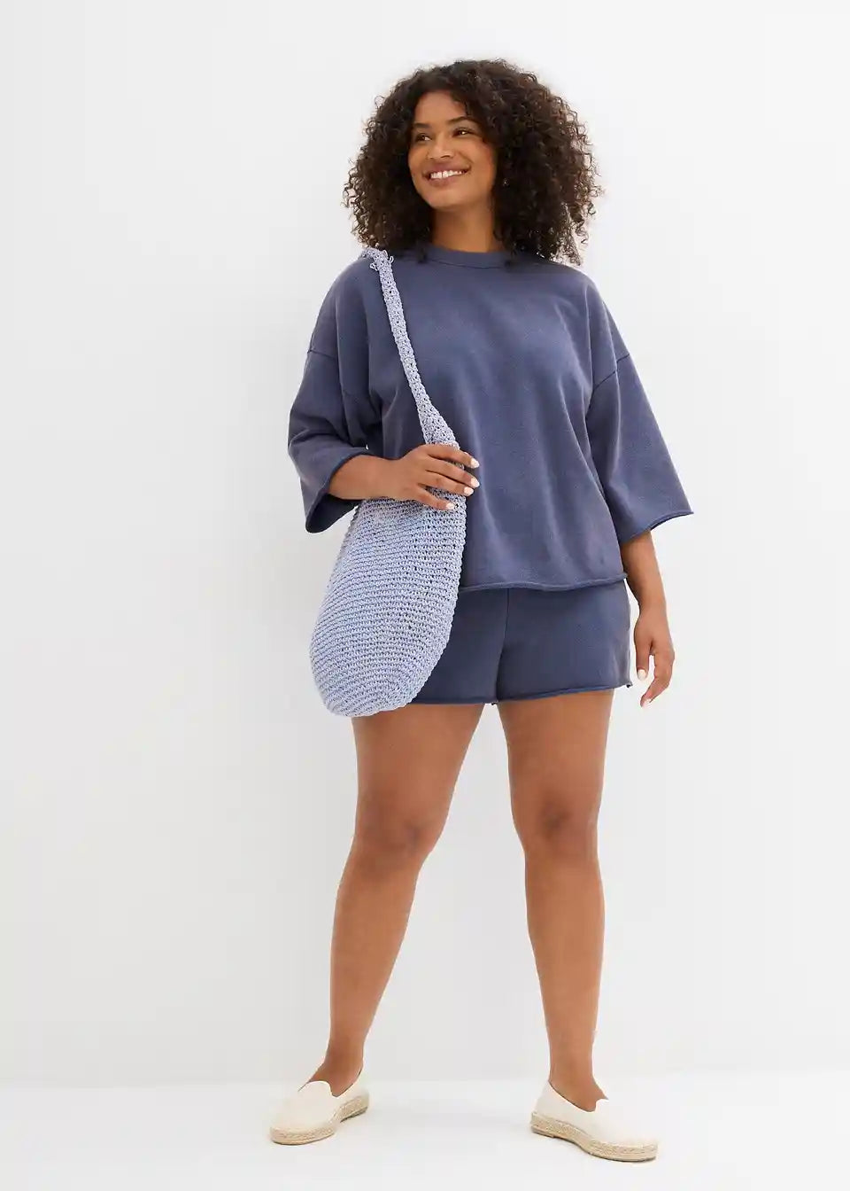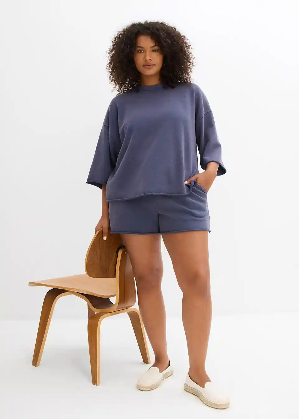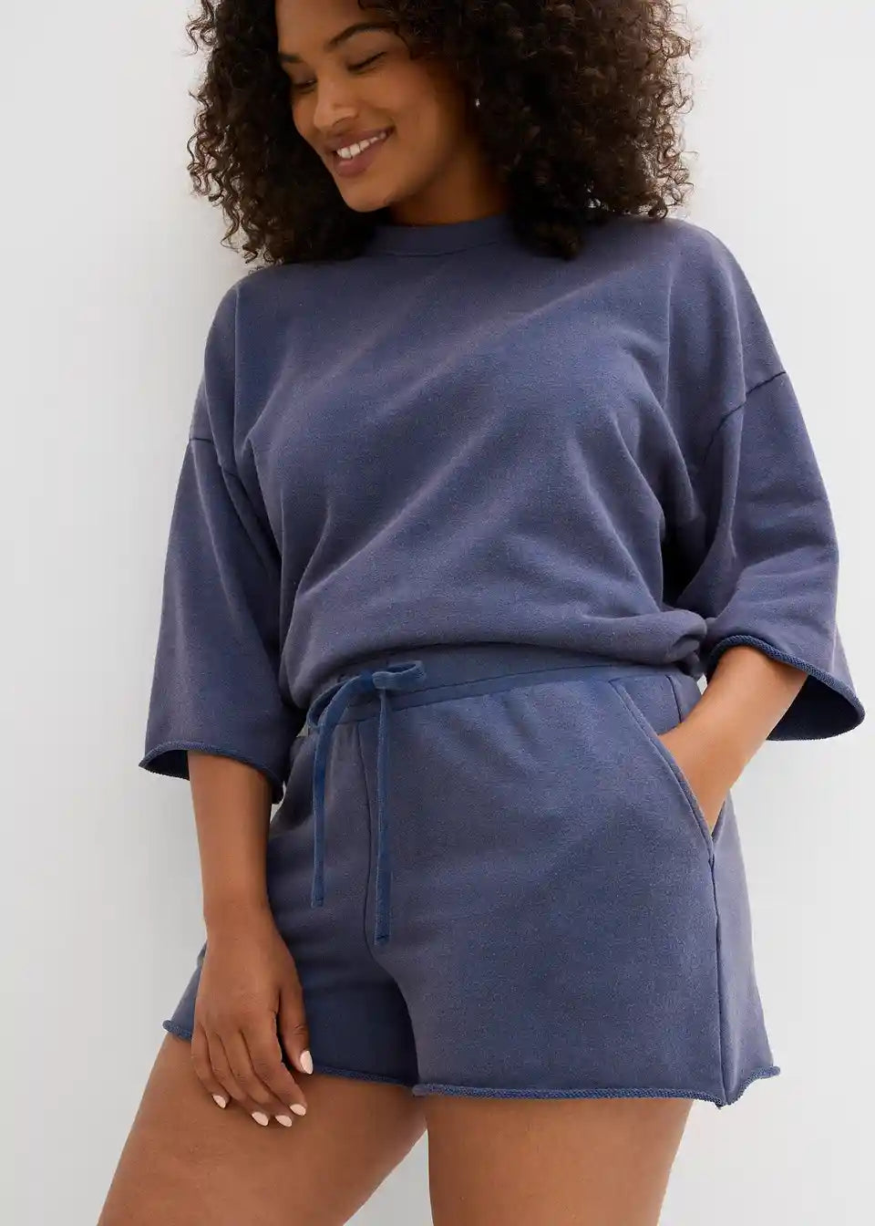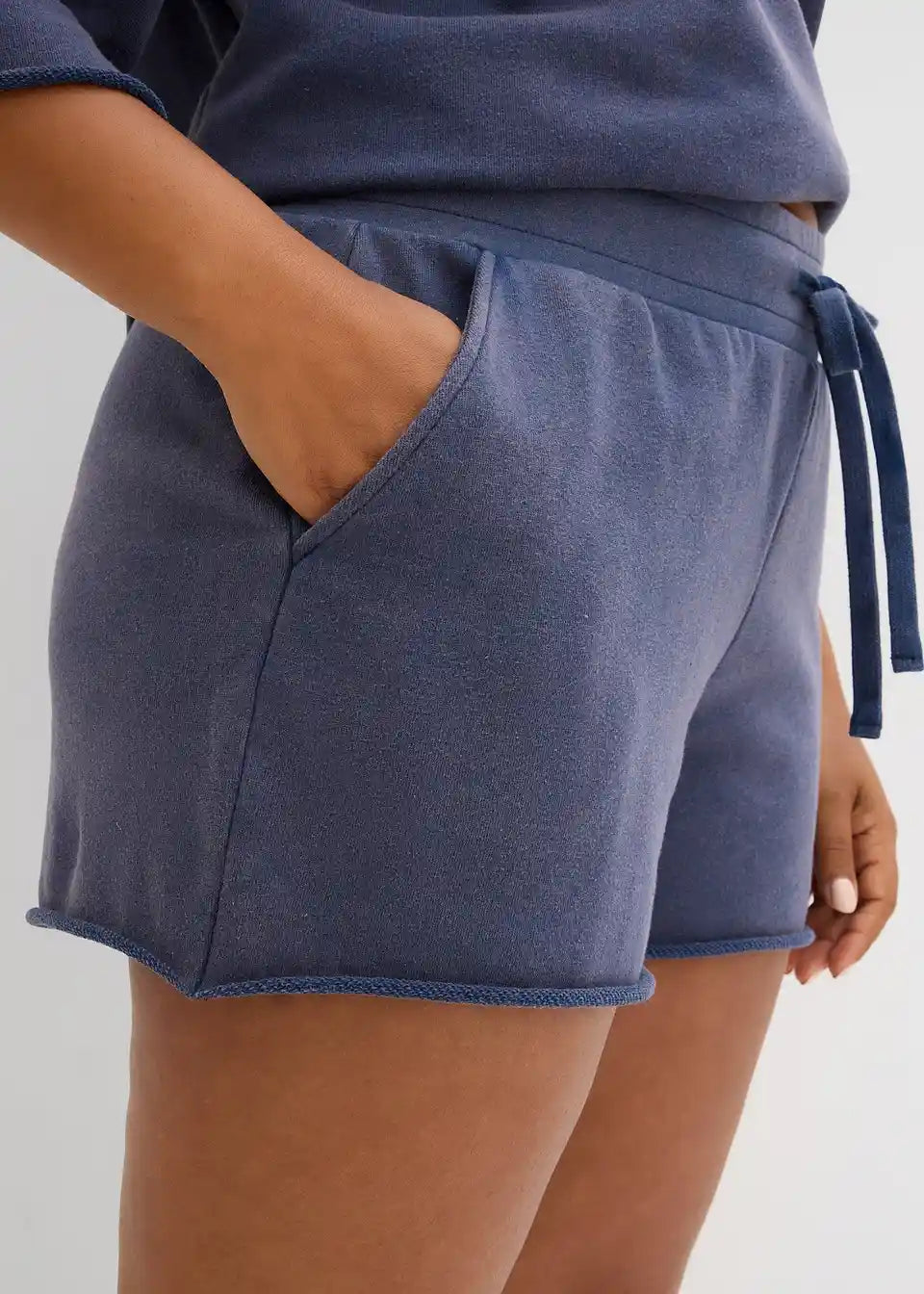 Sproščene sweat kratke hlače v spranem videzu s stranskimi žepi