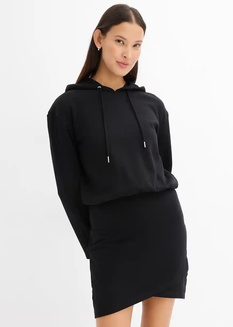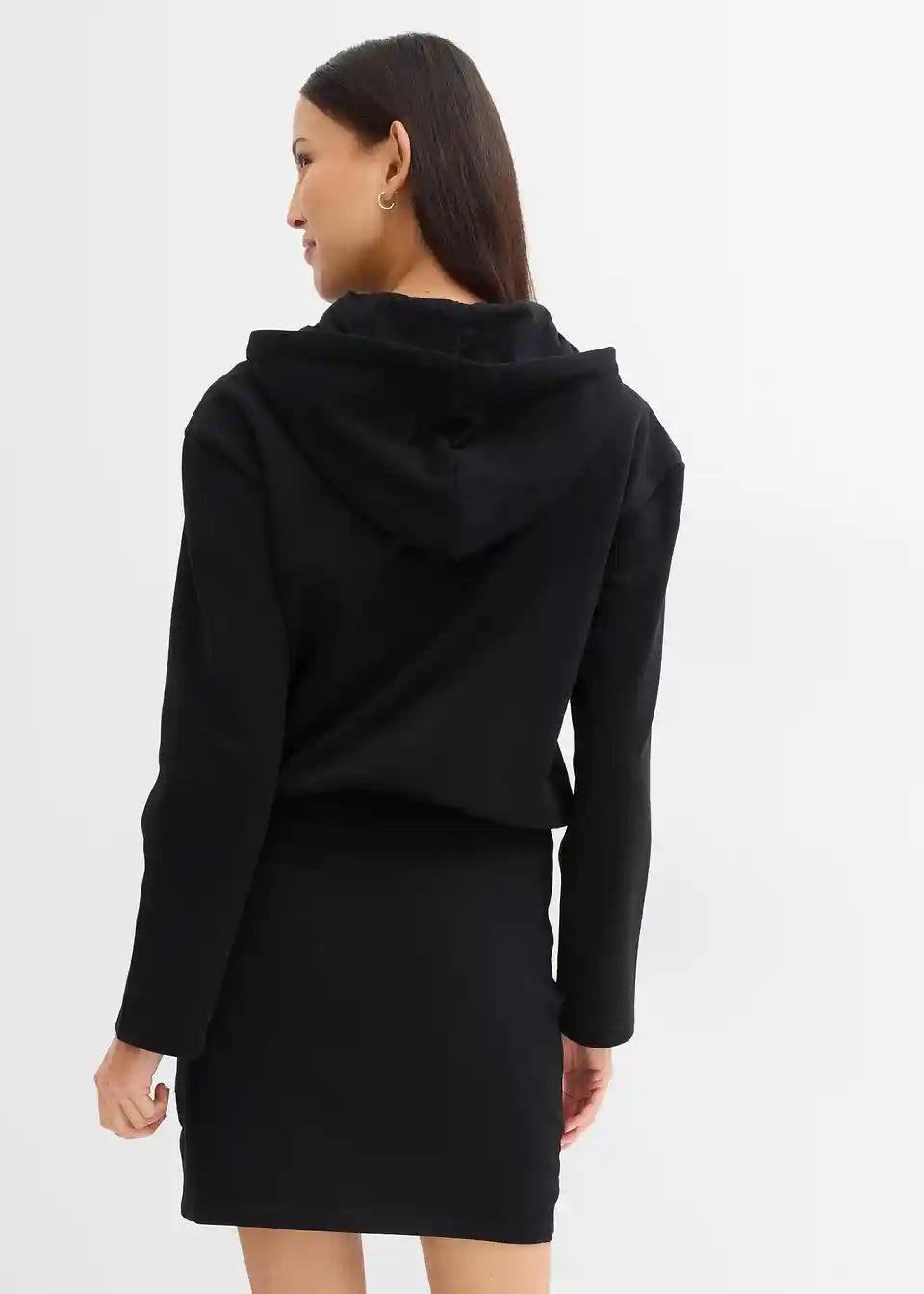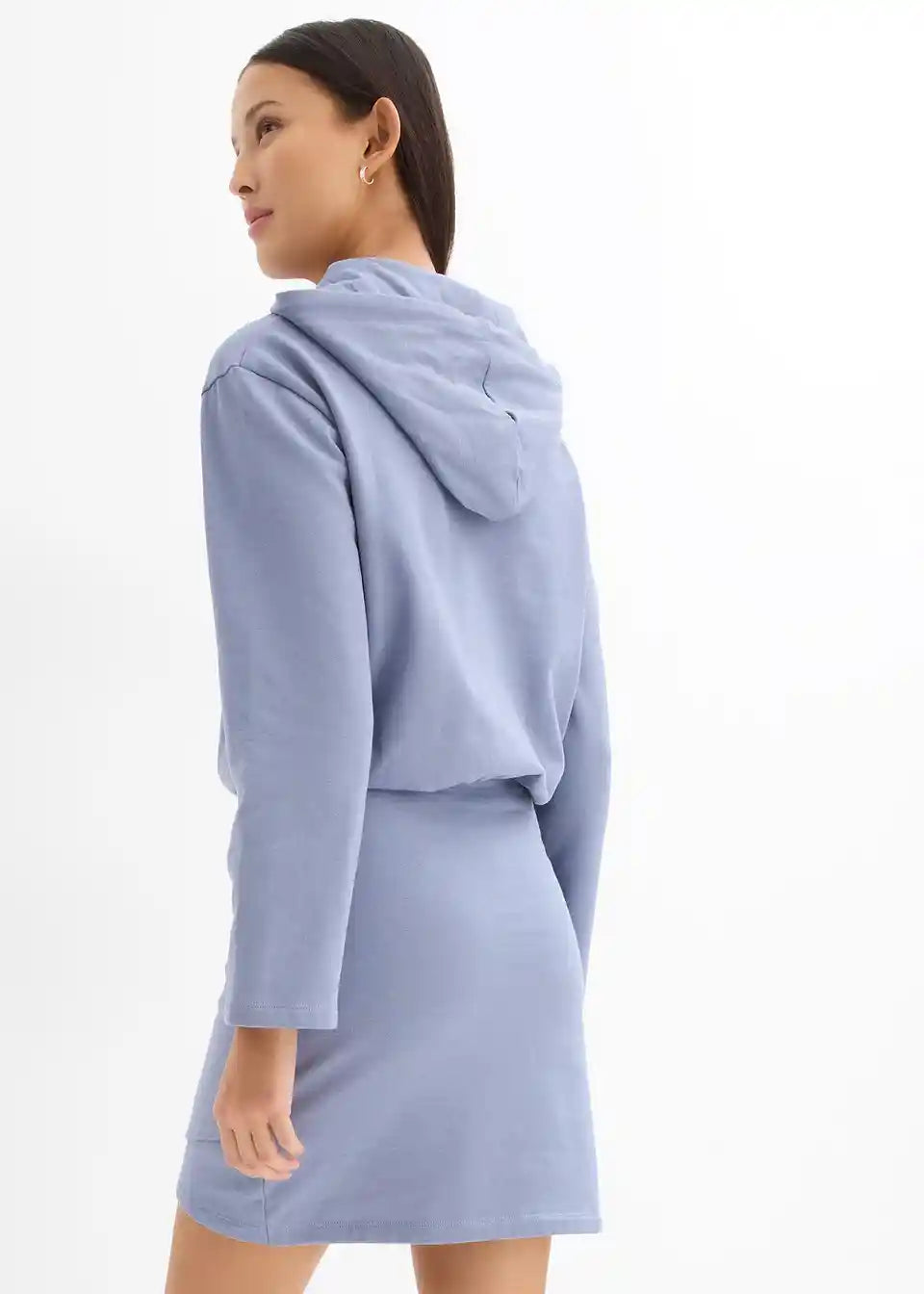 Ležerna sweat obleka s kapuco in ozkim krilom
