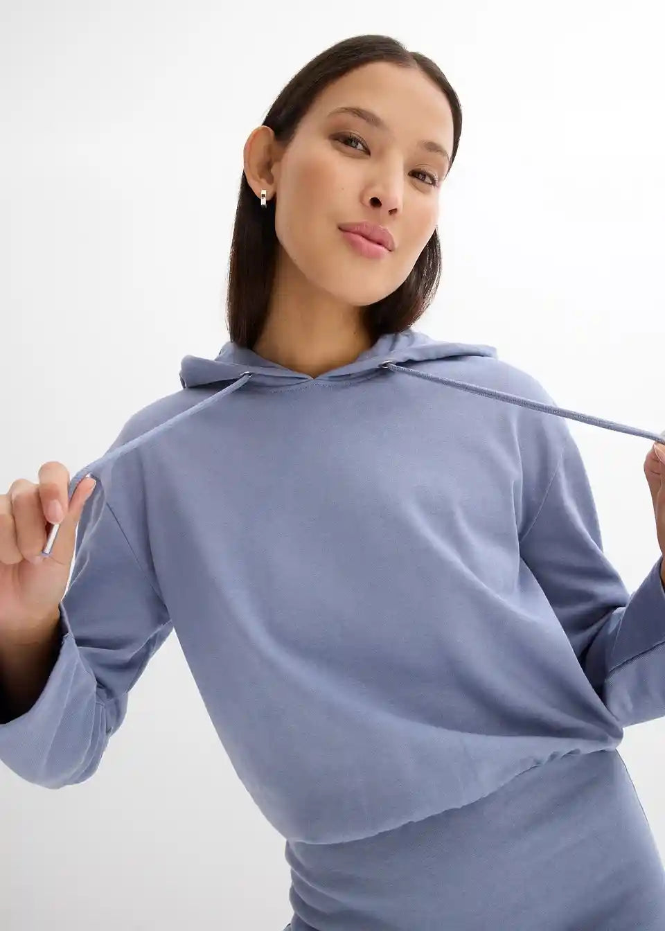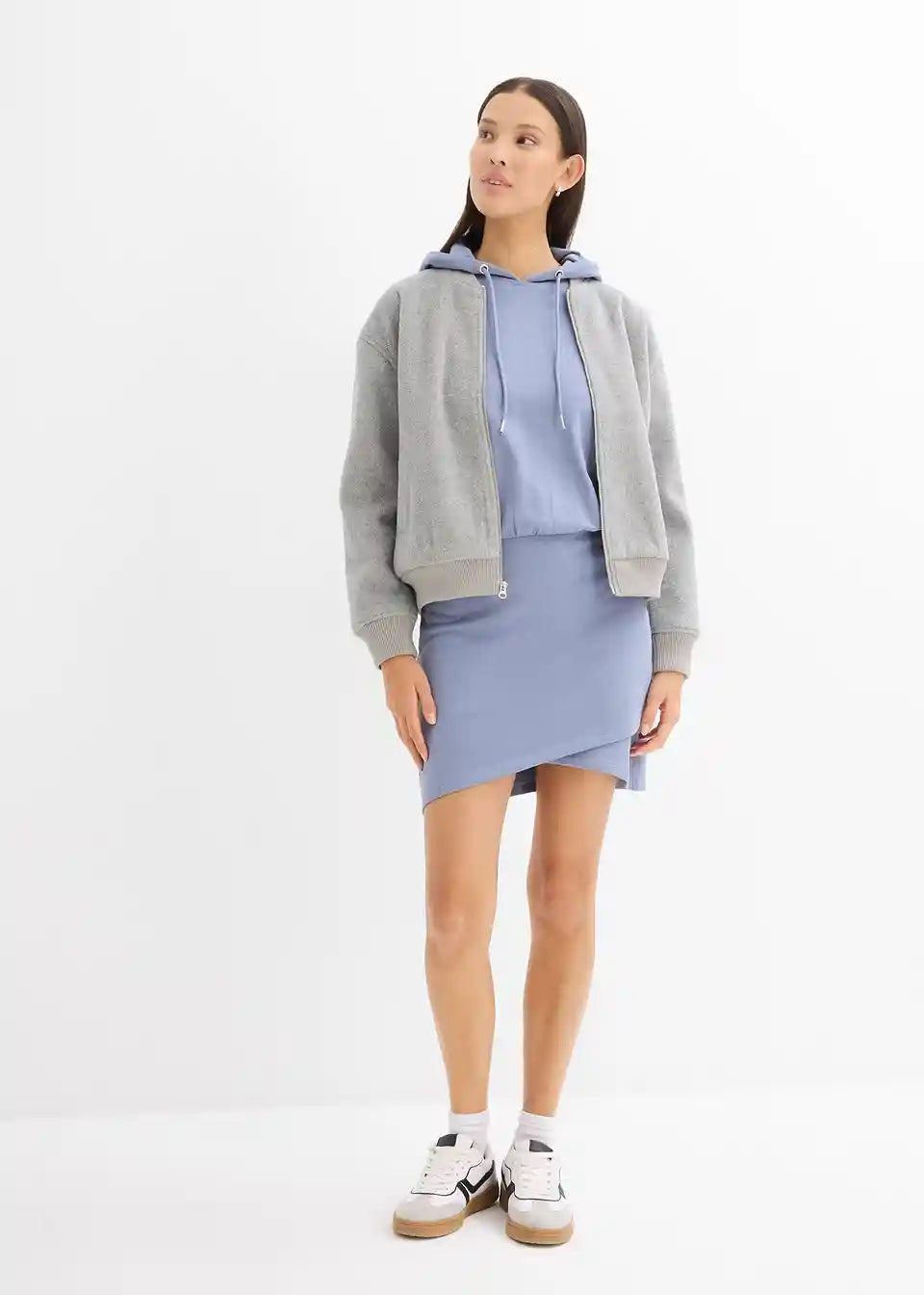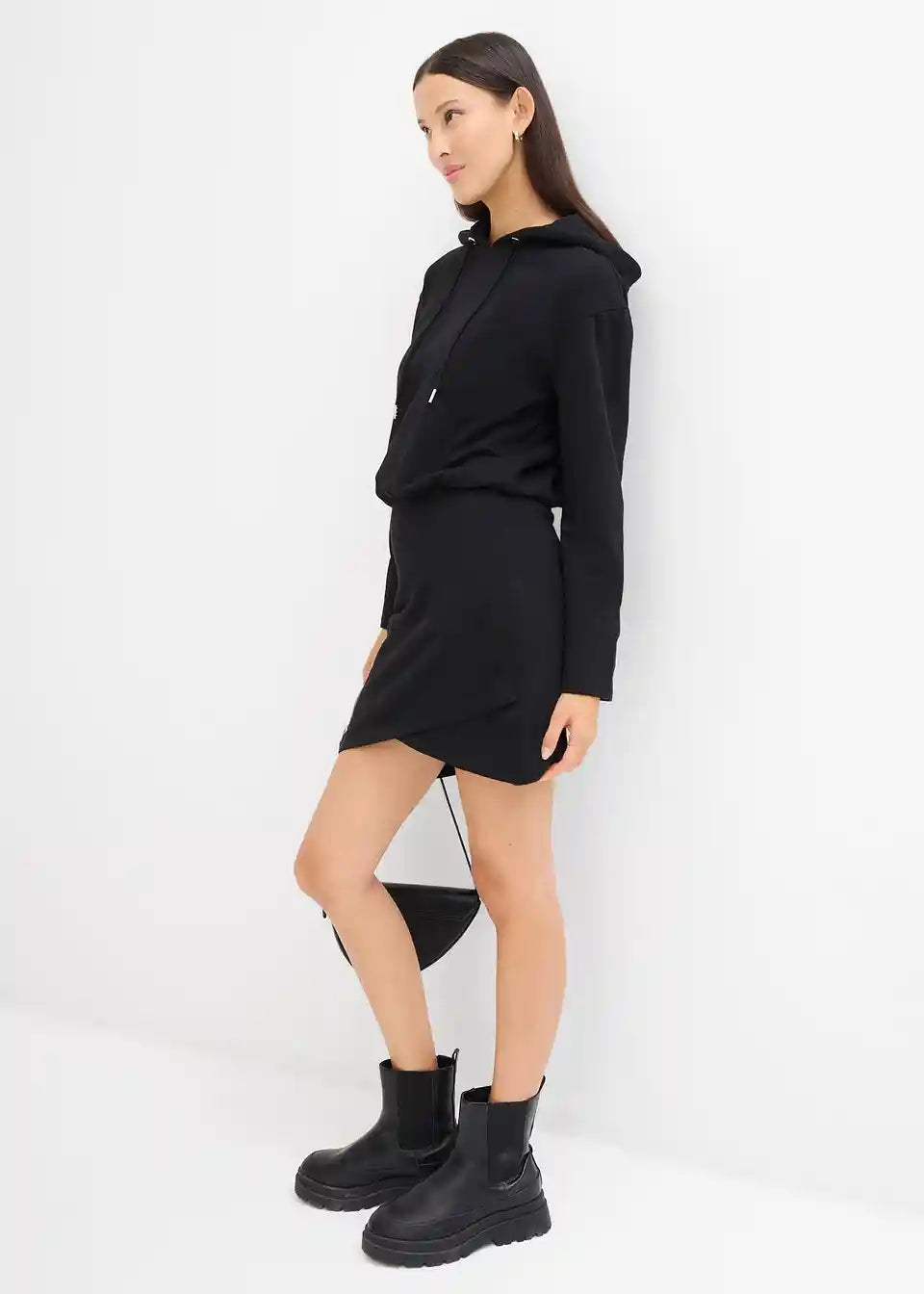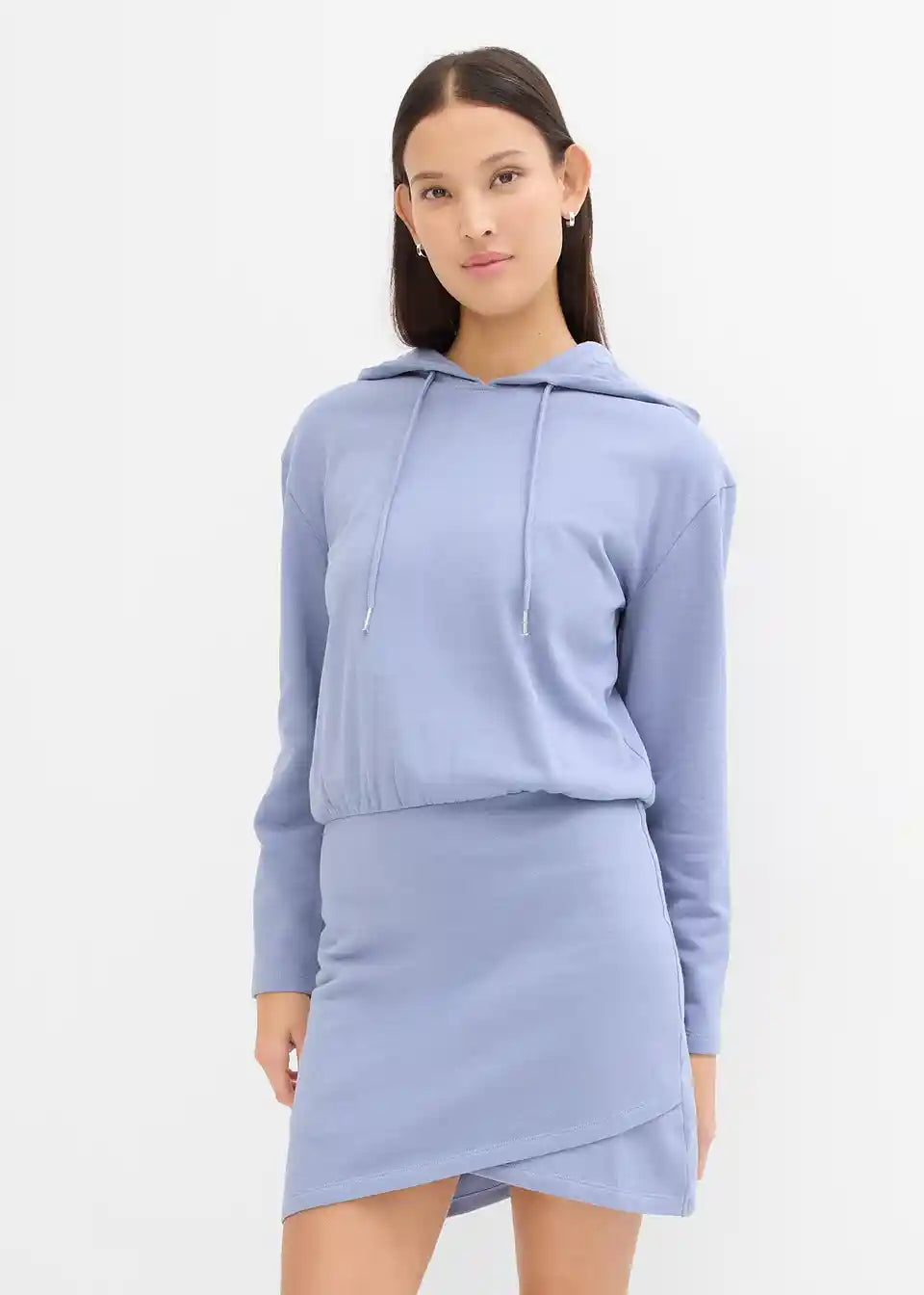 Ležerna sweat obleka s kapuco in ozkim krilom