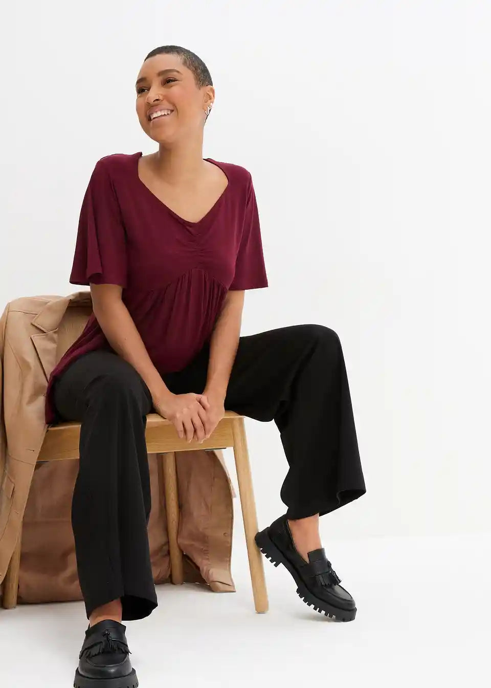 Modno krojena T-majica z nabranim šivom pod prsmi iz trajnostne viskoze