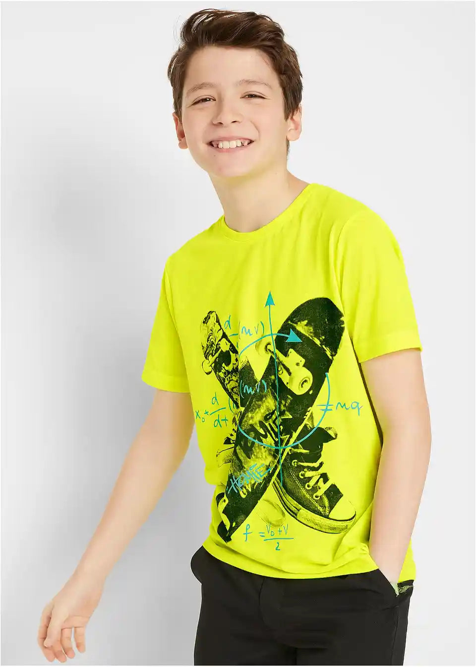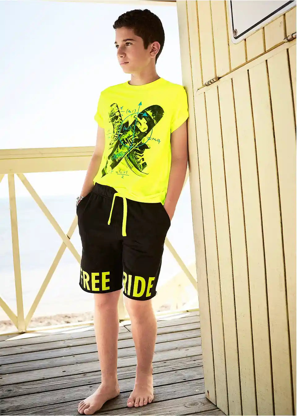 Cool potisk na sprednji strani s barvnimi poudarki zagotavlja trendovski slog pri tem T-Shirtu. Moden dizajn dopolnjuje sproščena kroj in okrogel izrez. Ne glede na to, ali je kombiniran s sweatshirtom, ležernimi kavbojkami ali bermuda hlačami: zavihani rokavi dodajo fantovskemu T-Shirtu iz kolekcije bpc dodaten pridih kulskosti.