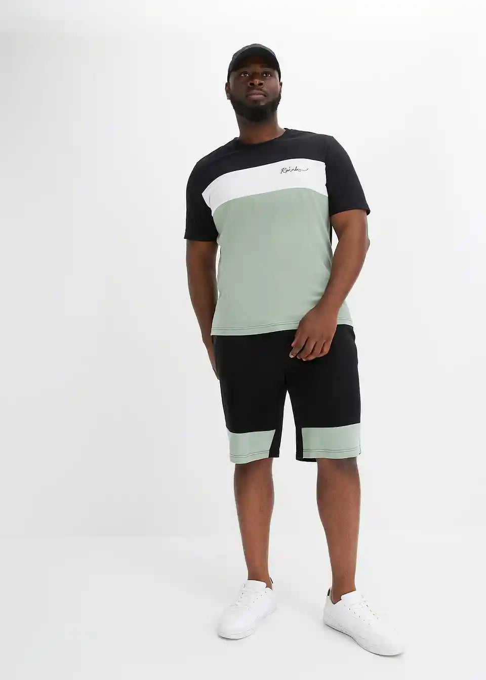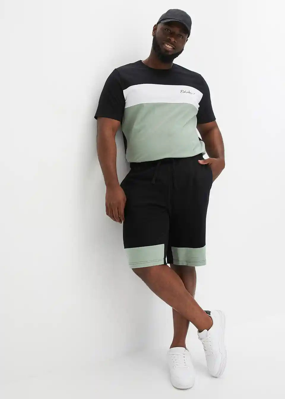 sodoben komplet, sestavljen iz T-shirta in kratkih bermuda hlač iz jerseya