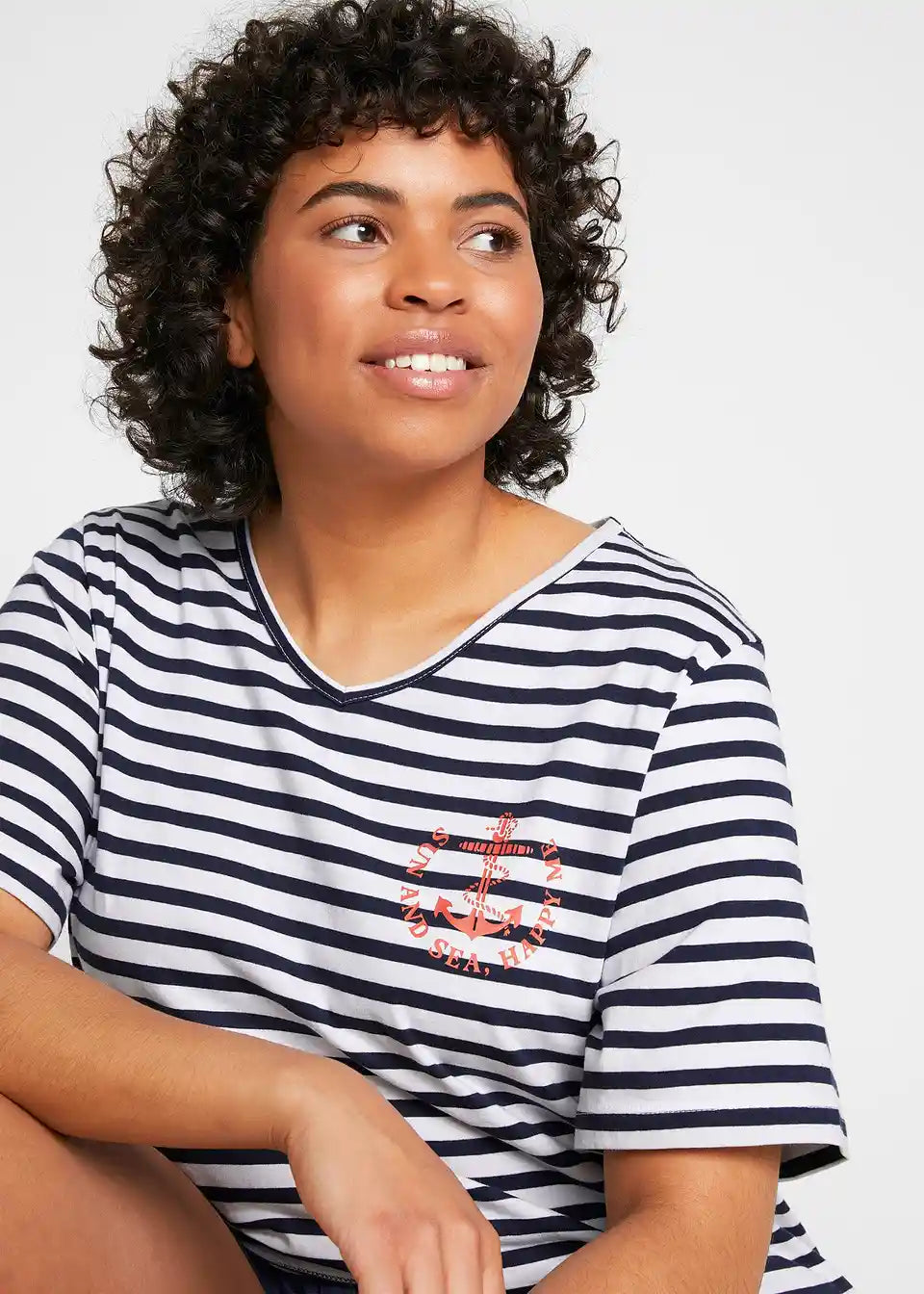 Preprosta majica z udobnim krojem, manjšim potiskom in okroglim izrezom
