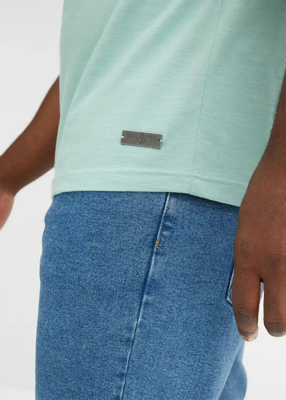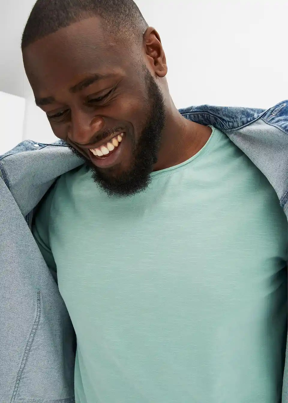 Modno T-Shirt z odprtimi robovi na izrezu in majhnim kovinskim našitkom ob stranskem šivu