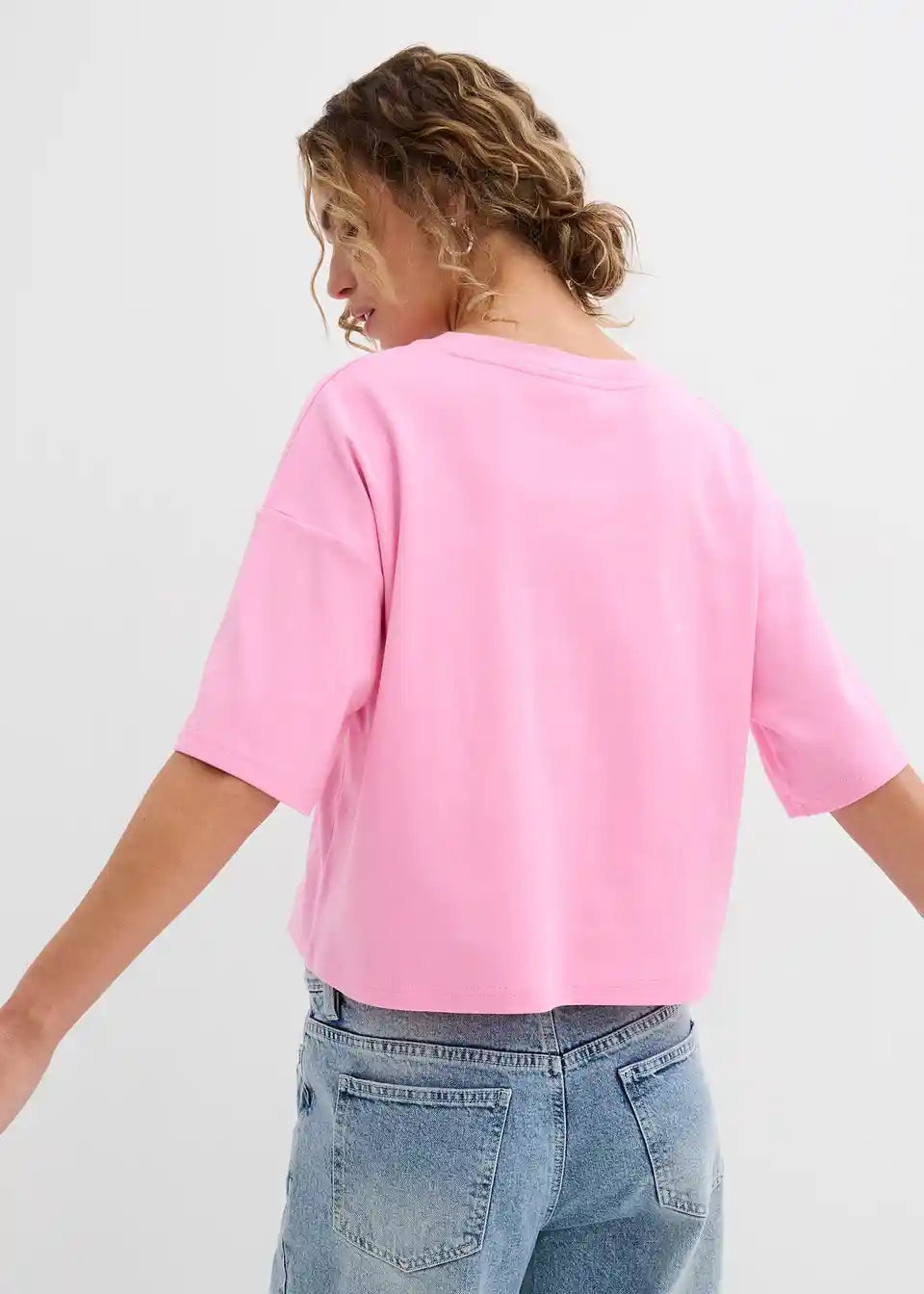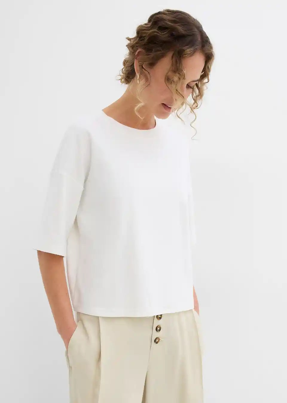 Ohlapno krojena majica z okroglim izrezom in trikratratkimi rokavi iz organskega bombaža