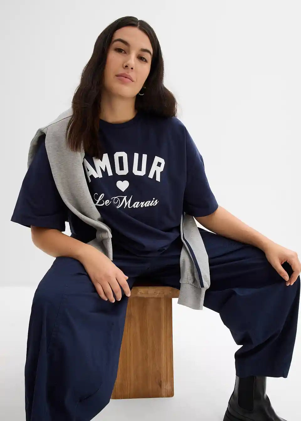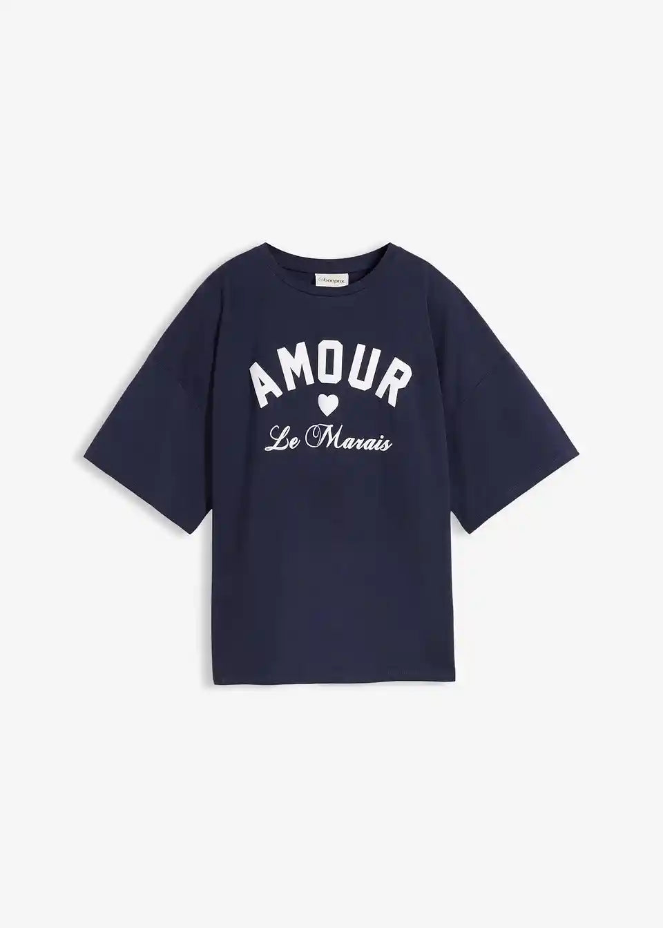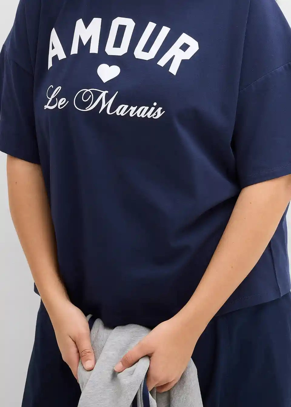 Udobna T-Shirt majica iz elastičnega materiala z deležem ekološkega bombaža s potiskom