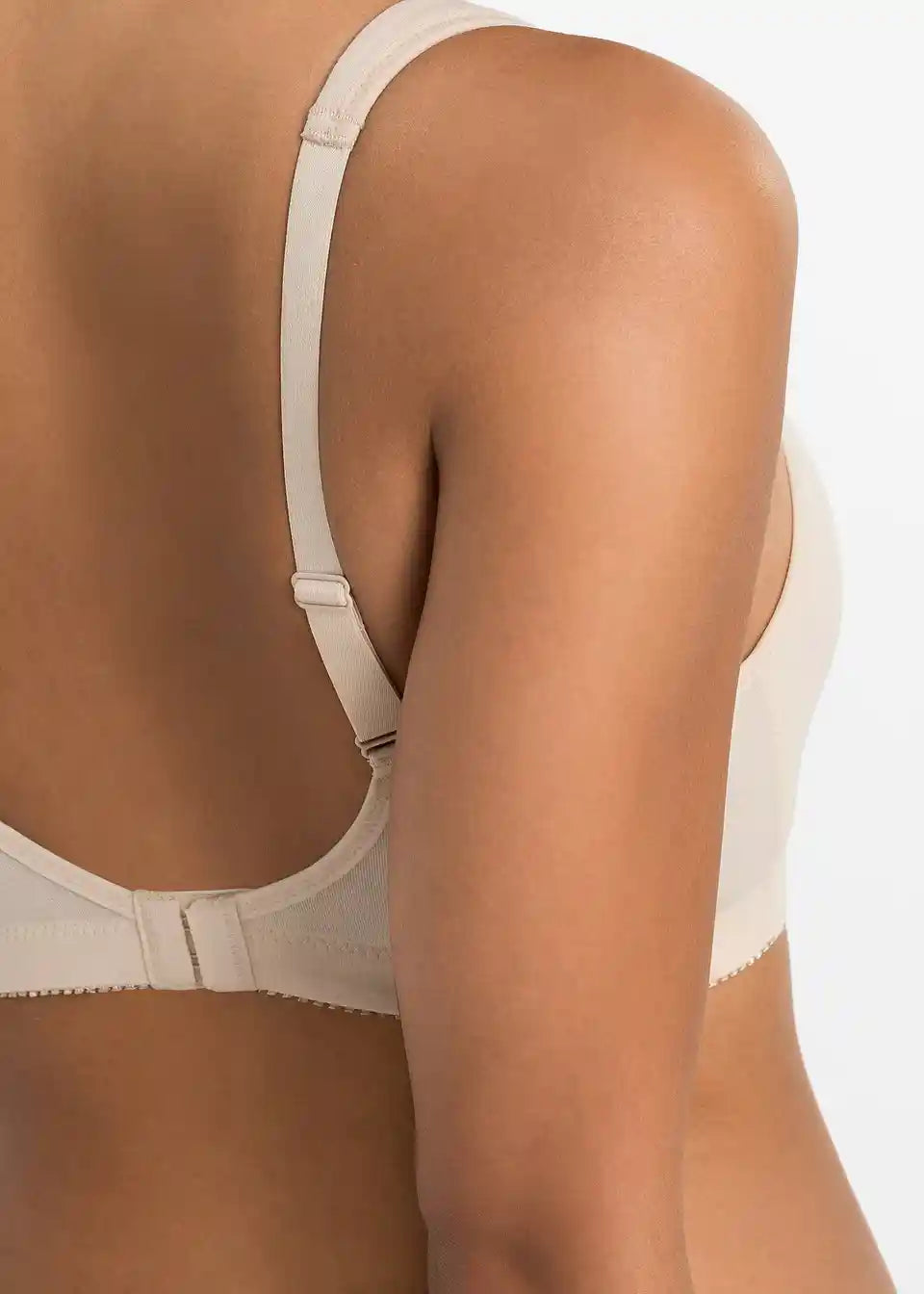 Ta nedrček brez žične opore ima široke, podložene naramnice in je zaradi izdelave idealen za nošnjo pod T-shirt majicami