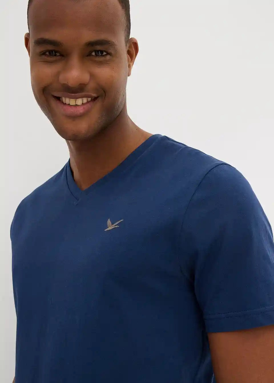 moderna majica s kratkimi rokavi z majhnim vezenjem na prsih in V-izrezom v ugodnem dvojnem paketu