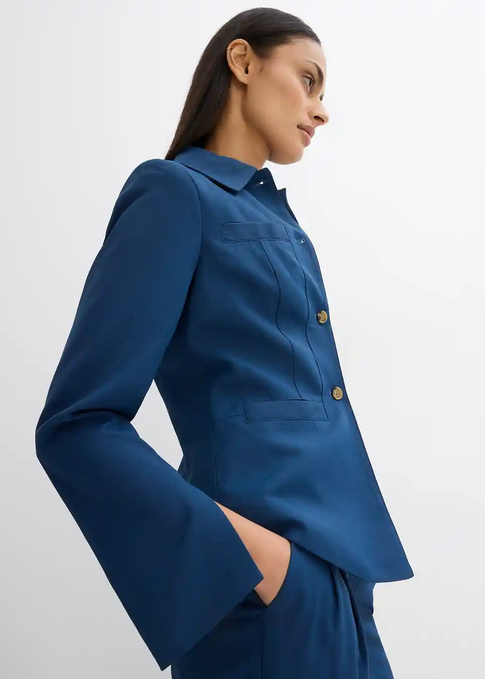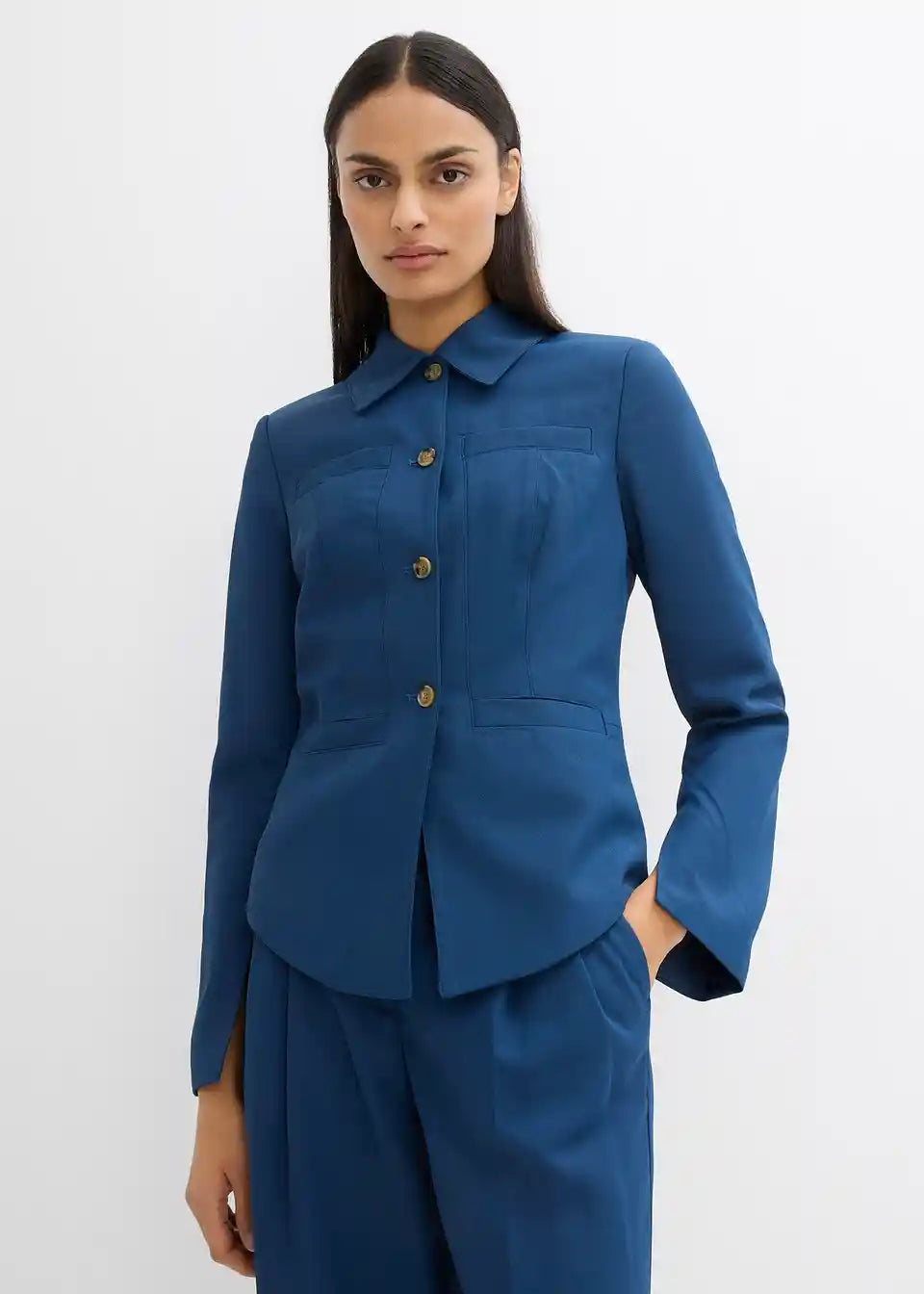 Srajčna jakna s koničastim ovratnikom in štirimi našitimi žepi spredaj v Utility-stilu