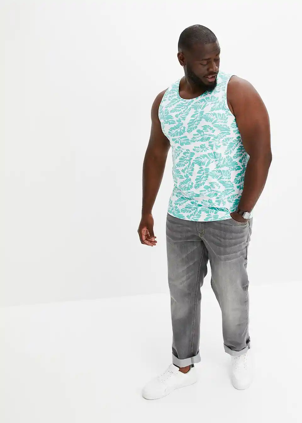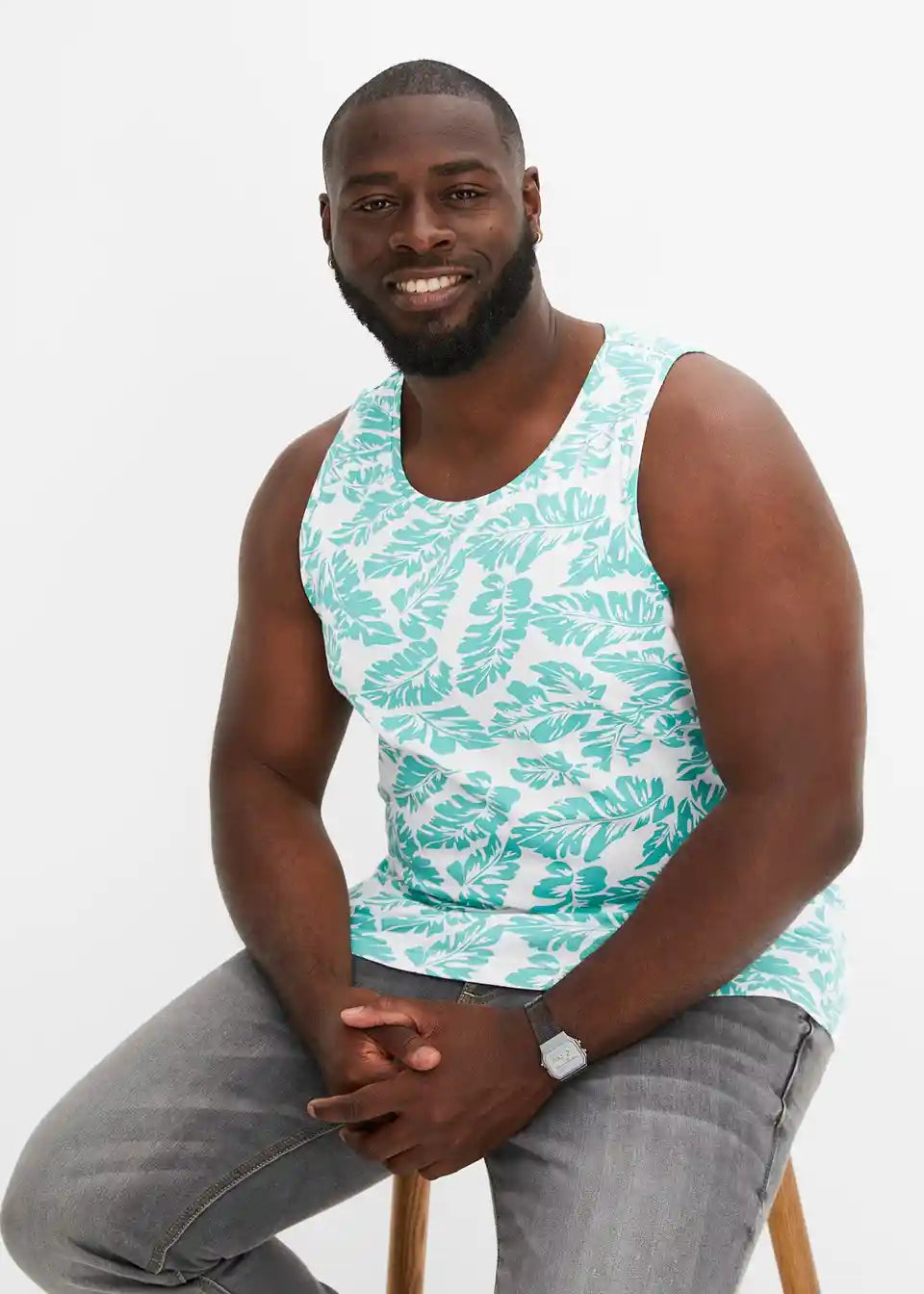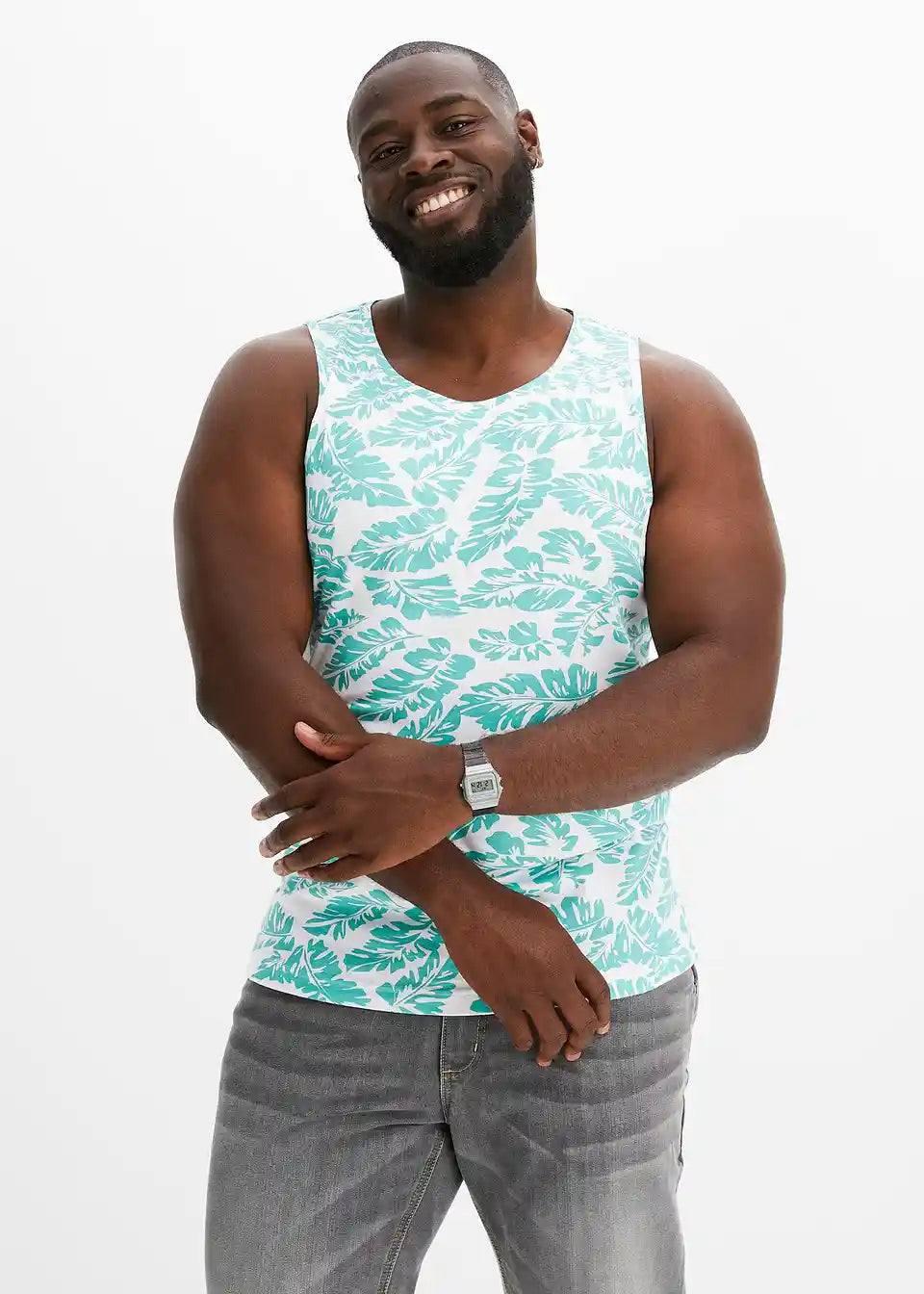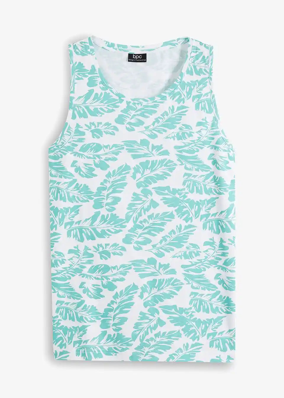 Trendy tanktop z okroglim izrezom in potiskom po celotni površini