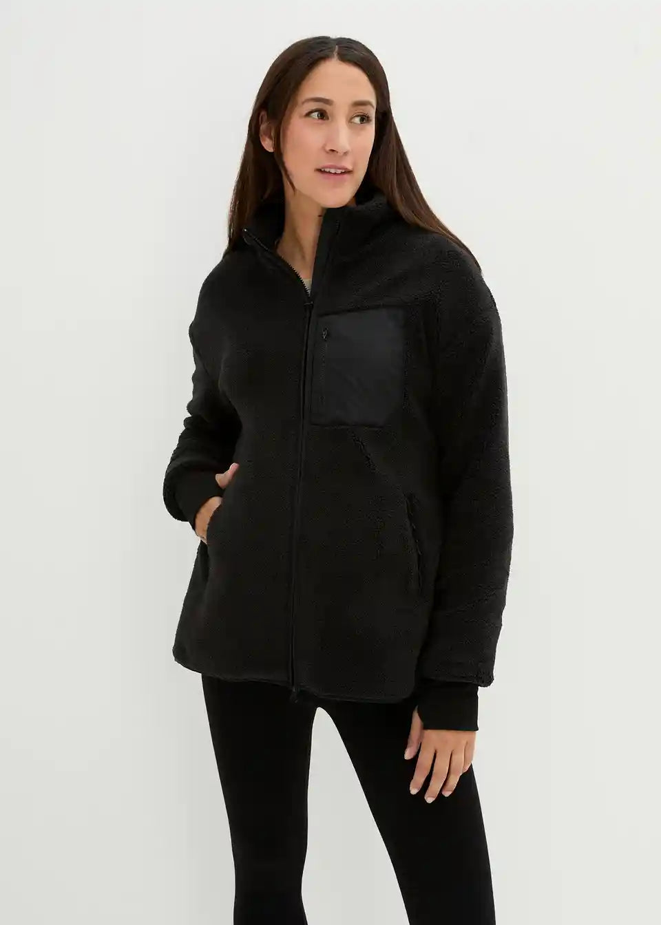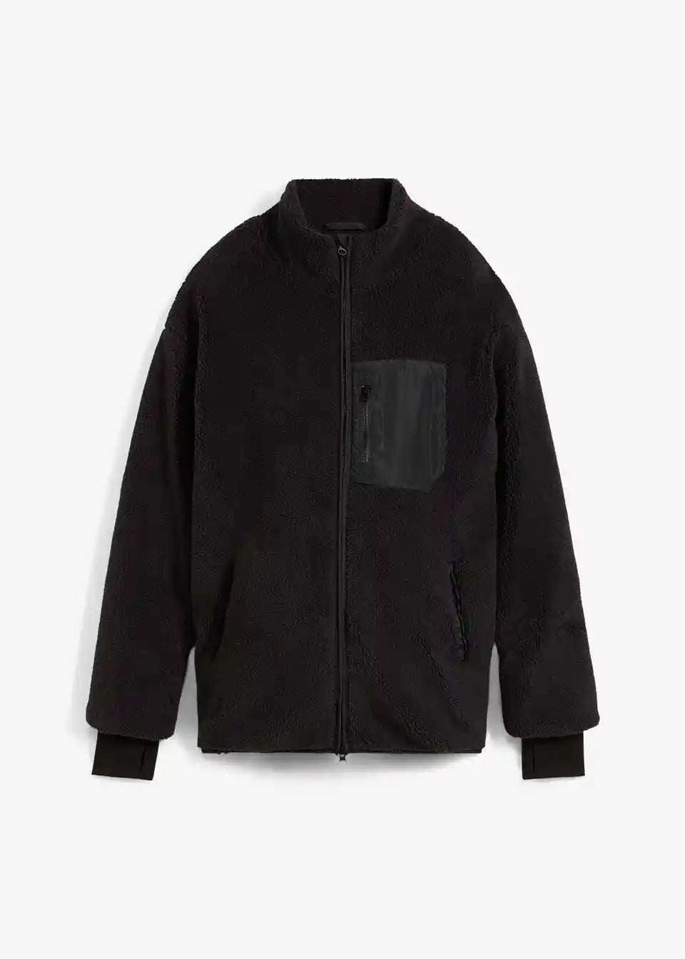 Prijetno mehka Teddy-Fleece jakna z žepom na zadrgo na sprednji strani
