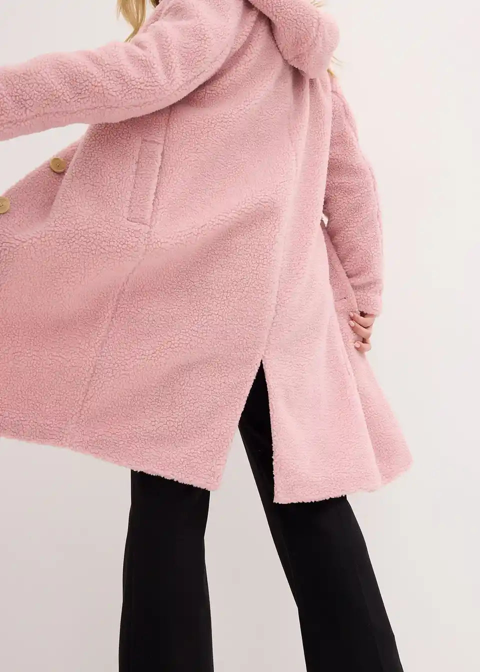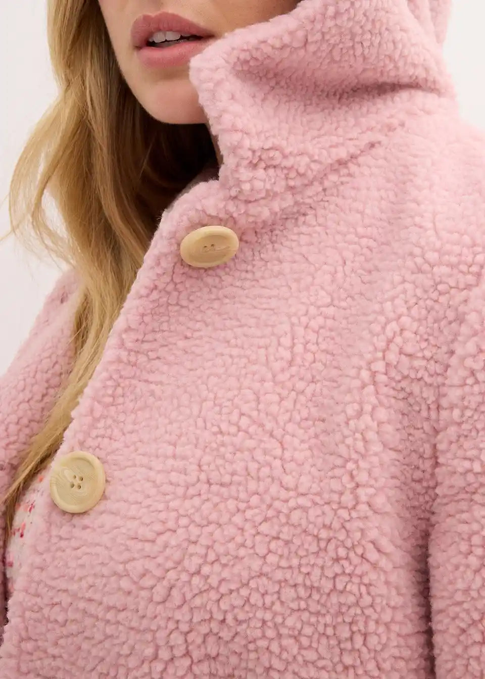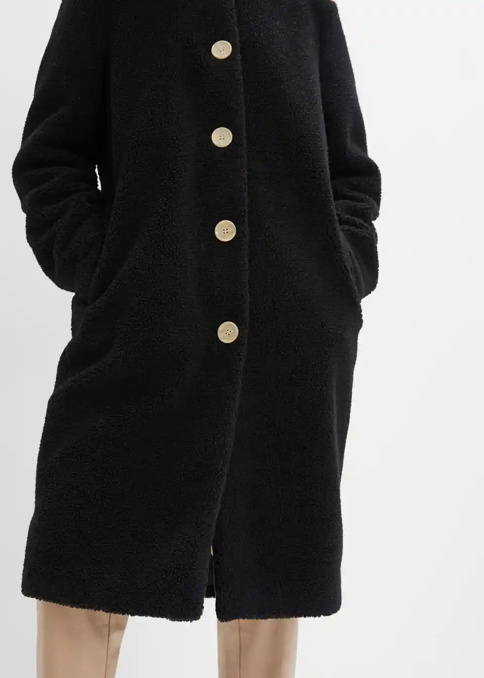 Udoben teddy plašč z zapenjanjem na gumbe, ohlapno krojen