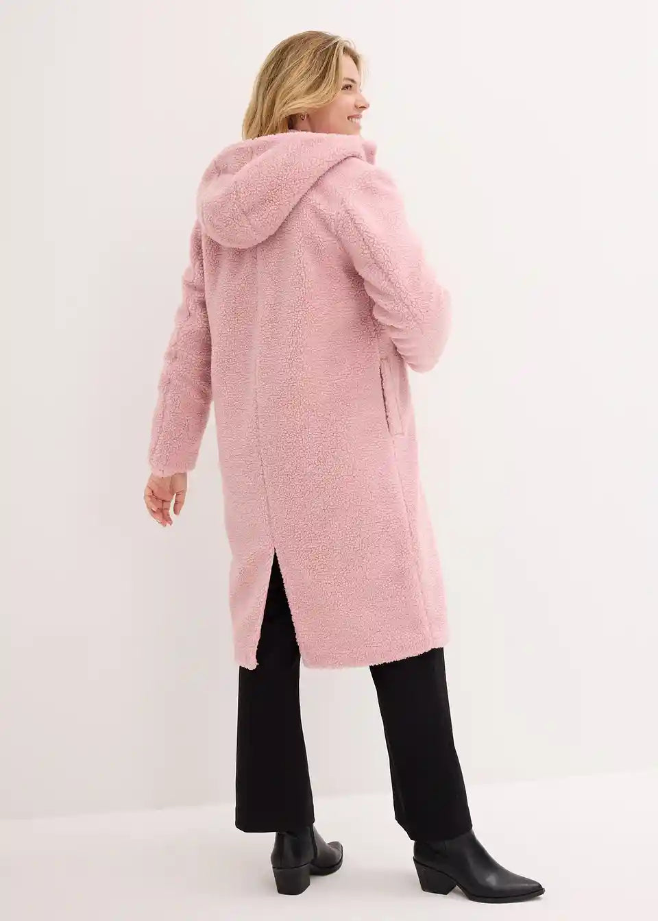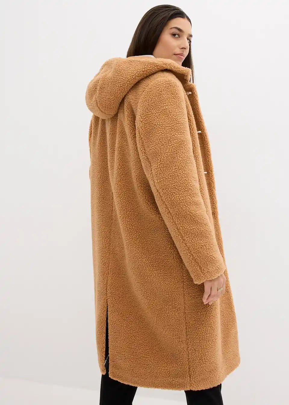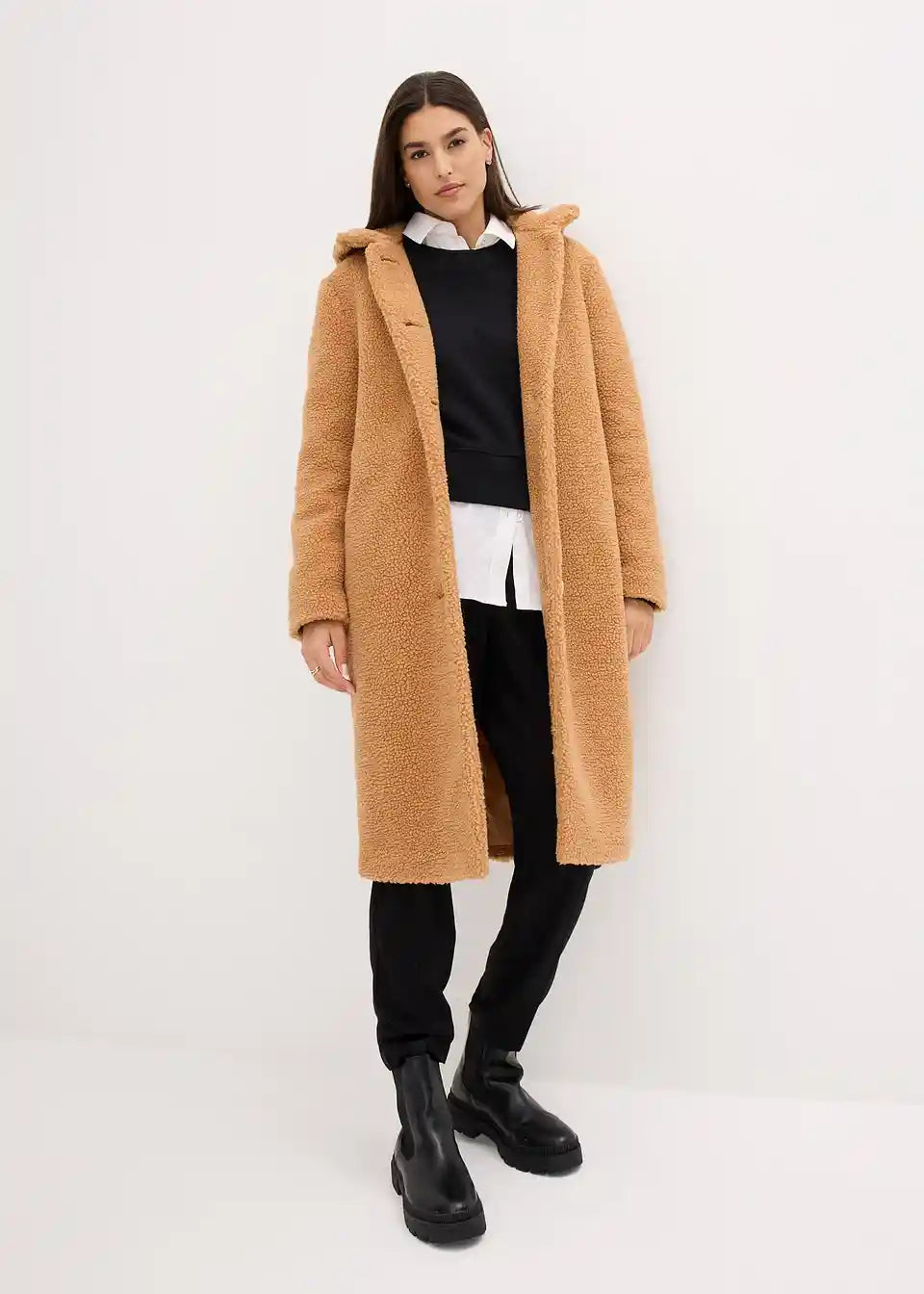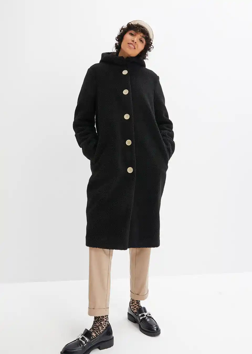 Udoben teddy plašč z zapenjanjem na gumbe, ohlapno krojen