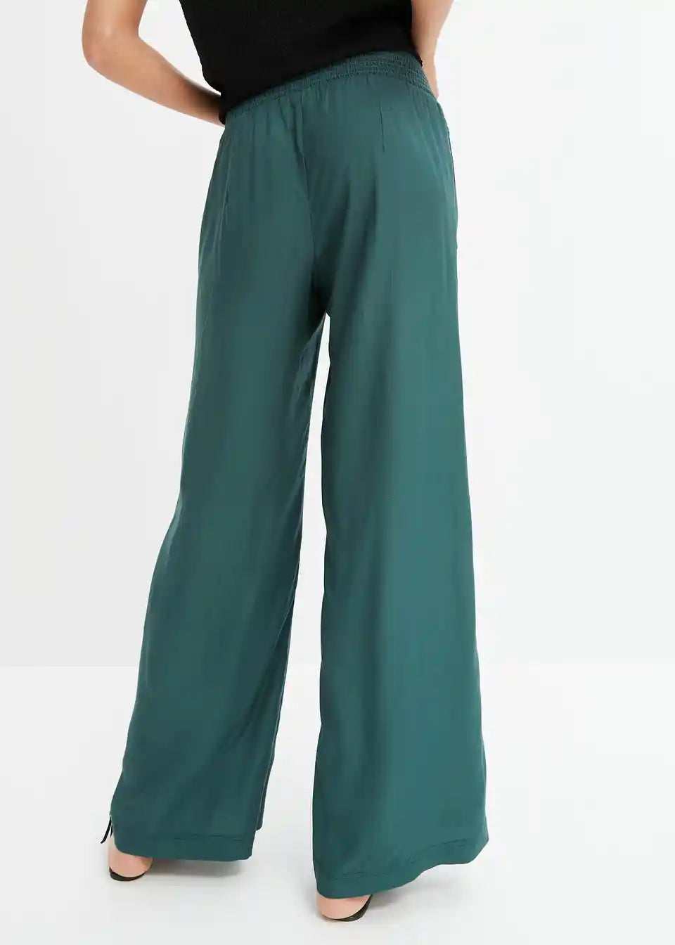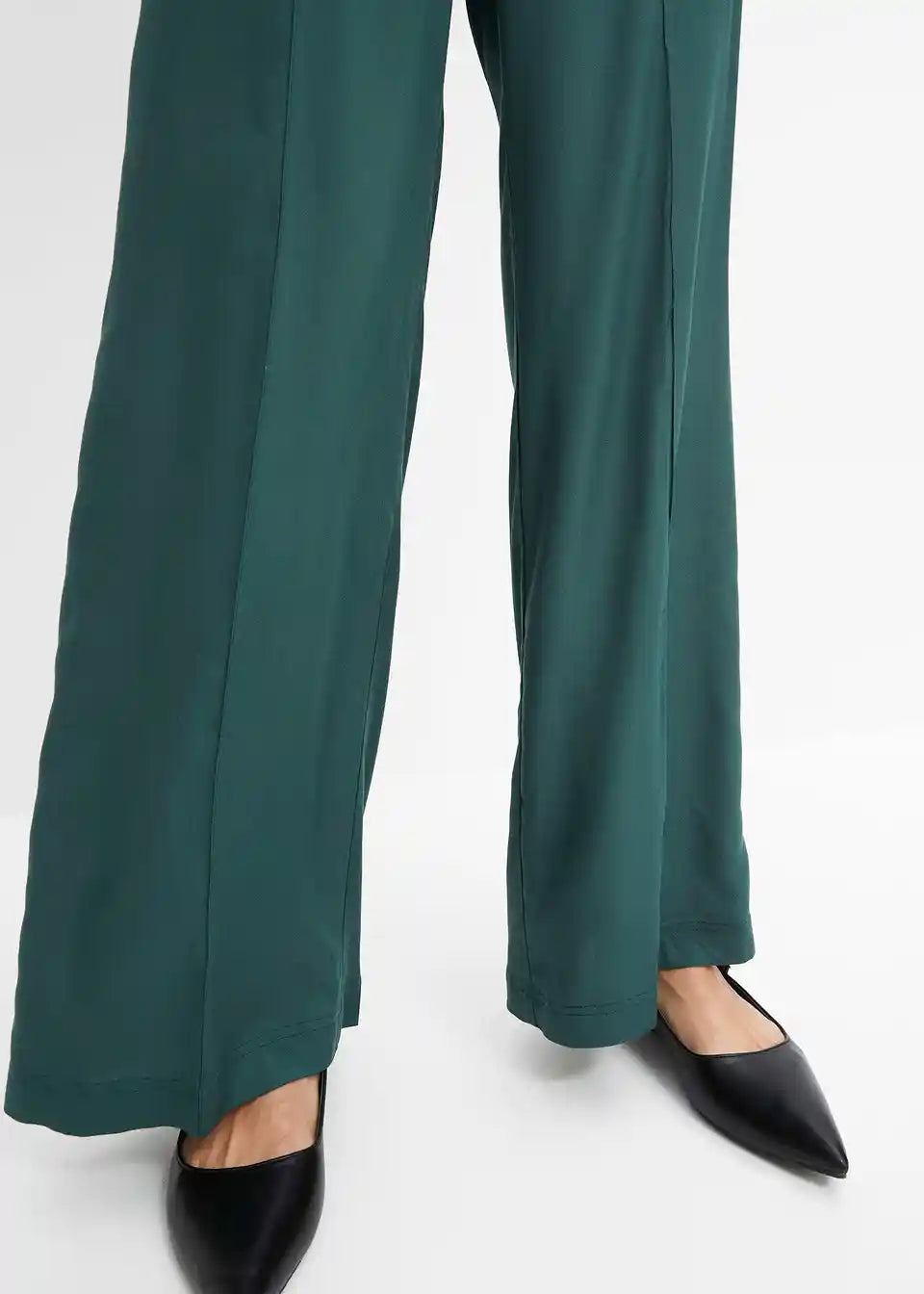 Modne oversized hlače iz elastične viskoze z elegantnim pregibom v pasu na sprednji strani