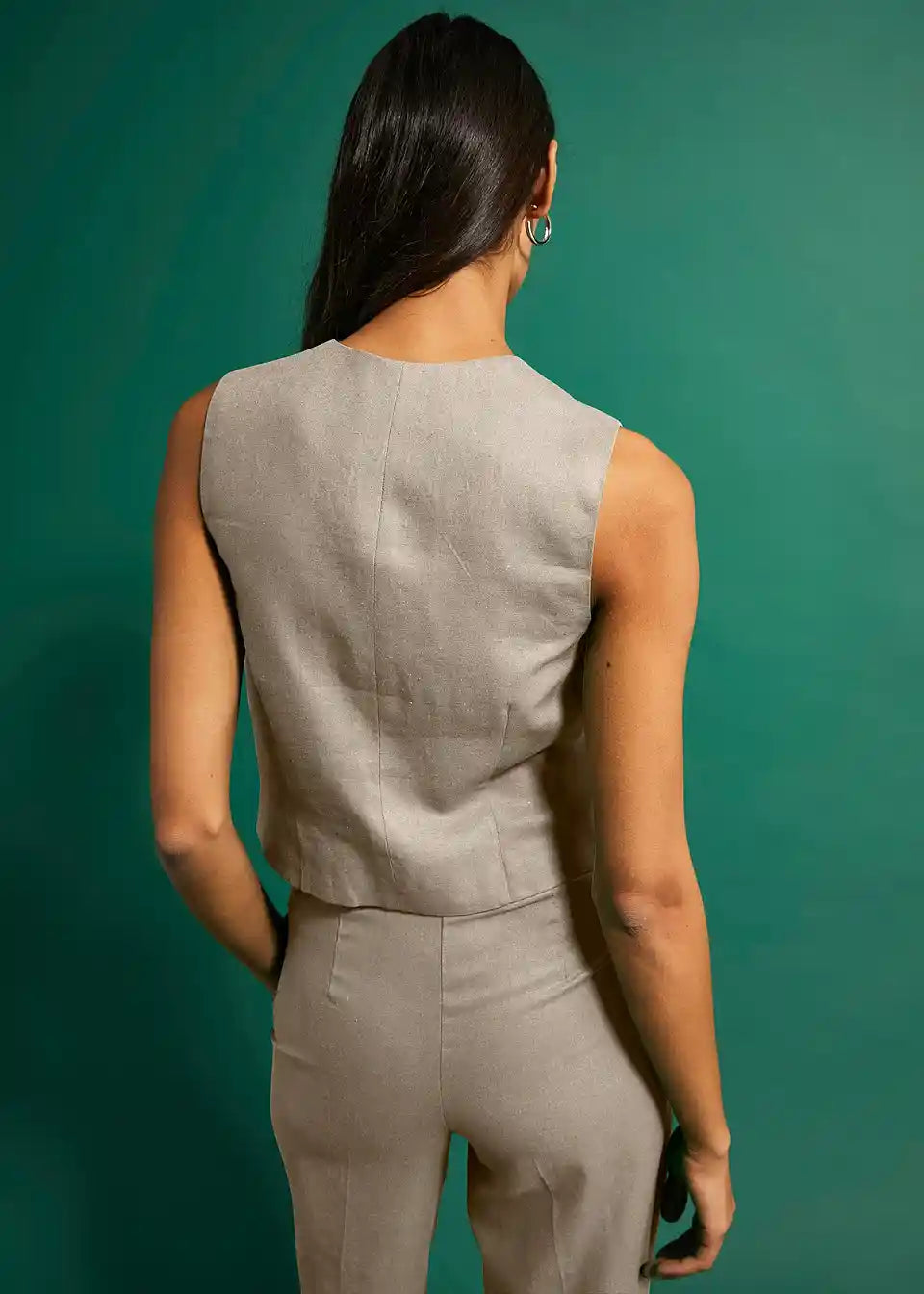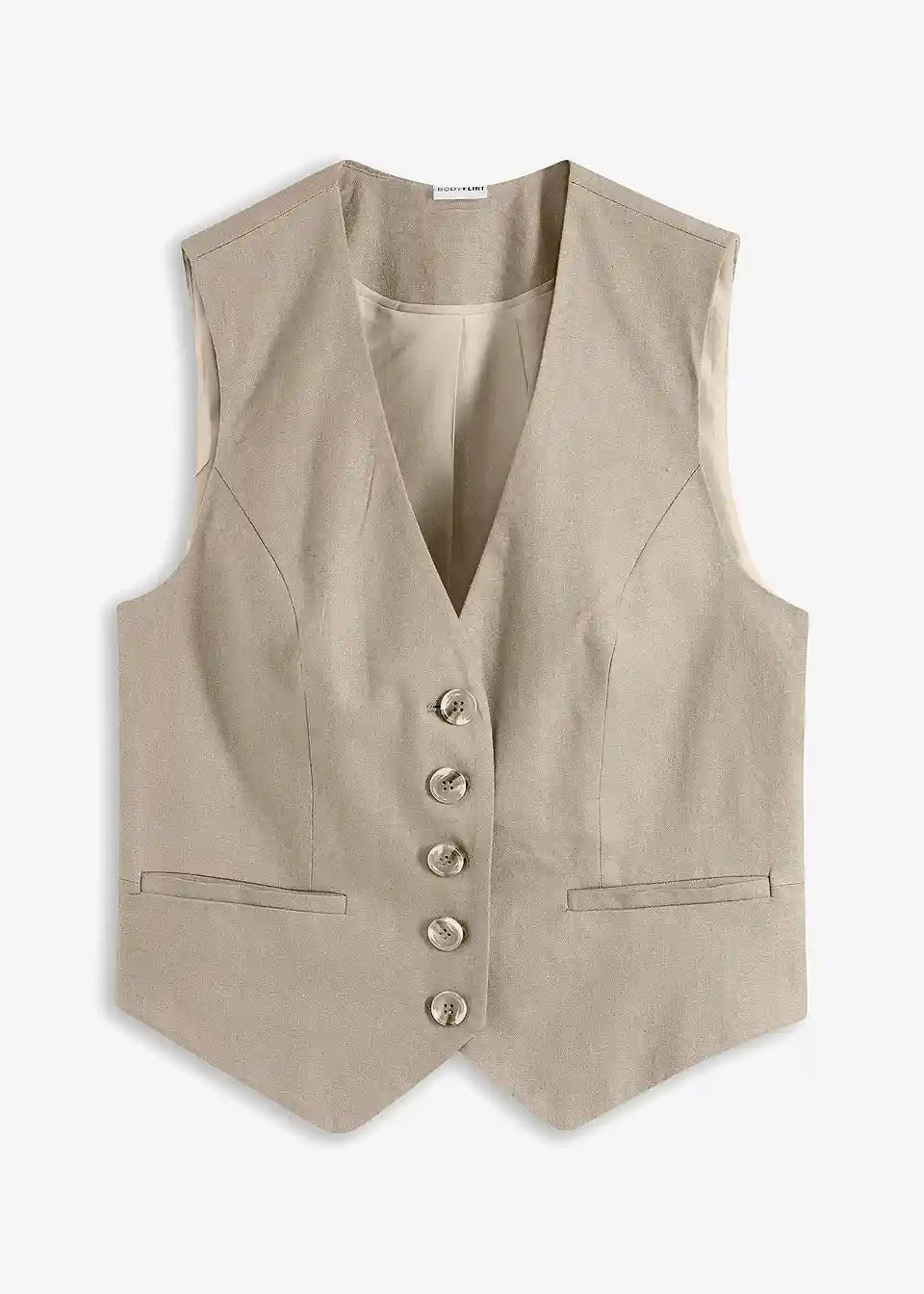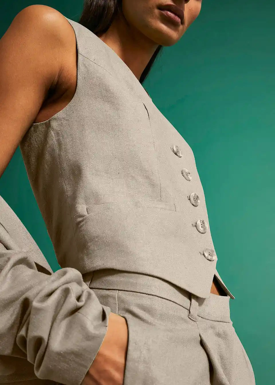 Pameten kratek telovnik s paspel žepom in dekorativnimi gumbi