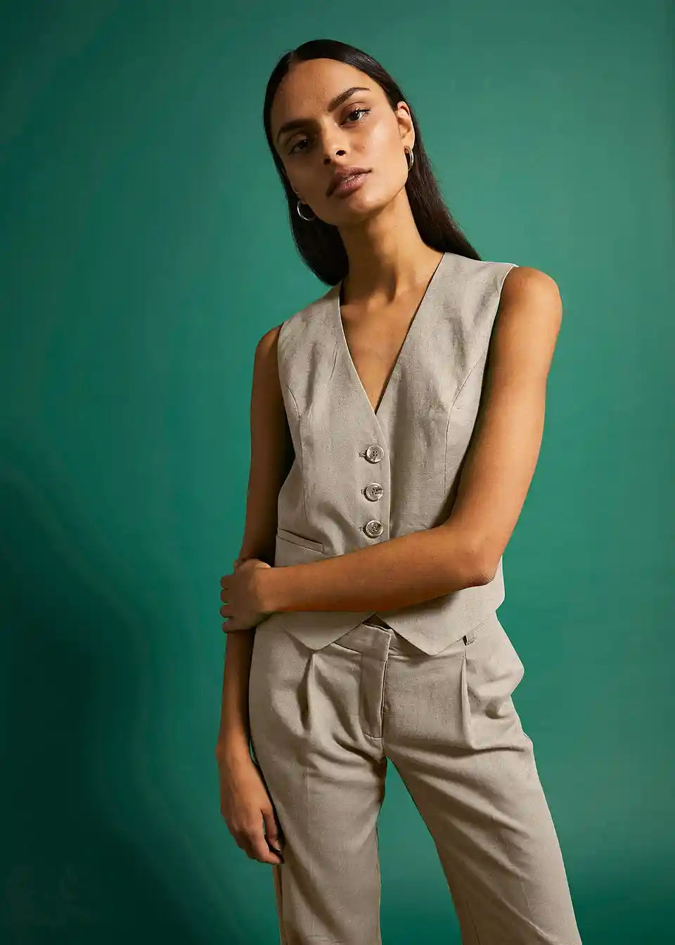 Material:zgornji material: 55% lan (certificiran), 45% viskoza, podloga: 100% poliester