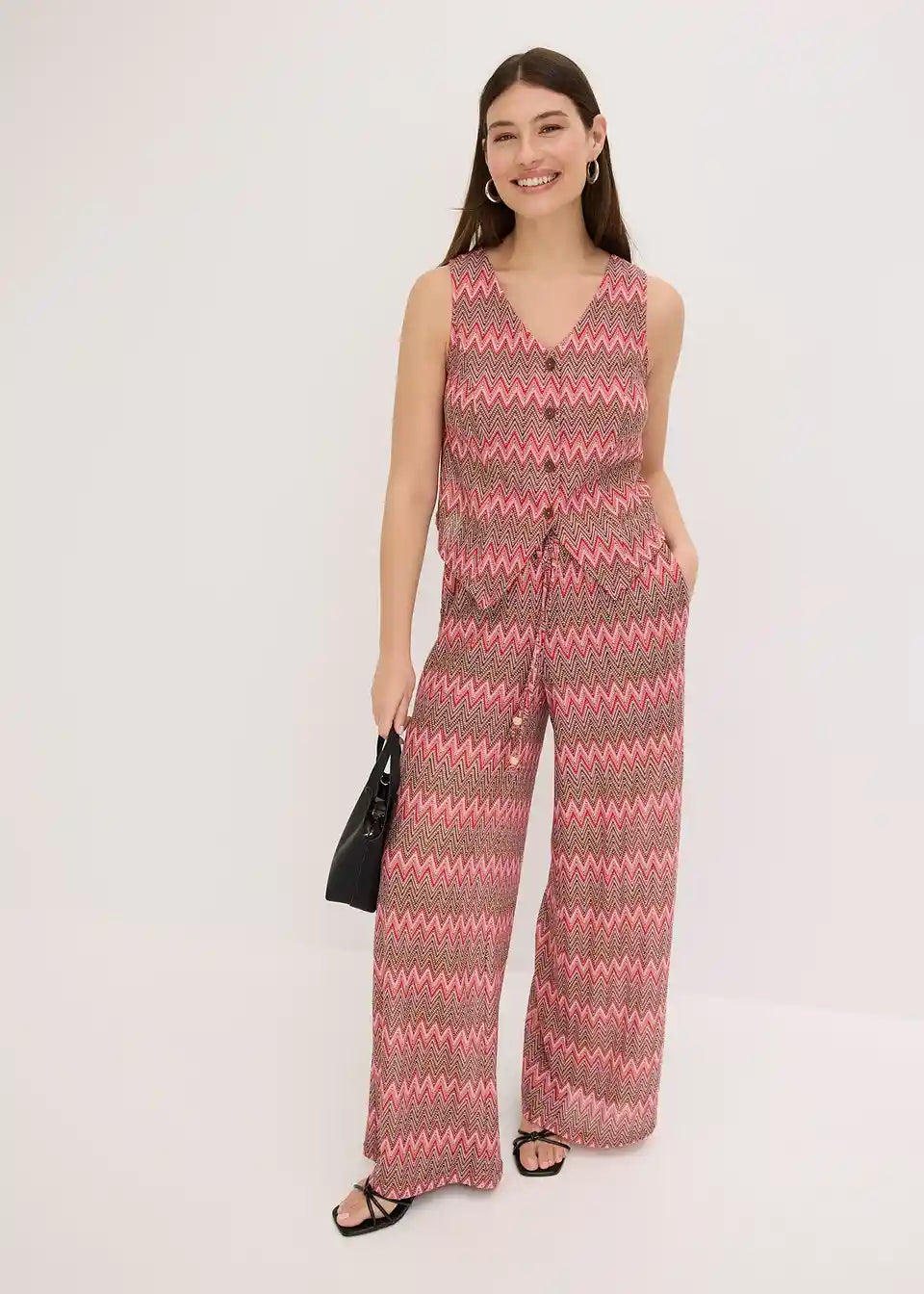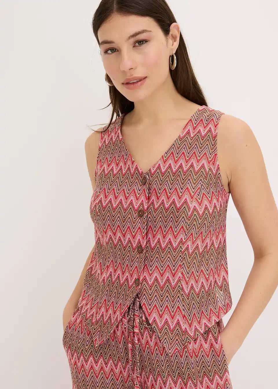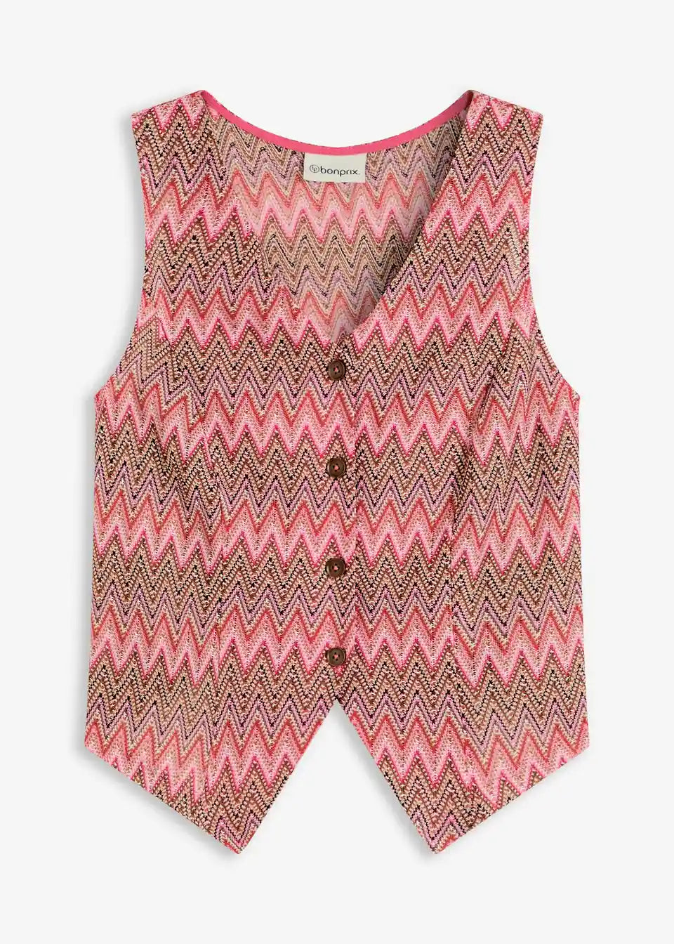 modni telovnik iz jerseya v videzu kvačkanja z gumbi spredaj
