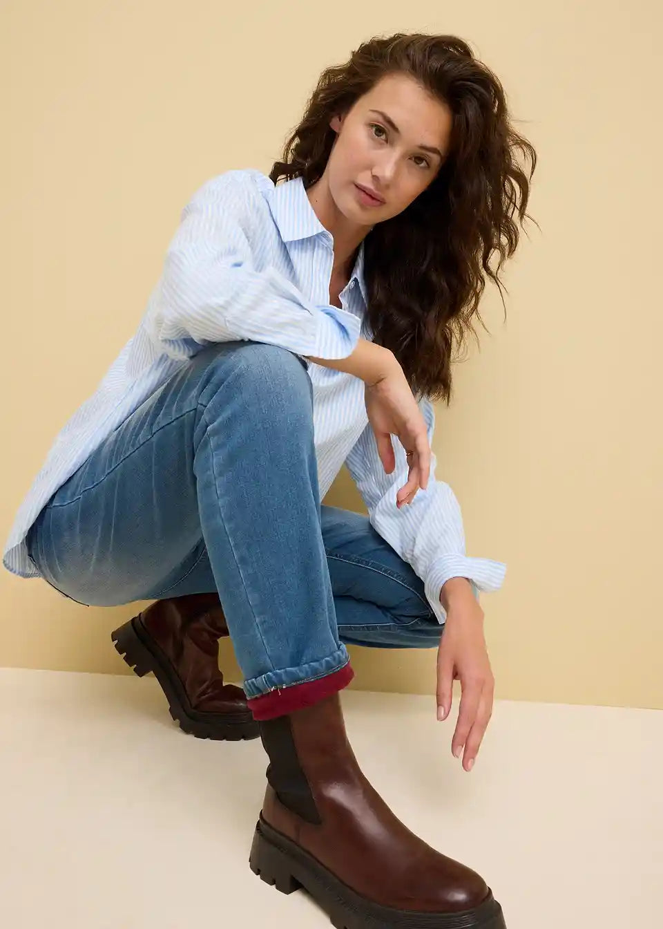 Zimske kavbojke v ravnem kroju s srednje visokim pasom