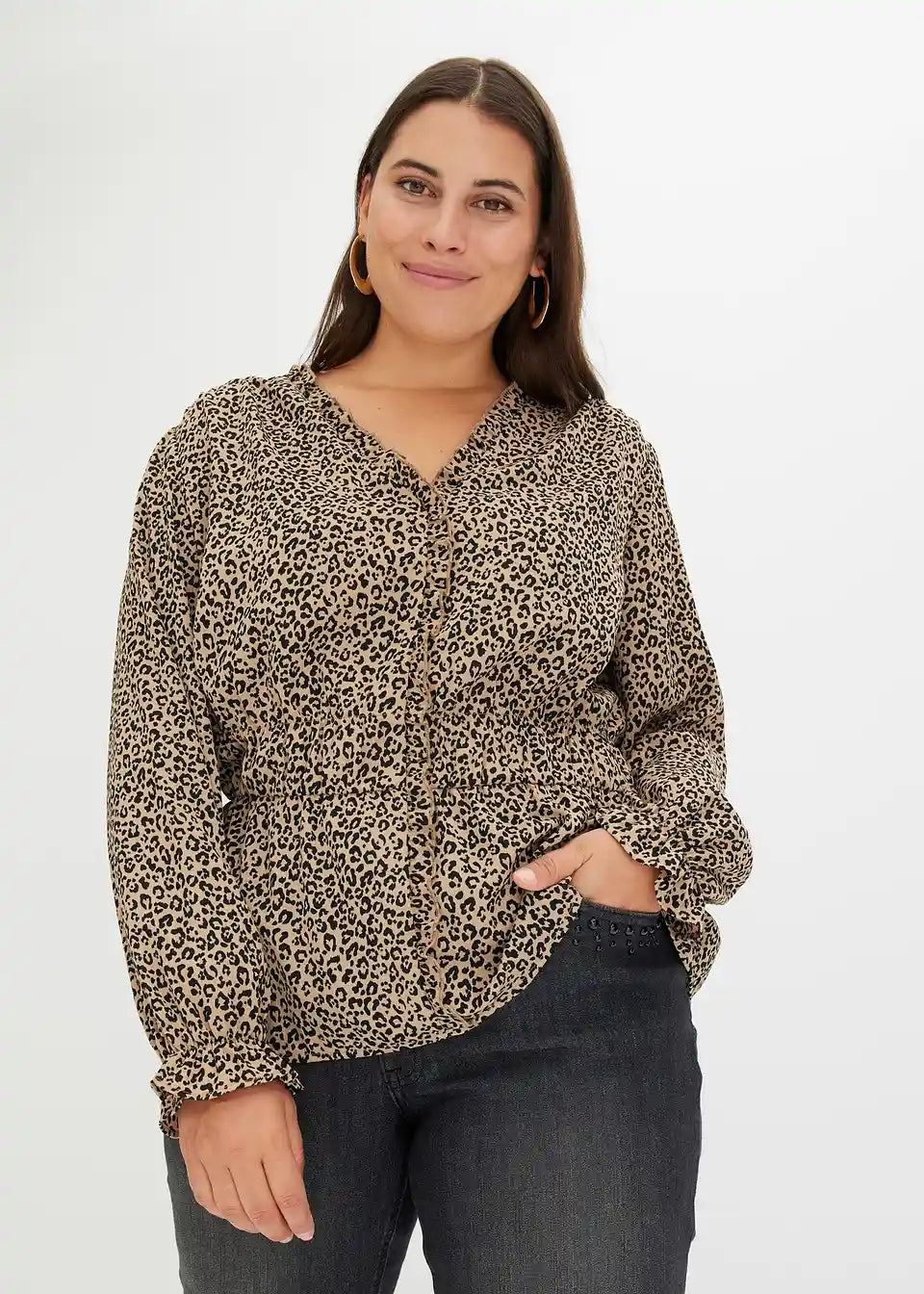 tiskana bluza z elastiko v pasu