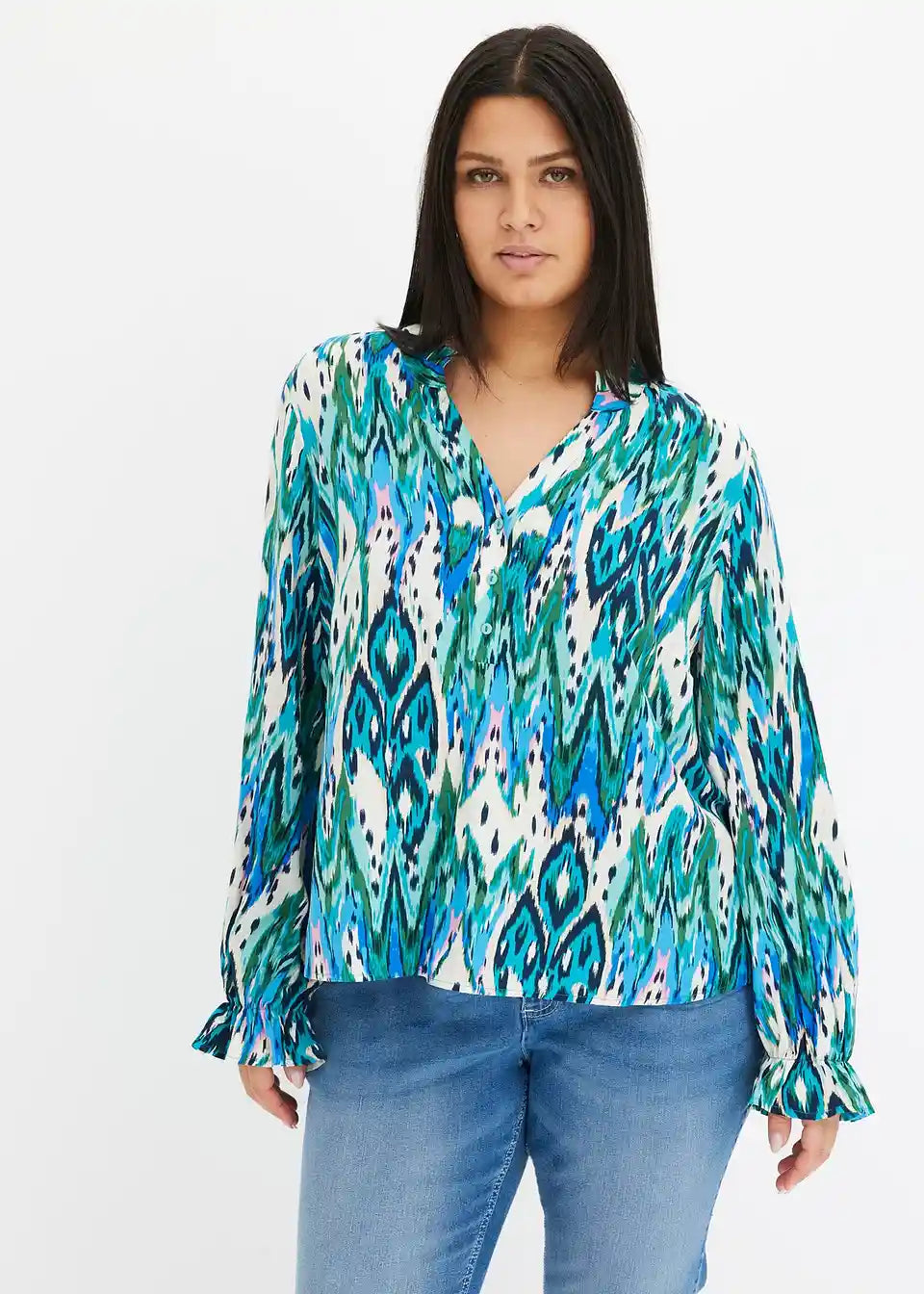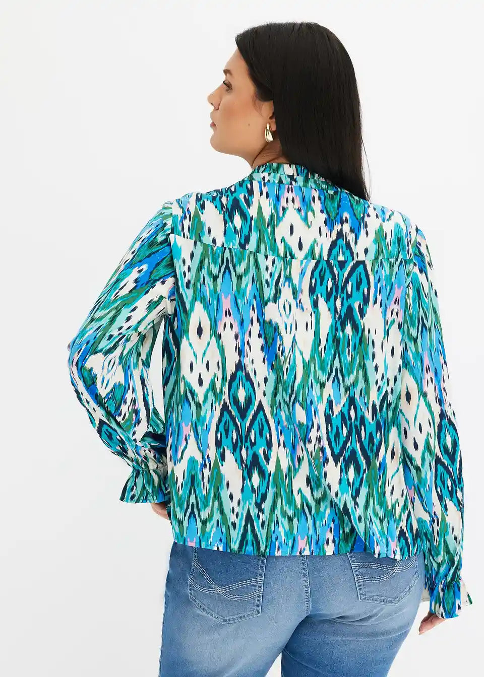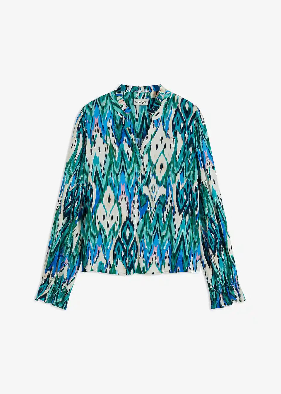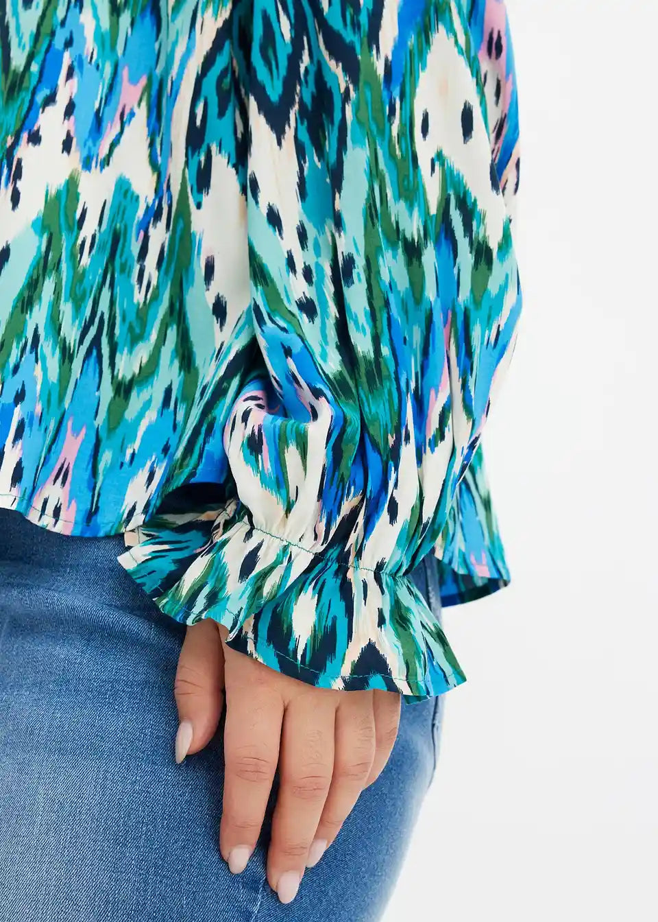tiskana bluza z majhnimi volančki na robovih rokavov
