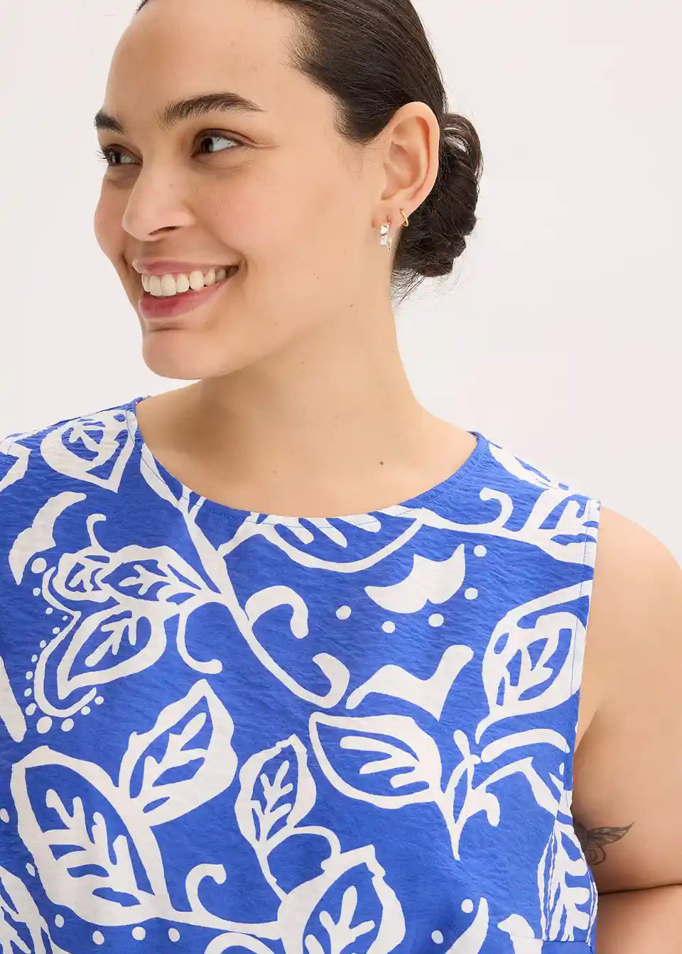 modna bluza brez rokavov s tiskom in zapenjanjem z gumbom na hrbtni strani izreza
