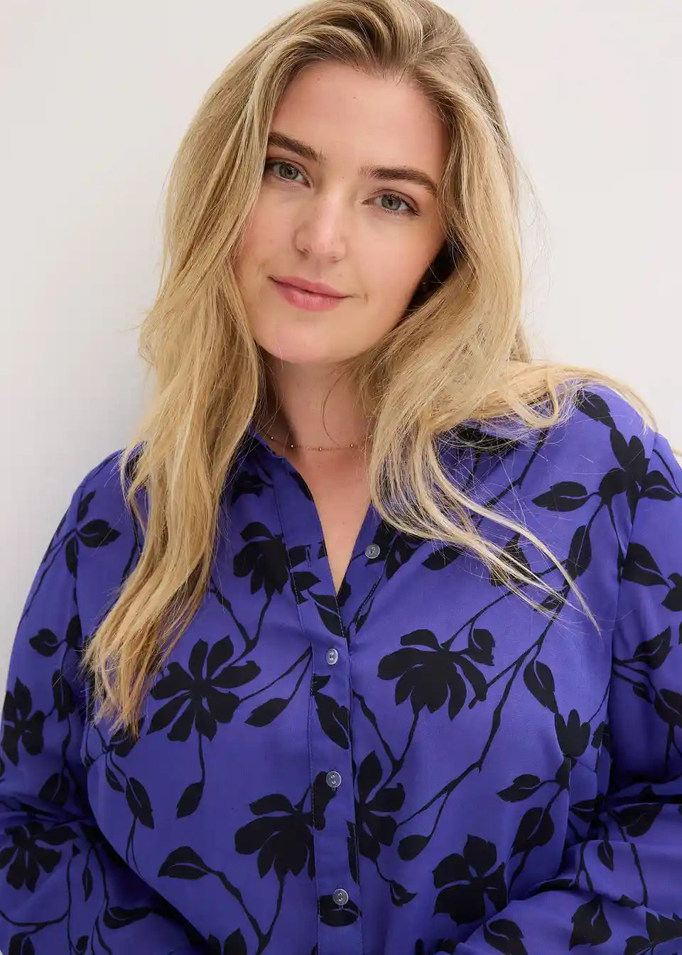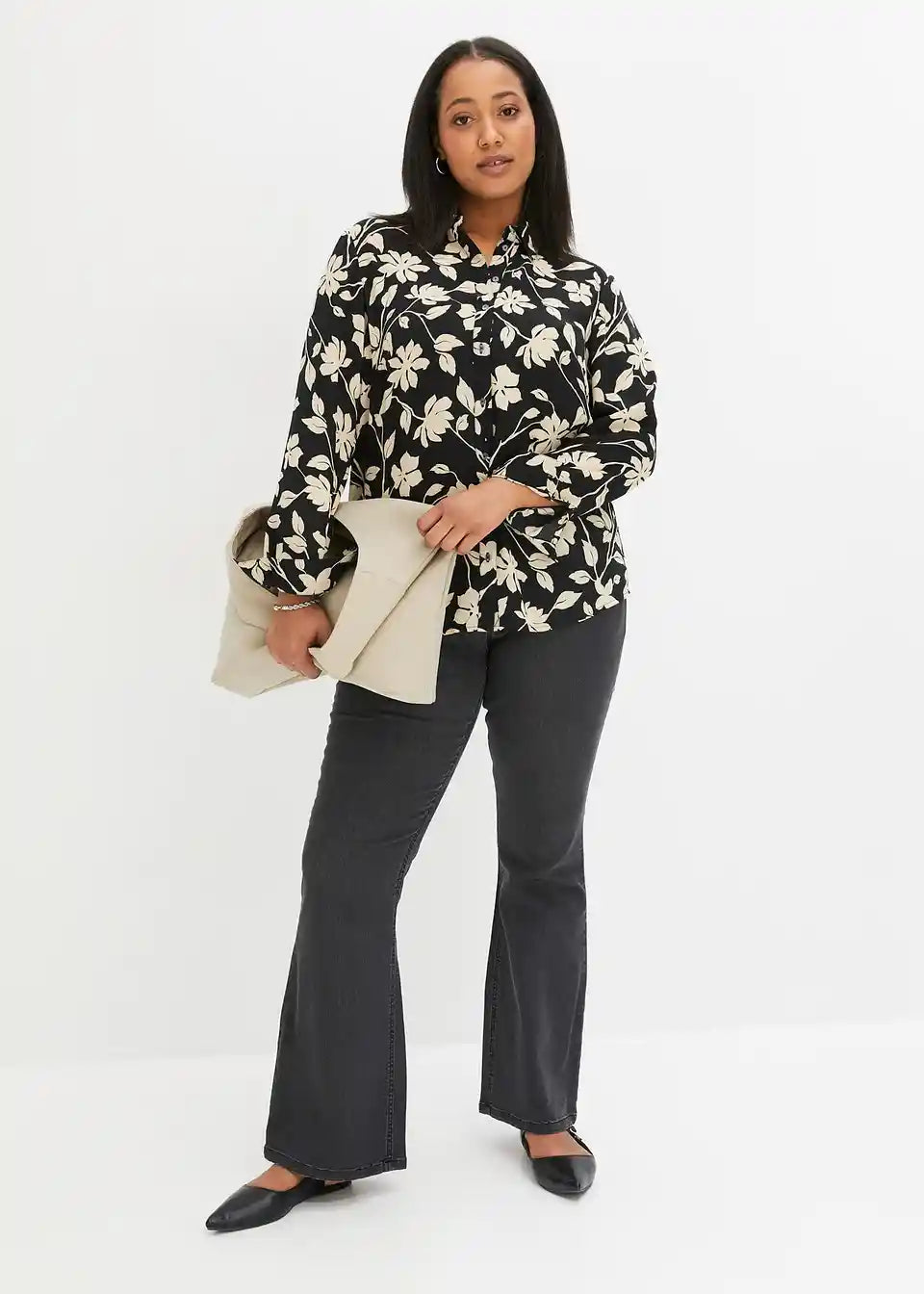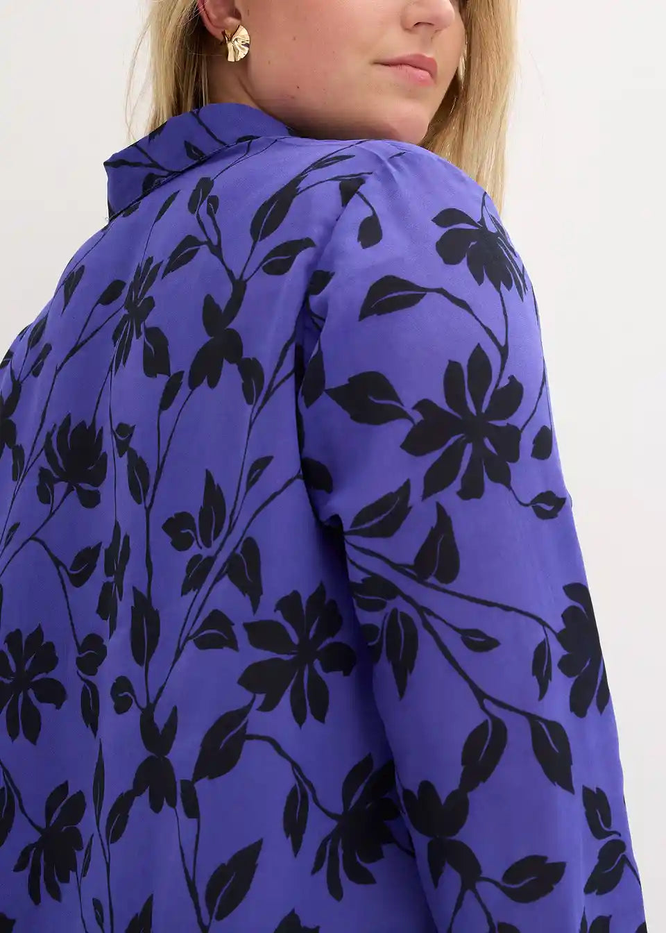 Moderna bluza z barvno poudarjeno obrobo na gumbih in ovratnikom