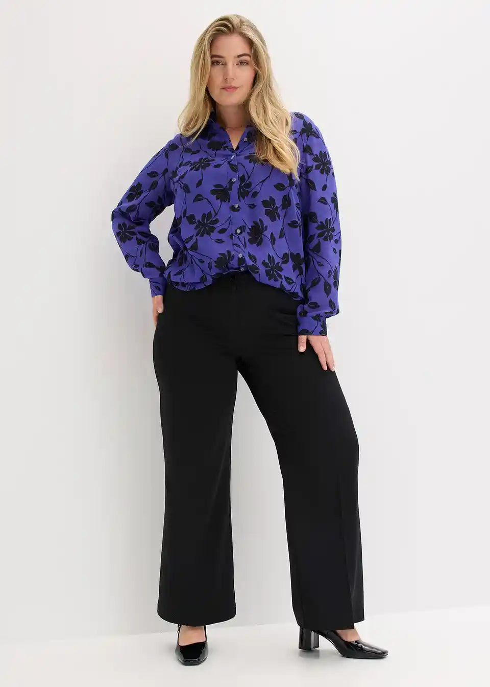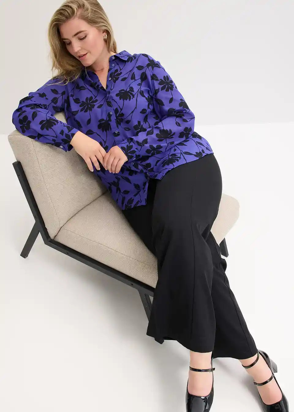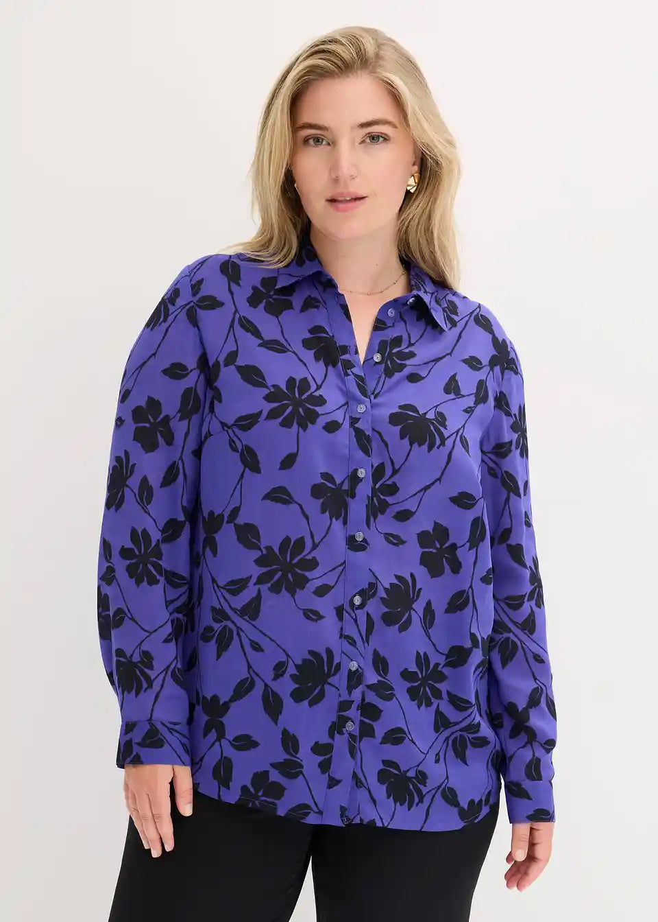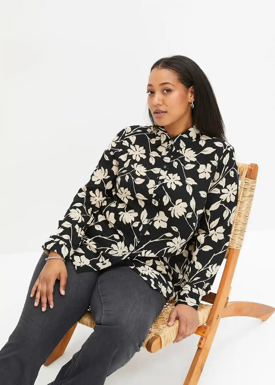 Moderna bluza z barvno poudarjeno obrobo na gumbih in ovratnikom