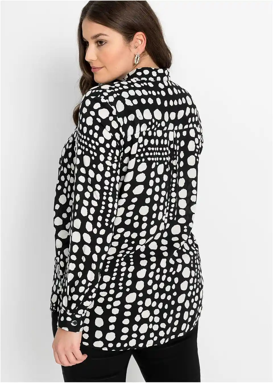 Moderna dolga bluza z zapenjanjem na gumbe in čudovitim potiskom