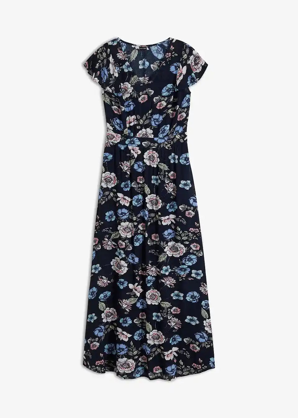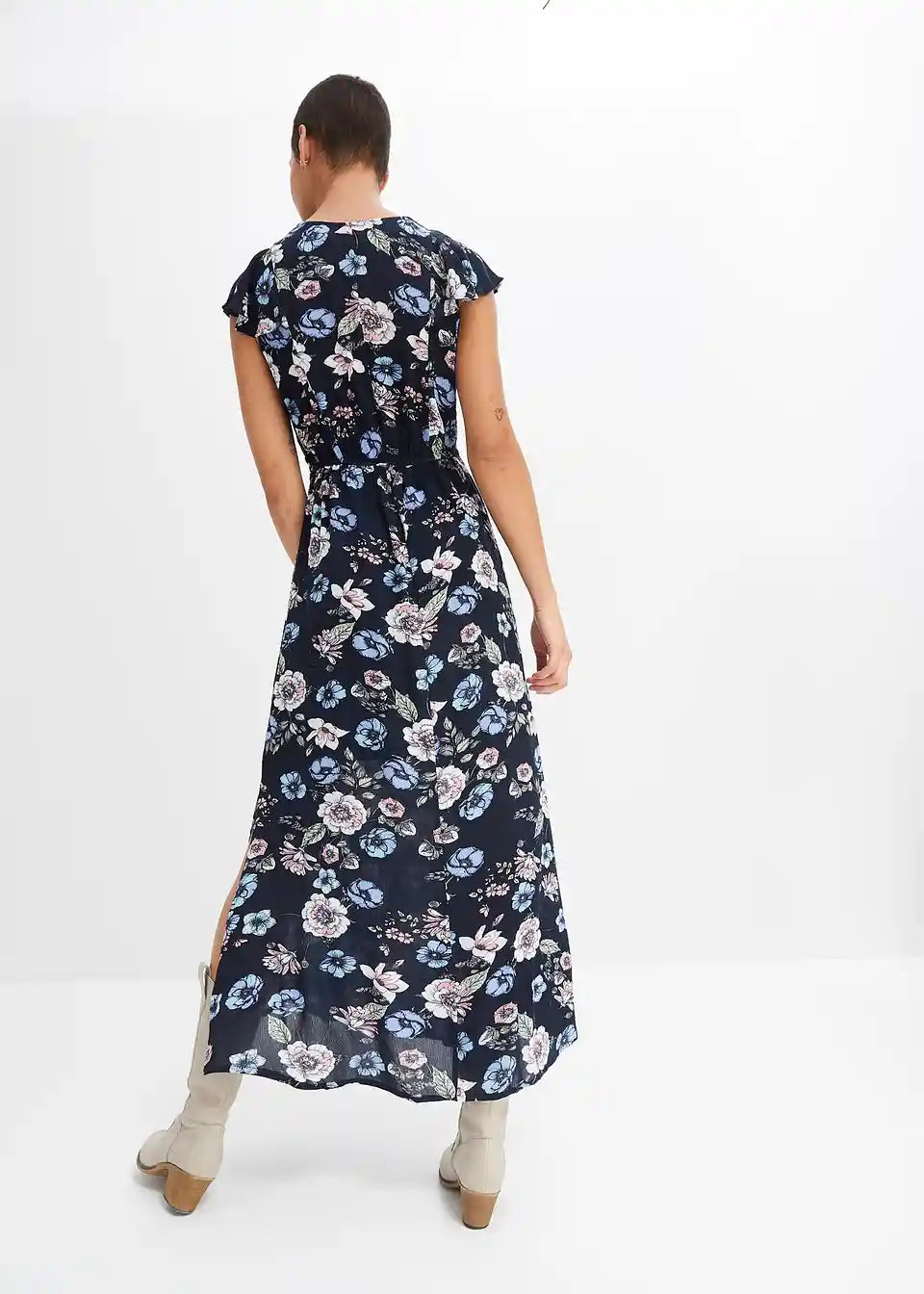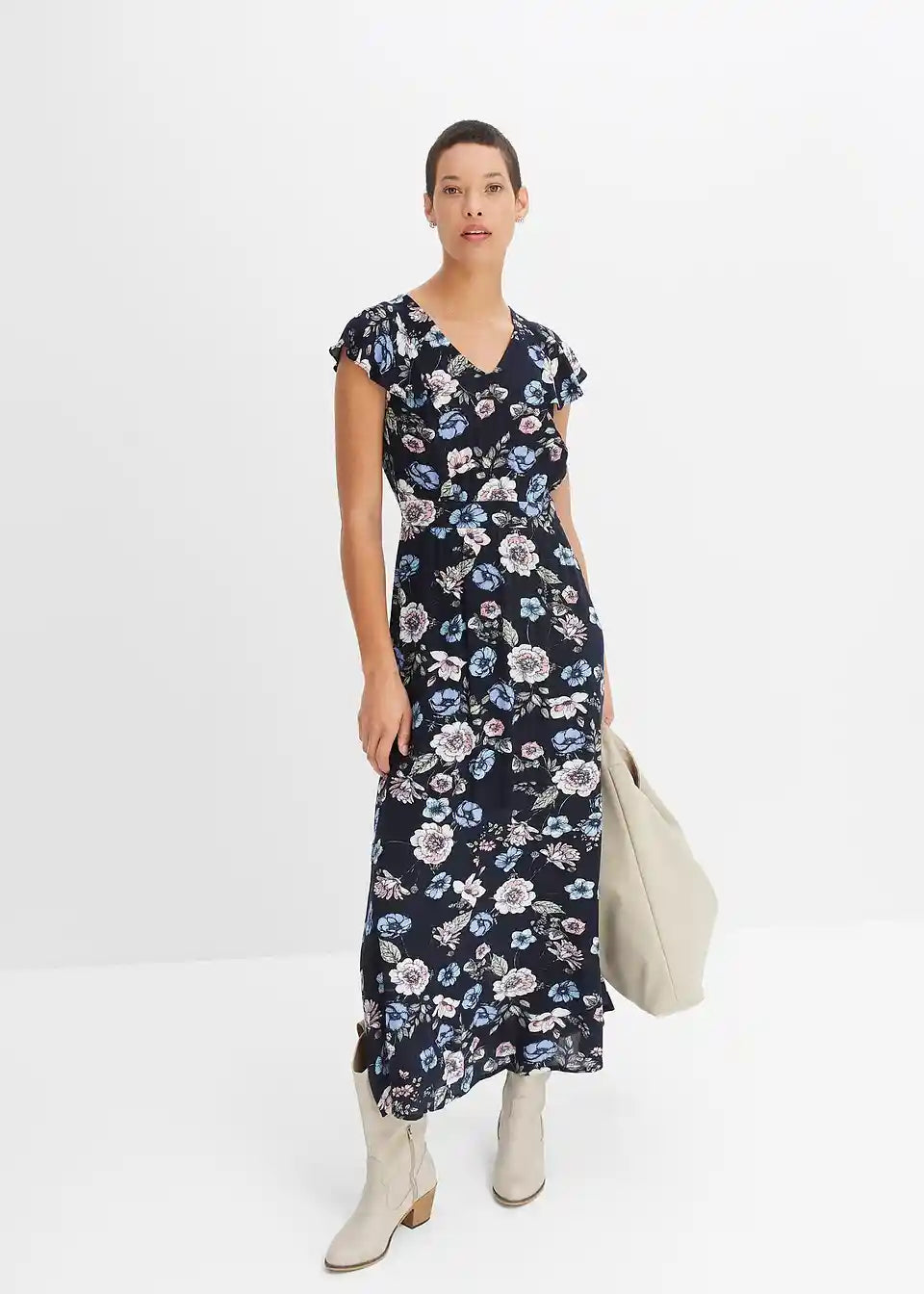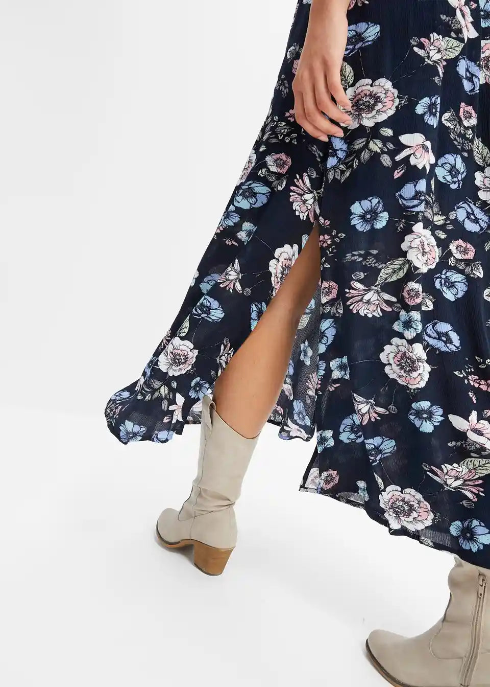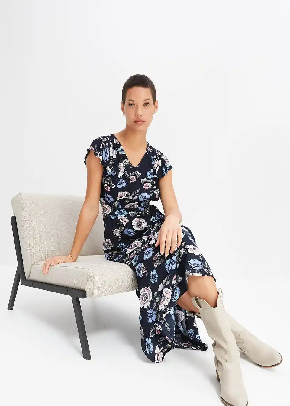 Poudarjena obleka z V-izrezom, material z nagubanim učinkom