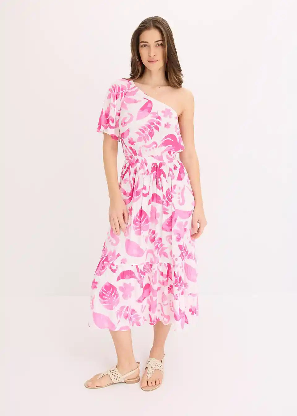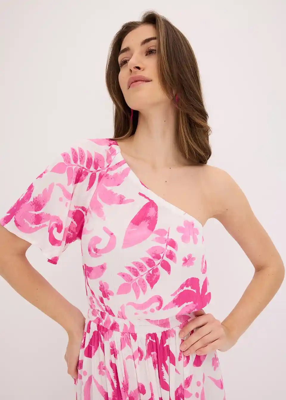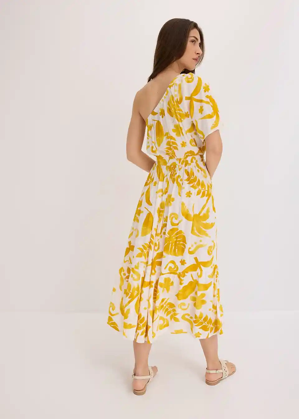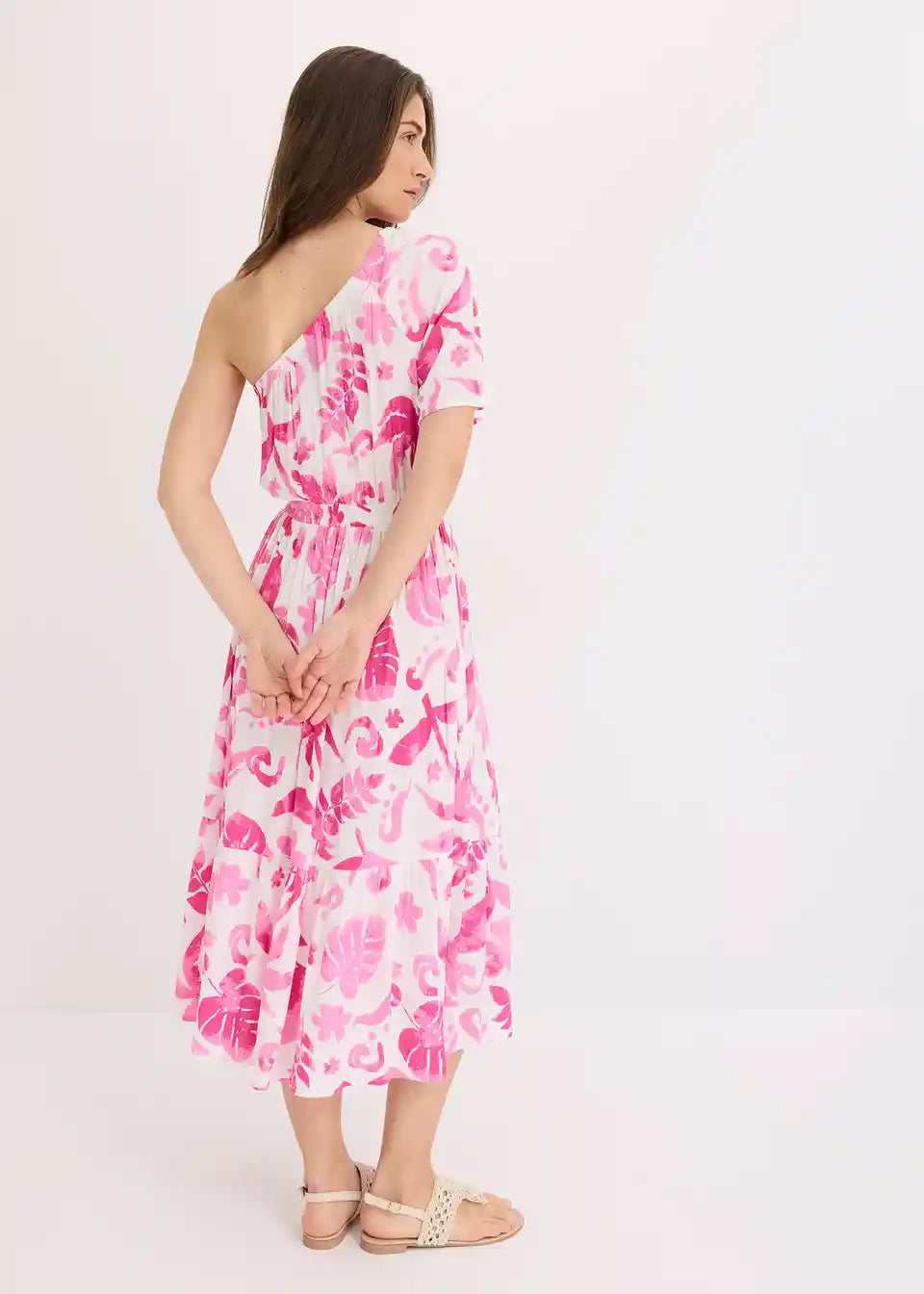 Potiskana obleka z odkrito ramo iz strukturirane viskoze