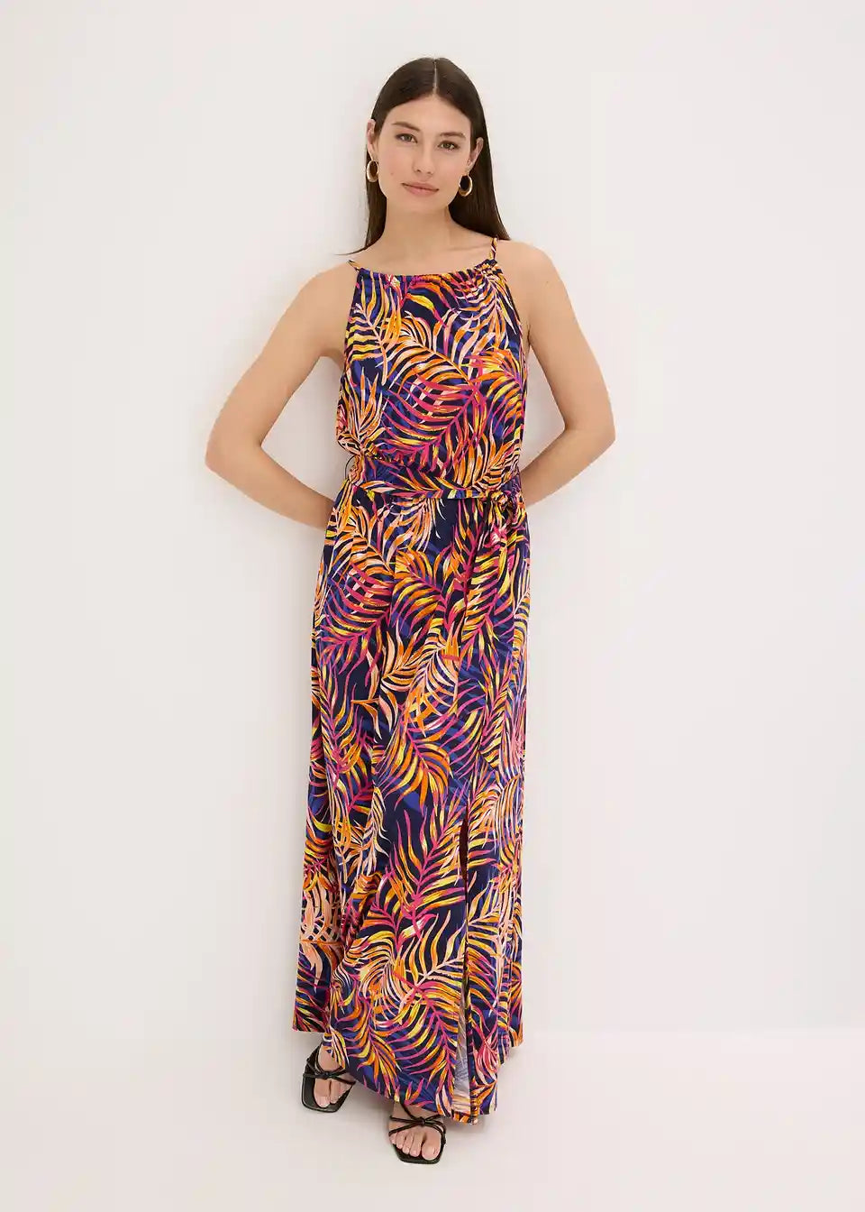 cvetlično tiskana jersey obleka v maksi dolžini z zavezovanjem zadaj na izrezu