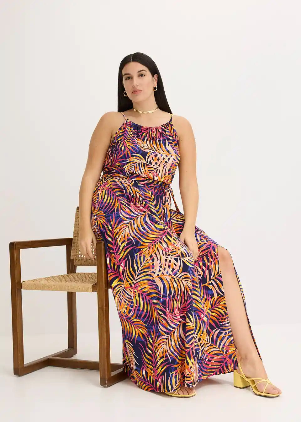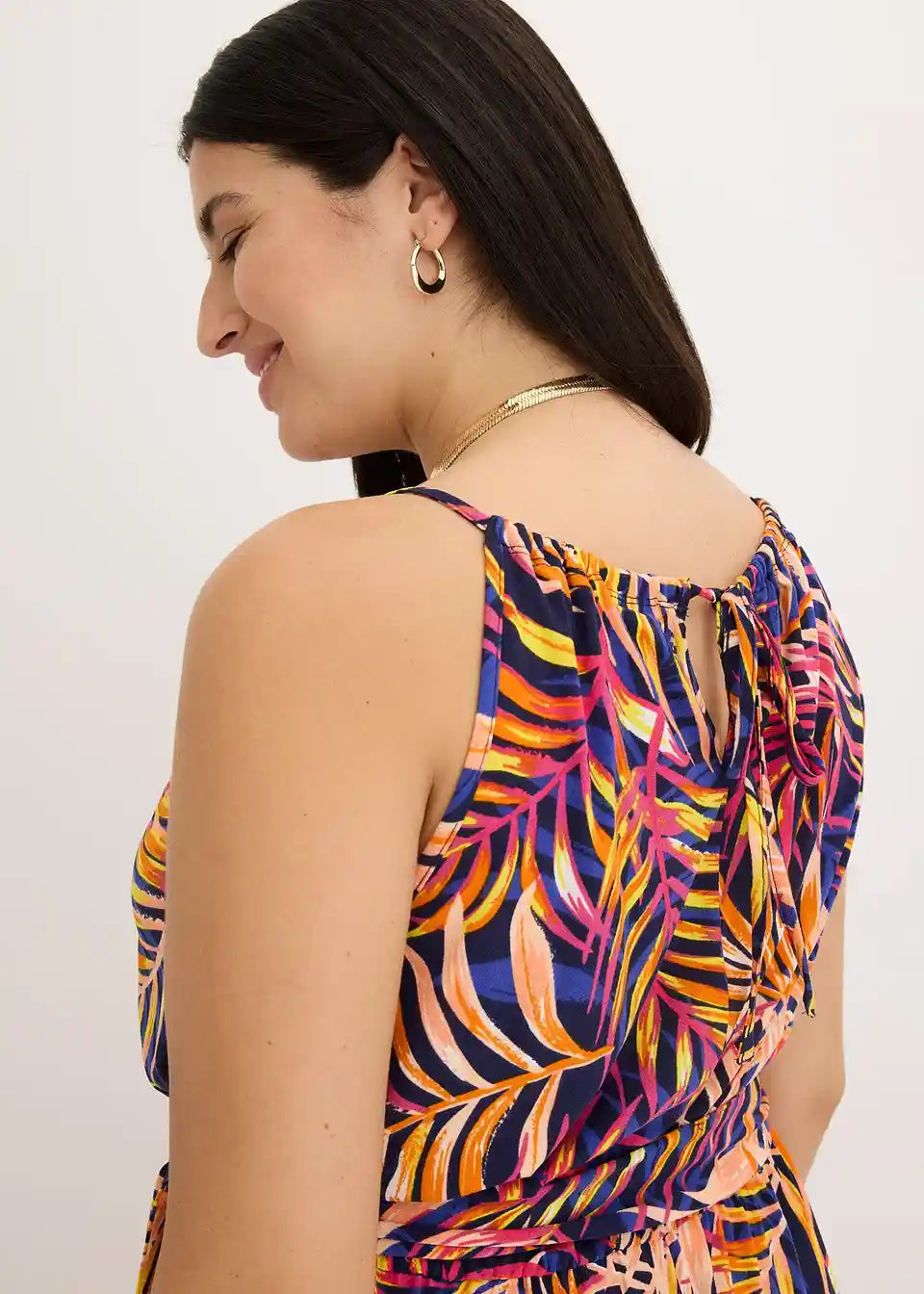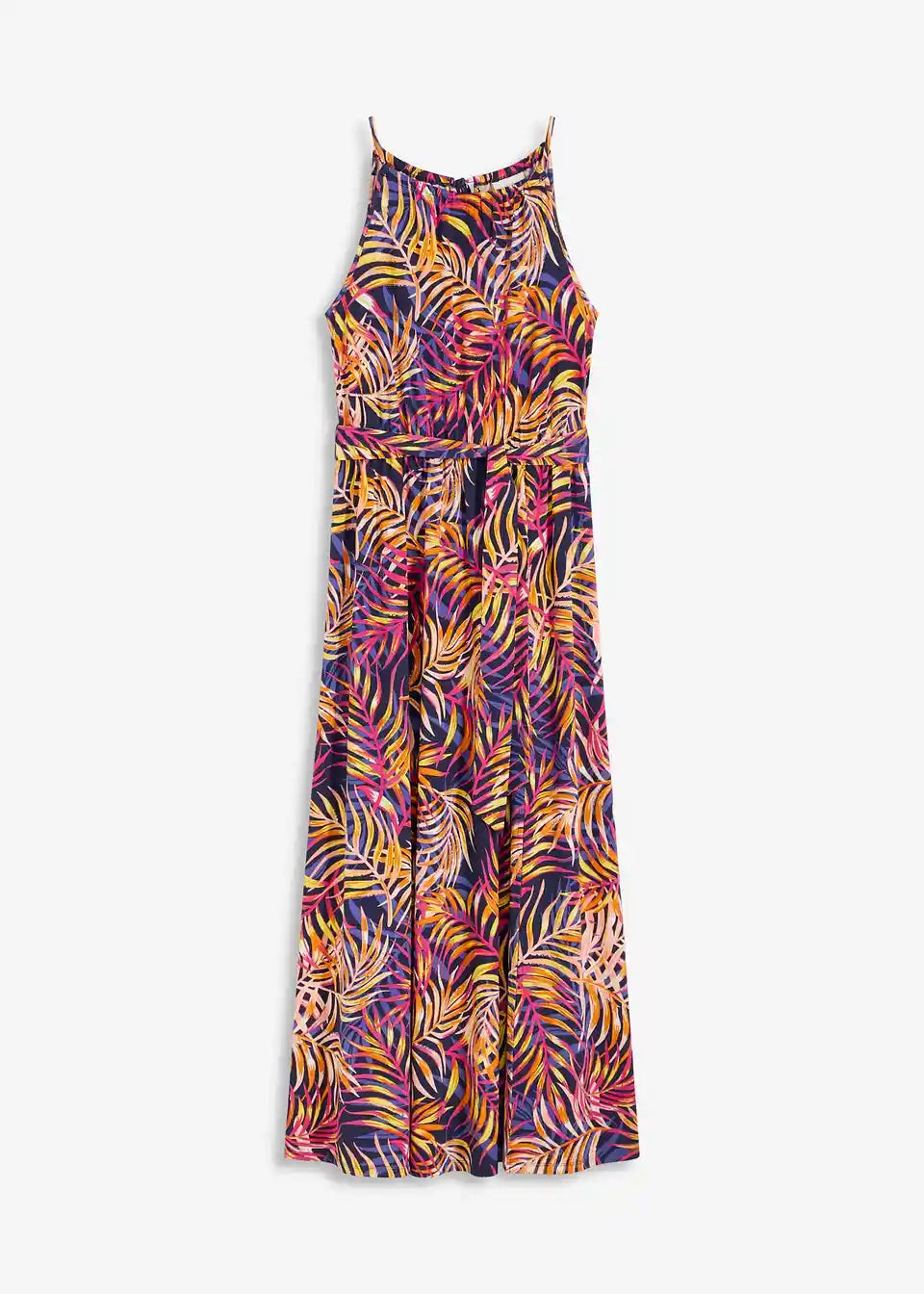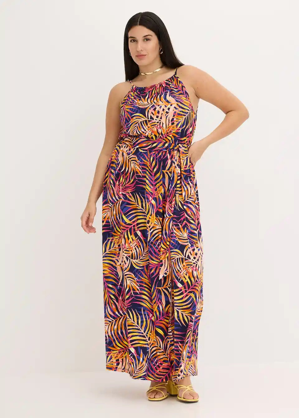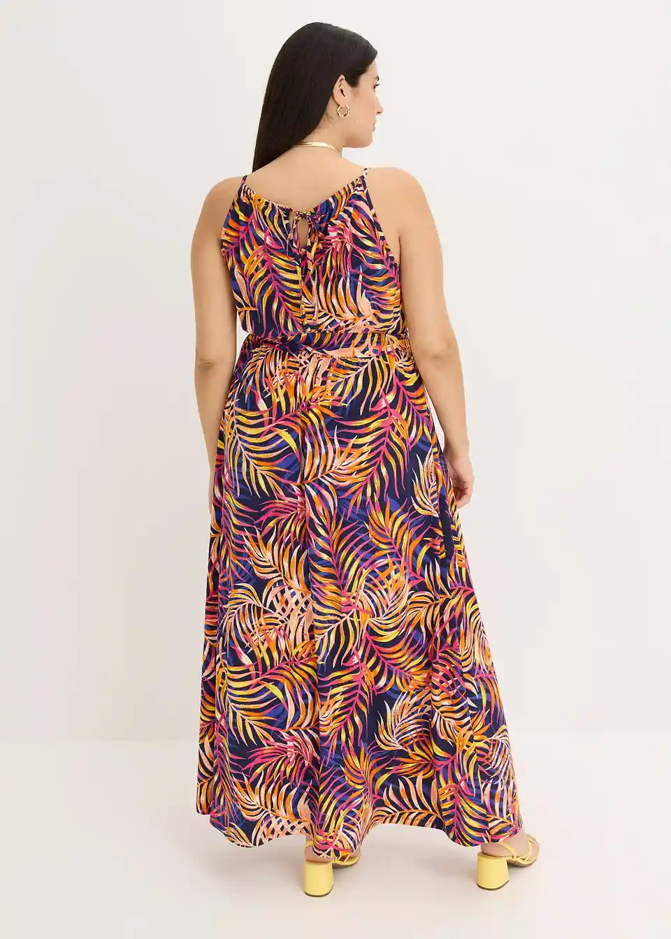 cvetlična tiskana jersey obleka maksi dolžine z zavezovanjem zadaj na izrezu